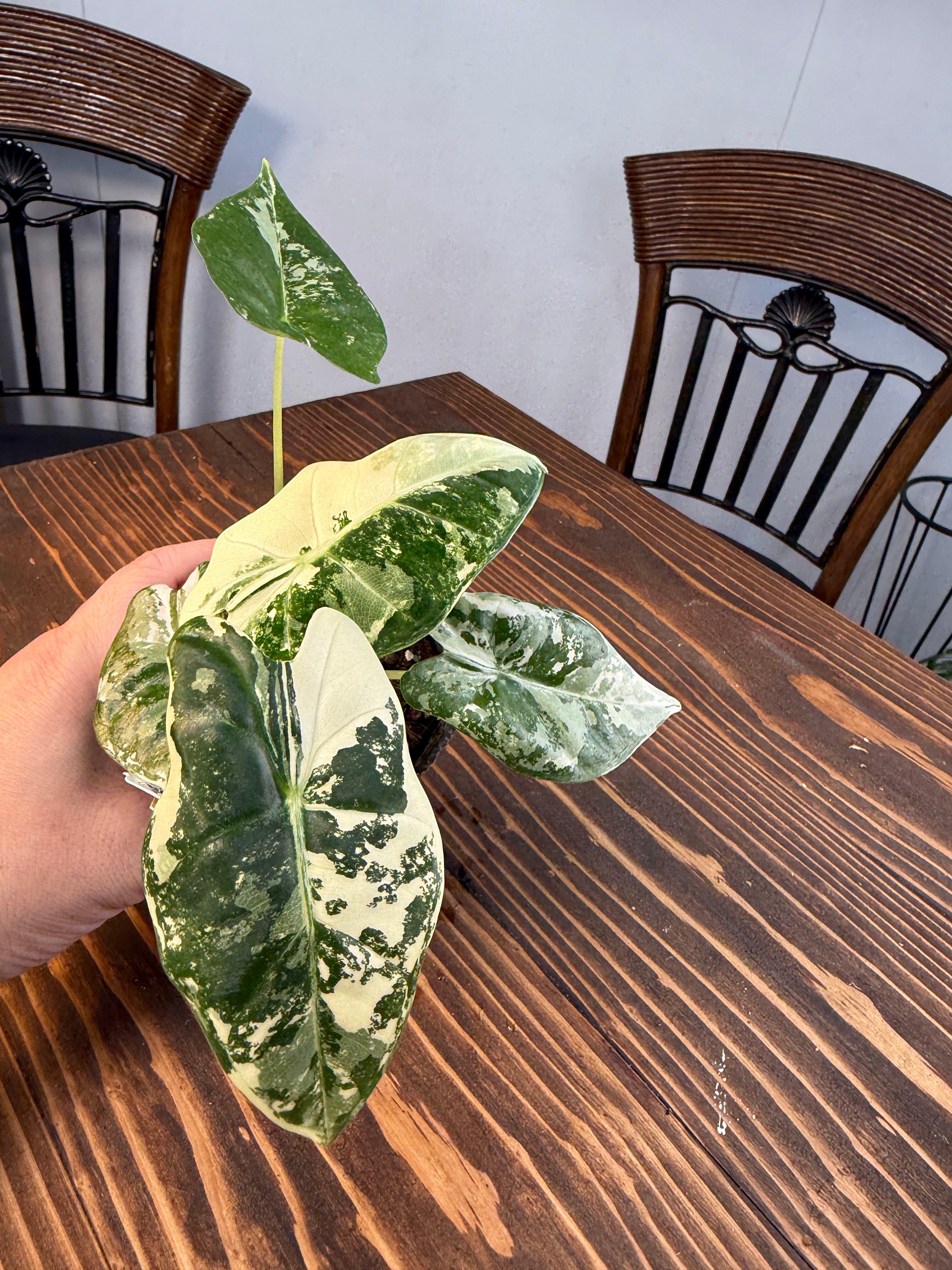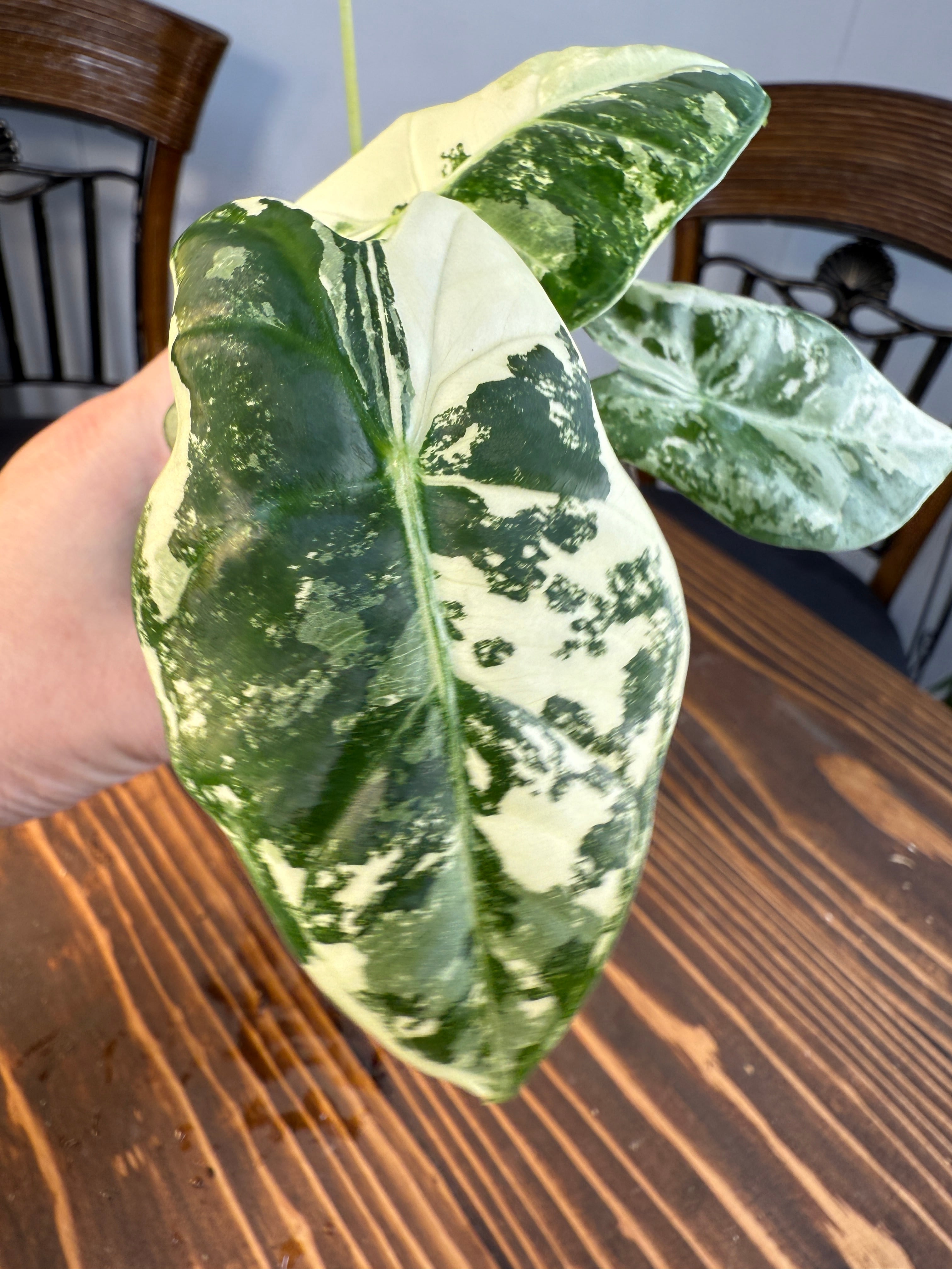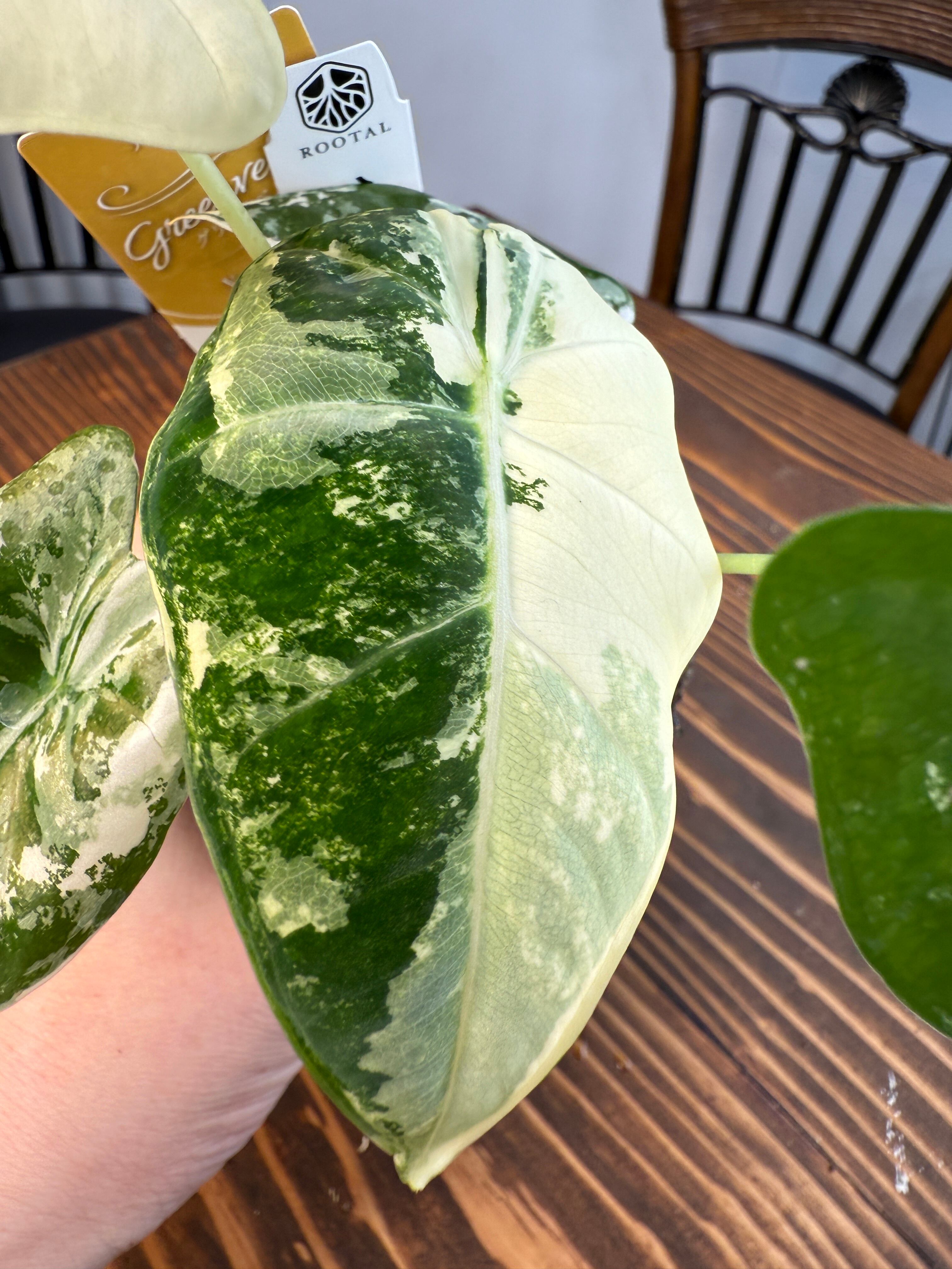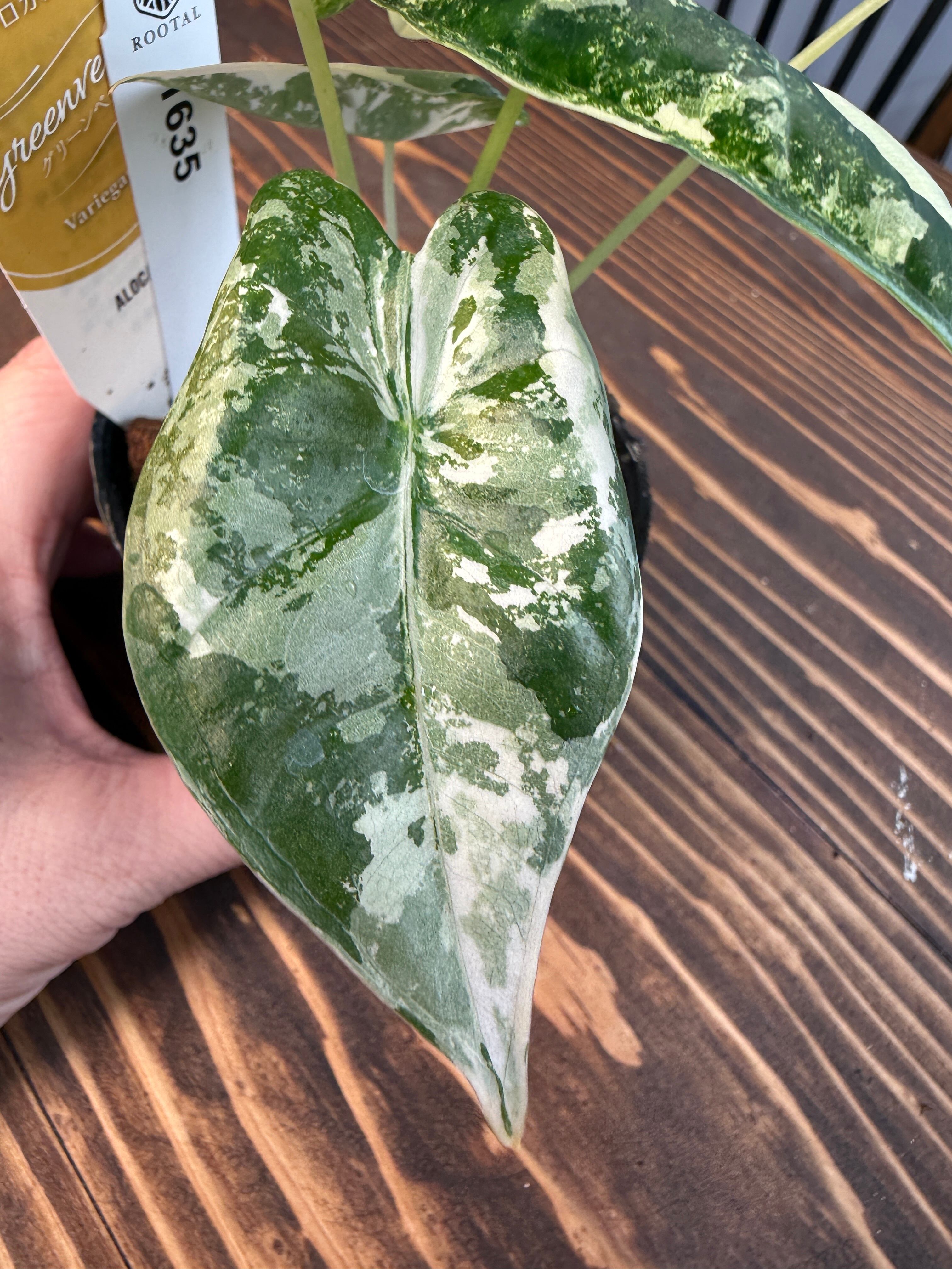 華やかで魅力的なアロカシア グリーンベルベット バリエガータ!!その美しいバリエーションが、インテリアを一層引き立て、心に安らぎをもたらします。日本国内で丁寧に育てられた特別な株は、自宅で簡単に葉の美しさを楽しむことができる素晴らしい選択です。