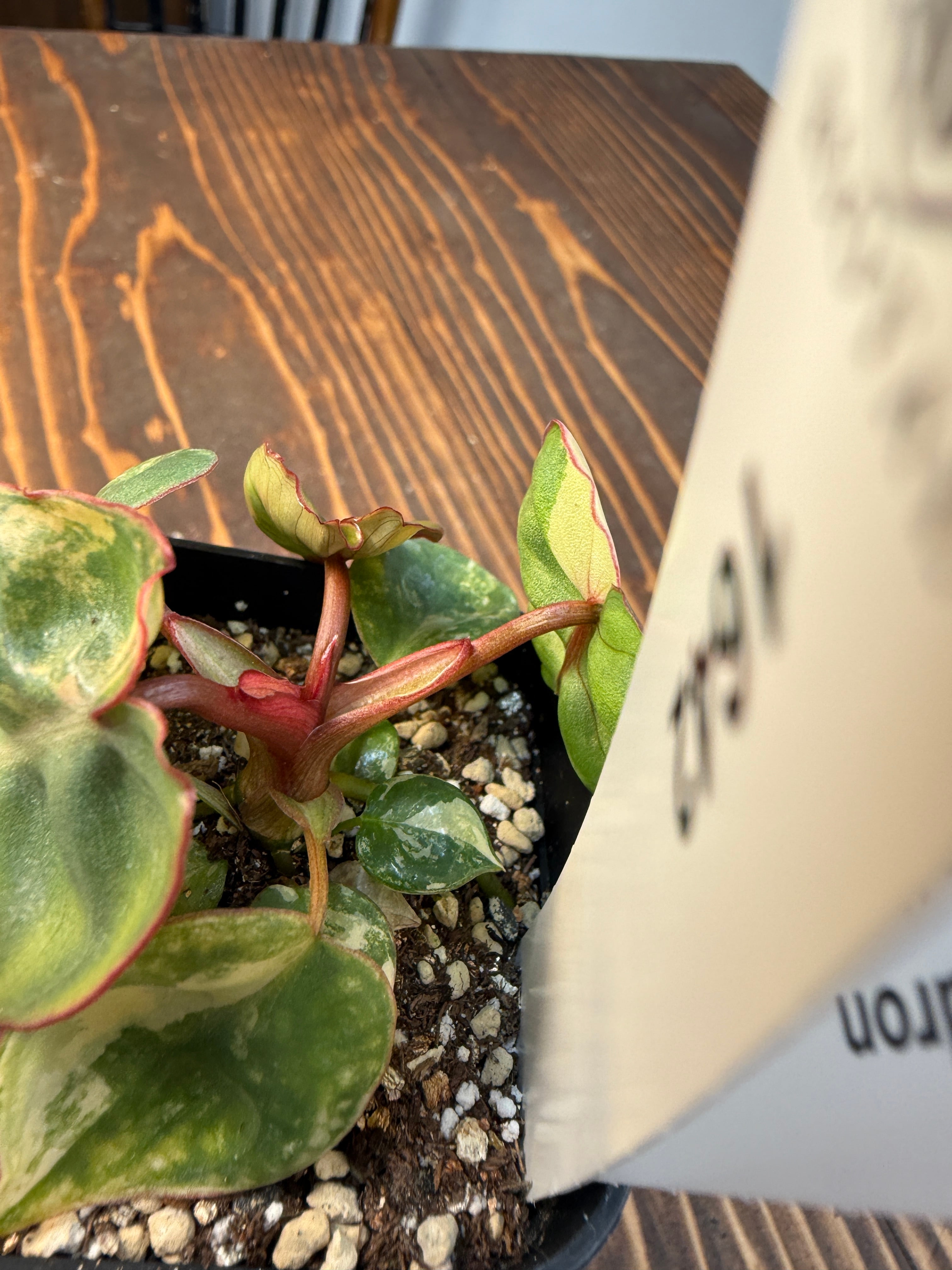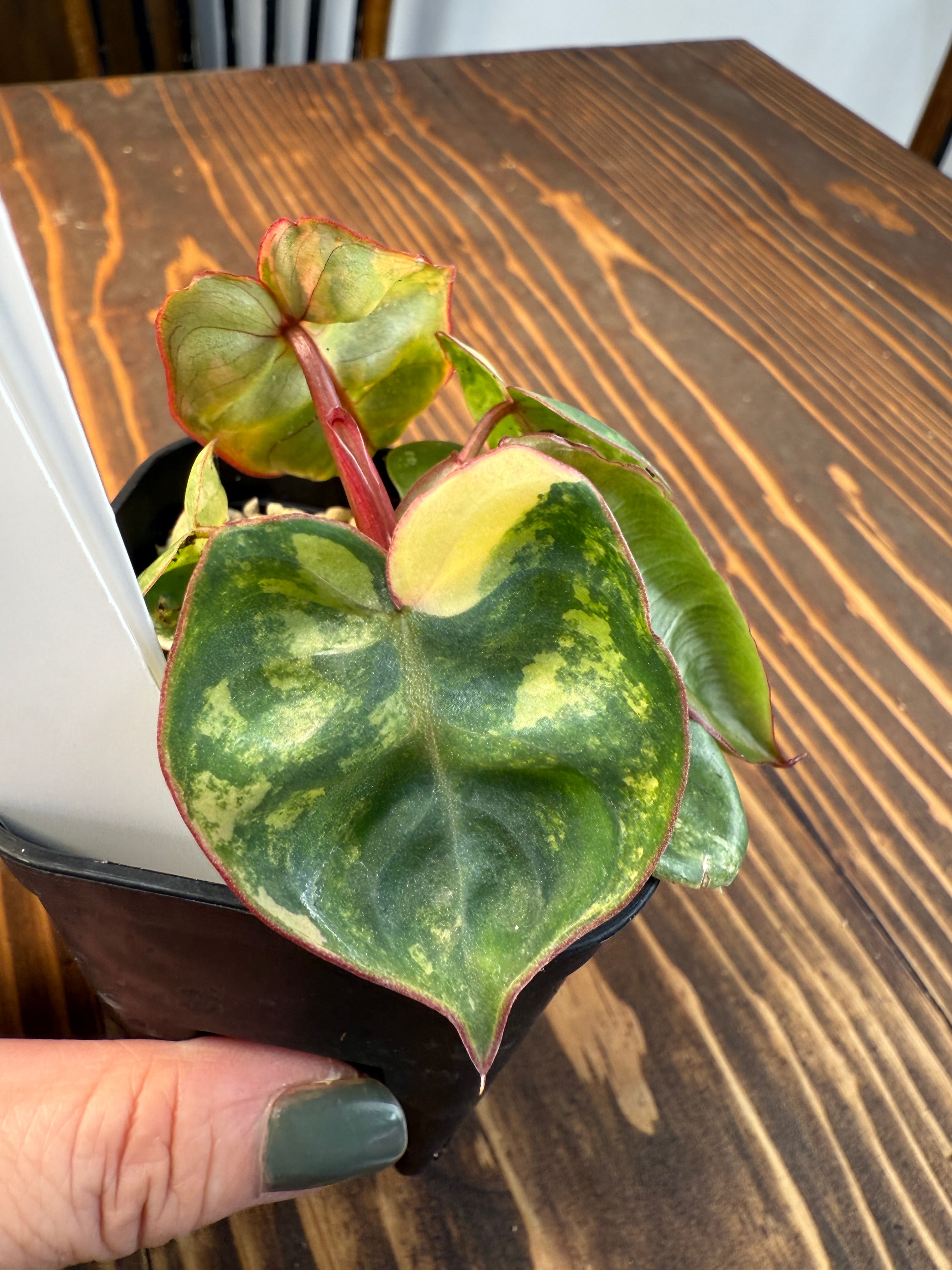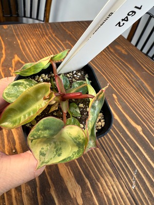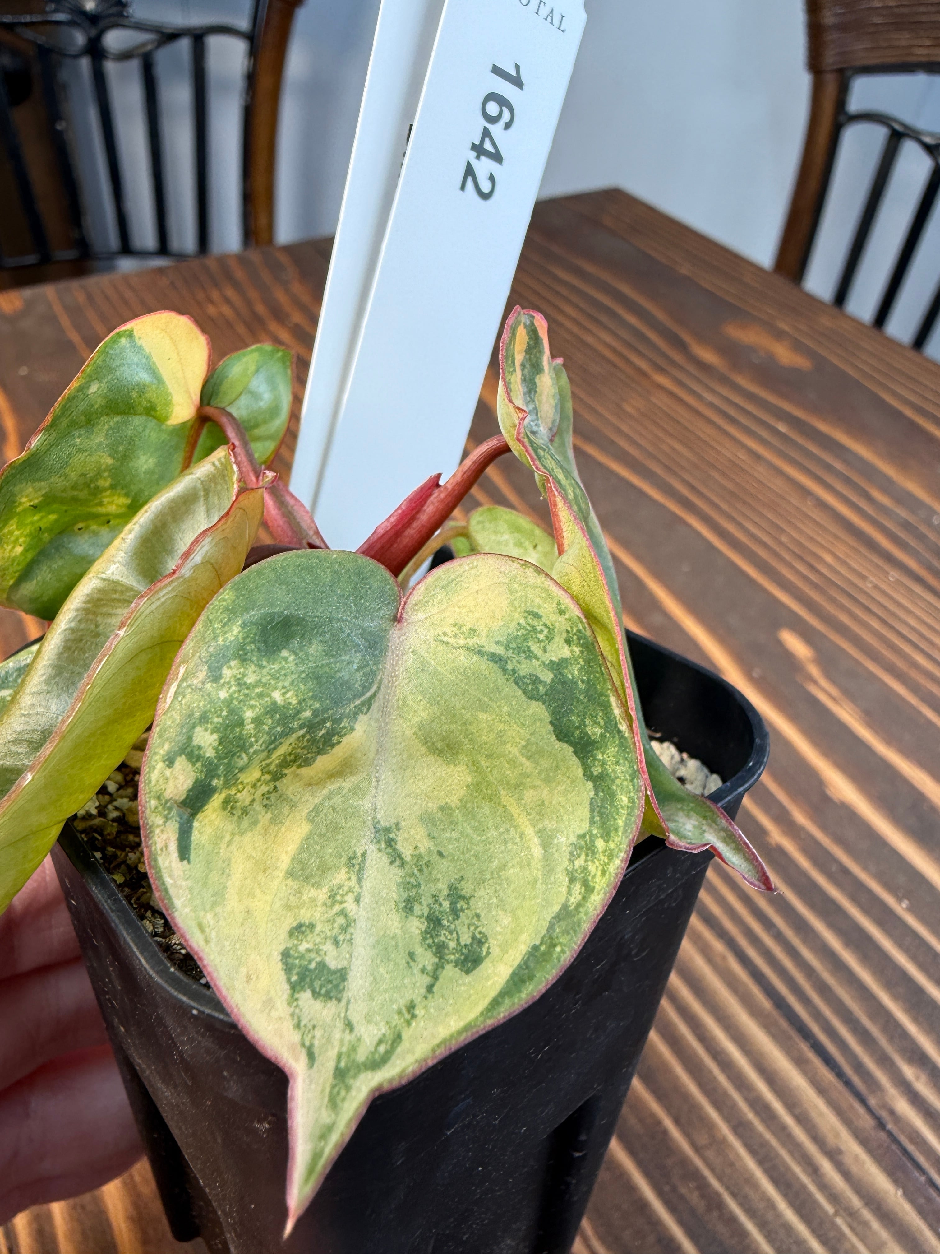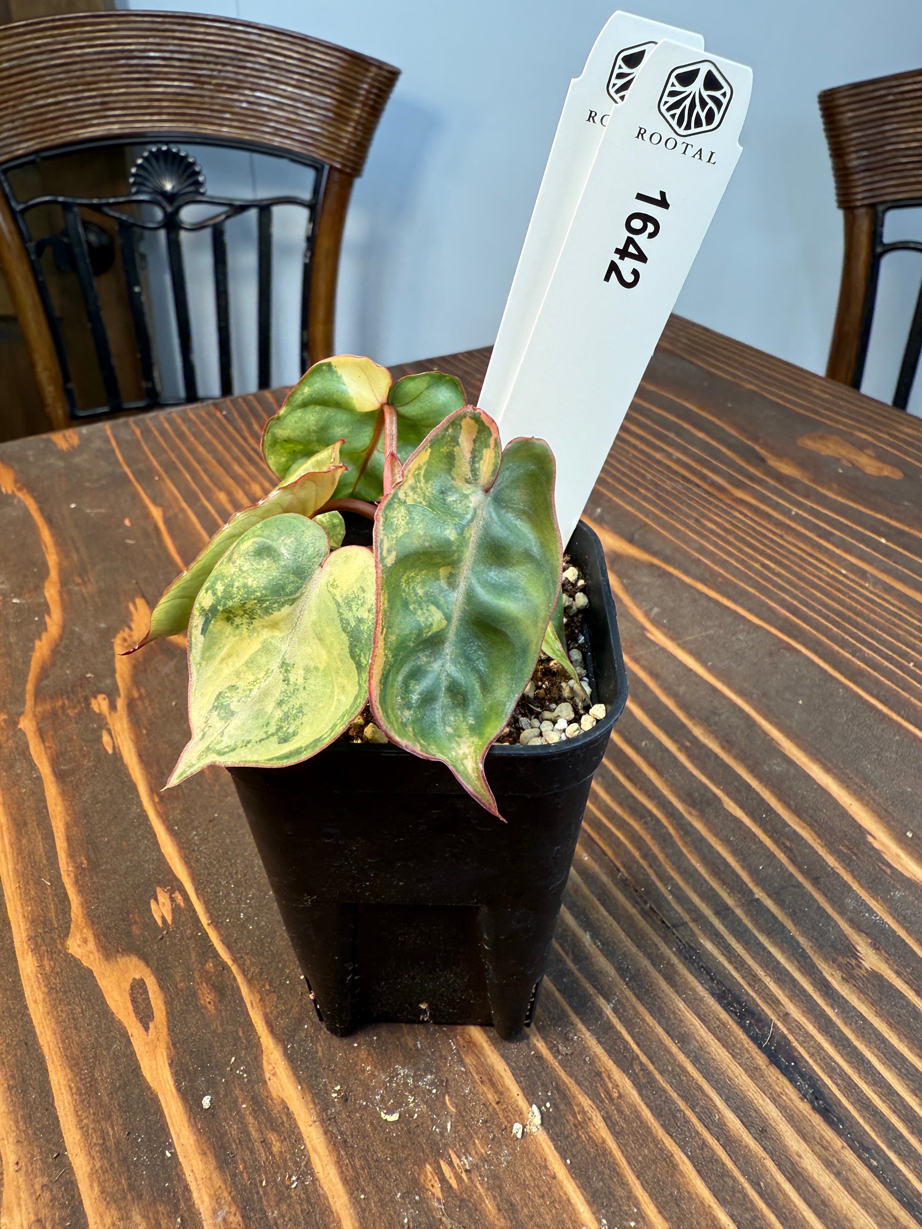 ★1642【赤茎映えの黄金斑】フィロデンドロン ビレッティア バリエガータ(2.5号ロング硬質ポット)