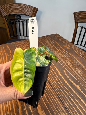 ★1643【赤茎映えの黄金斑】フィロデンドロン ビレッティア バリエガータ(2.5号ロング硬質ポット)