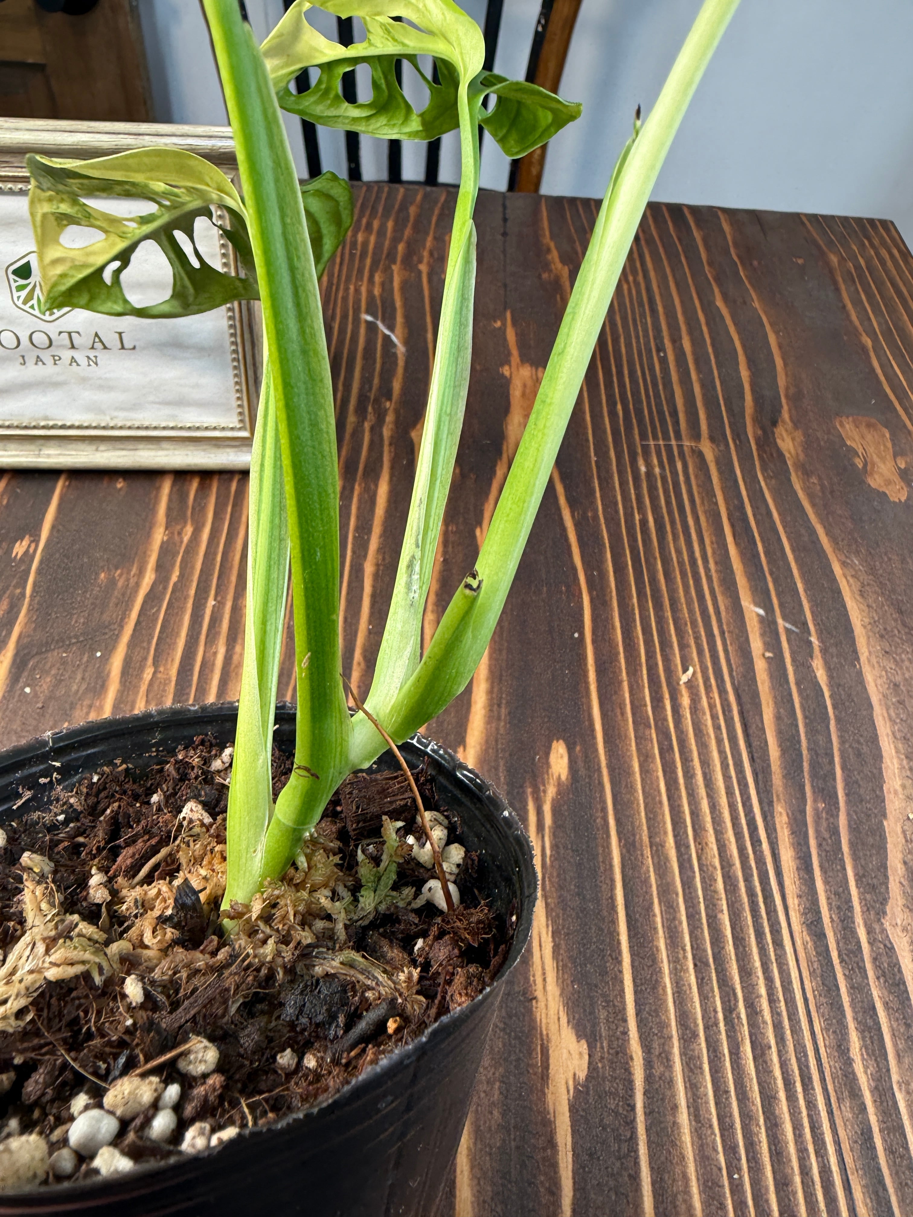 モンステラ アダンソニーバリエガータは、美しい黄斑が施された葉が印象的な植物です。サイズは3号ポットで、約20㎝程度の元気な個体をお届けいたします。どのインテリアにも合わせやすく、特別なアクセントを加えることでしょう。