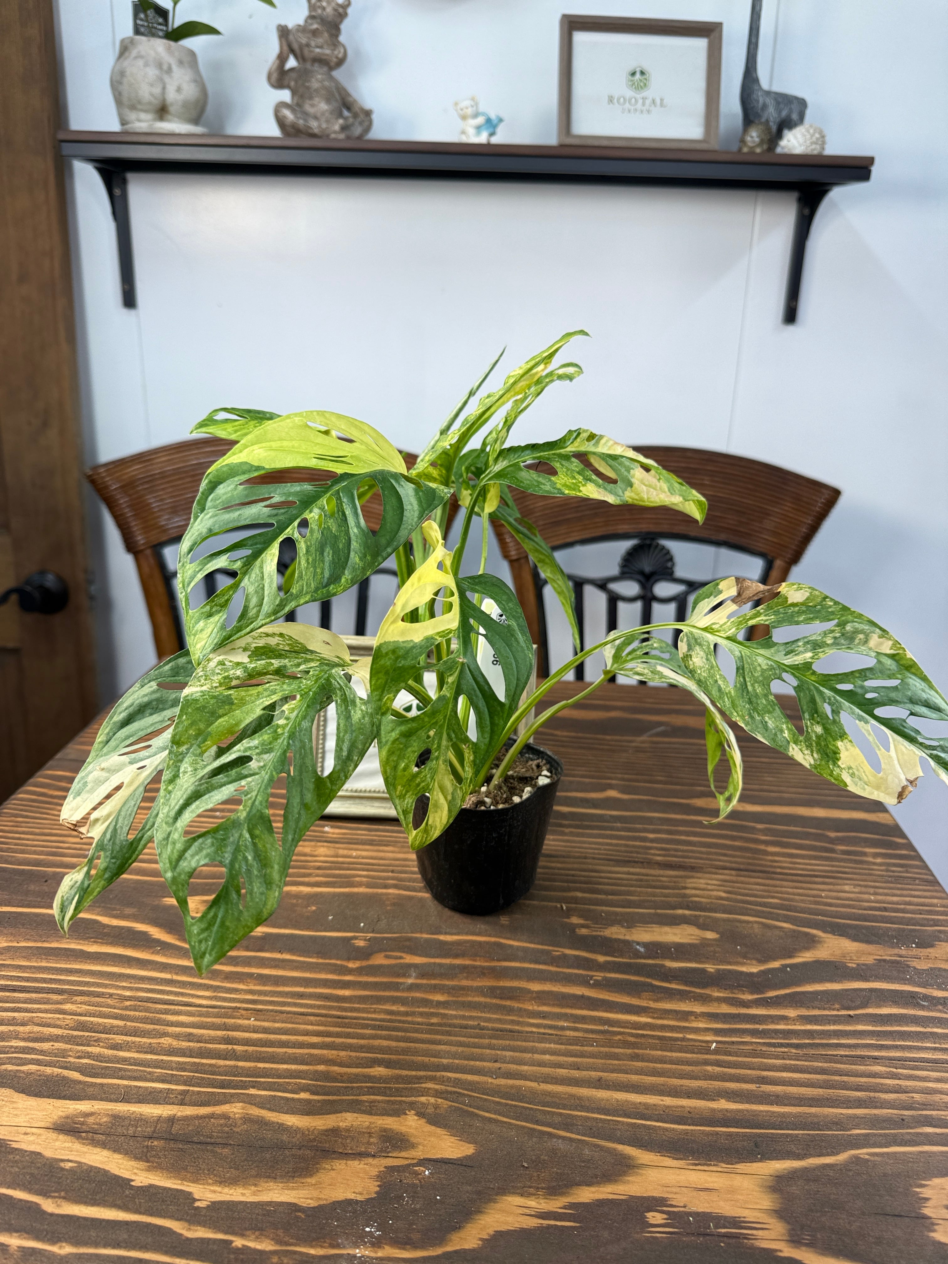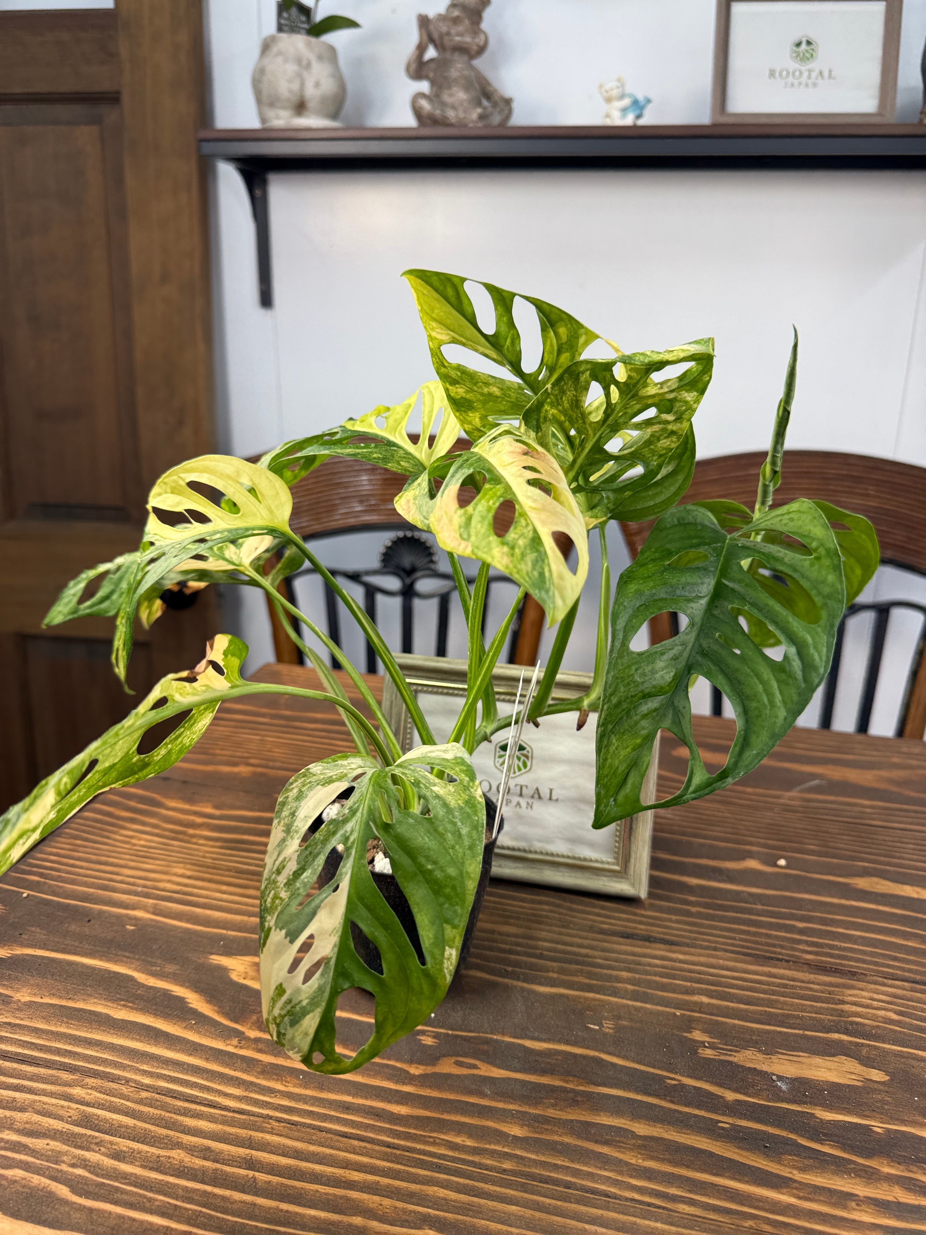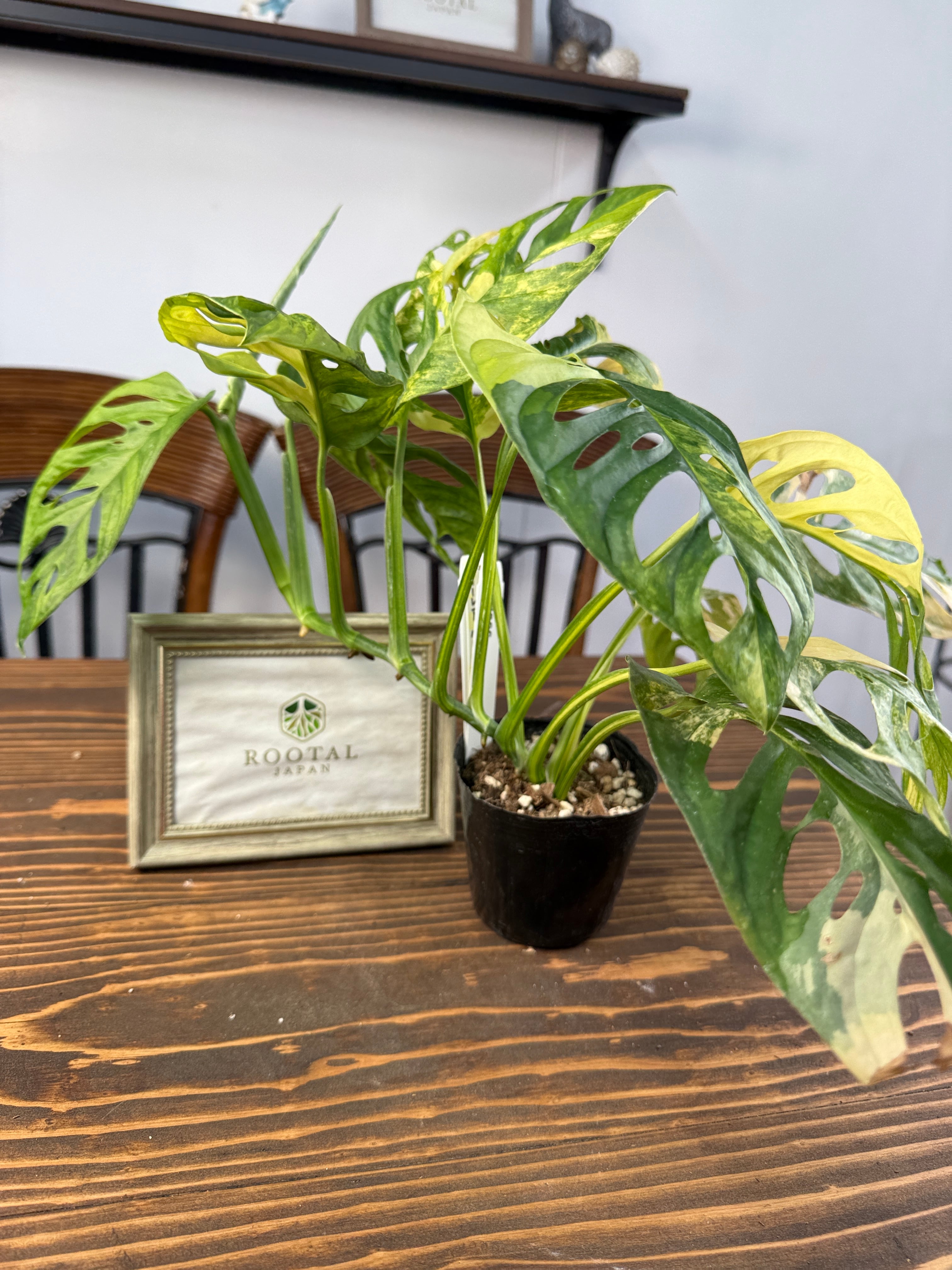 モンステラ アダンソニーバリエガータは、美しい黄斑が施された葉が印象的な植物です。サイズは3号ポットで、約20㎝程度の元気な個体をお届けいたします。どのインテリアにも合わせやすく、特別なアクセントを加えることでしょう。