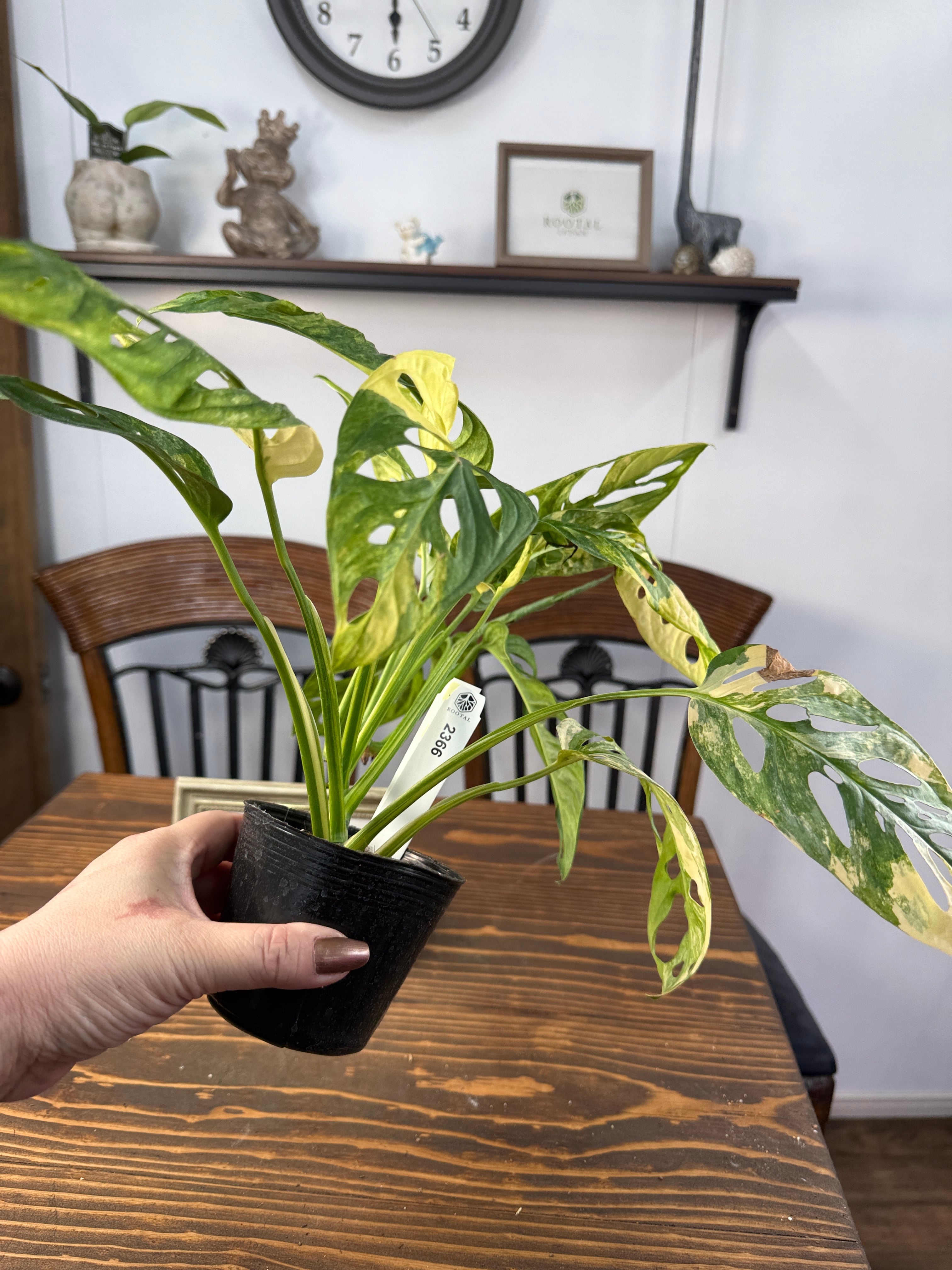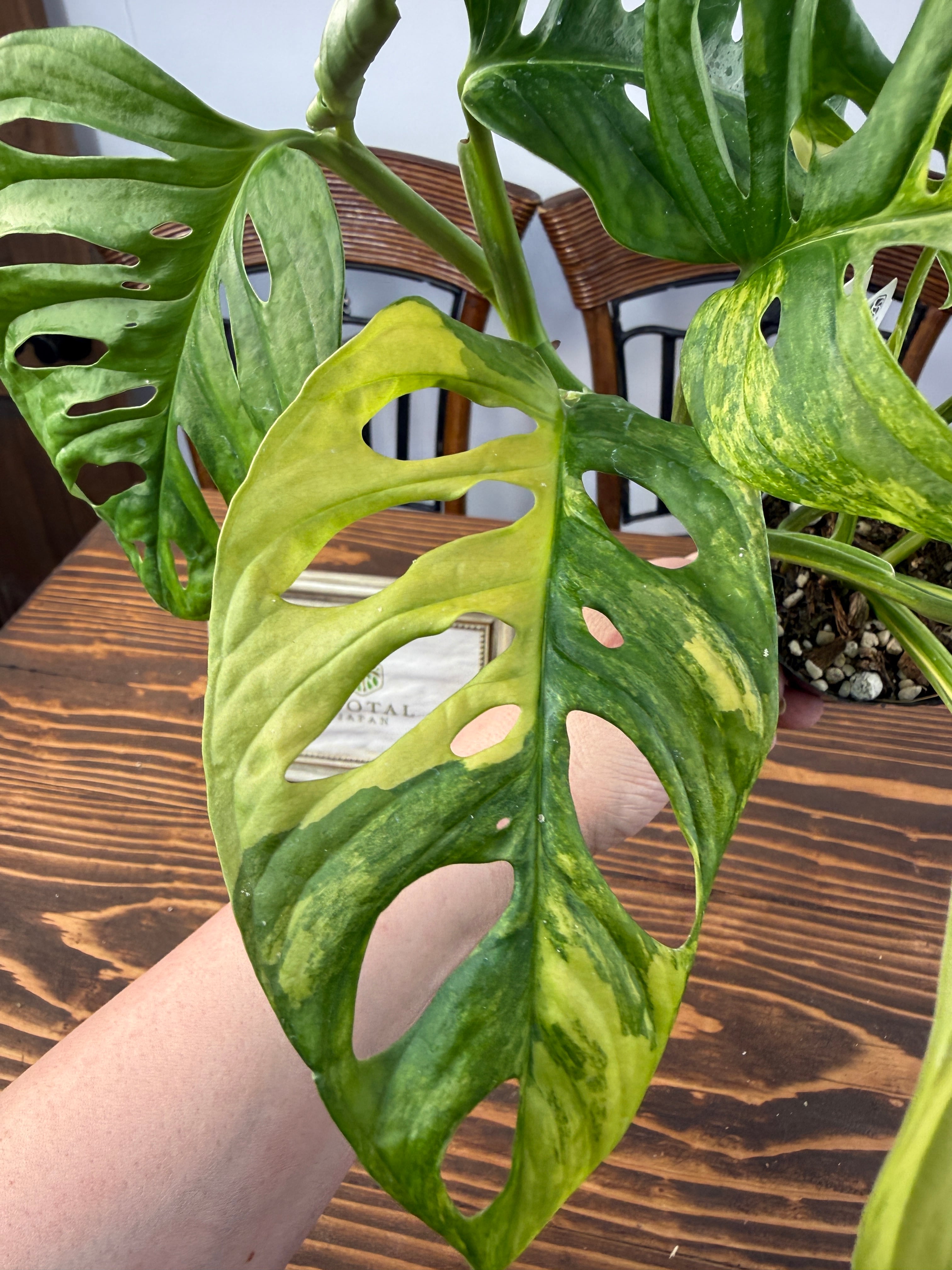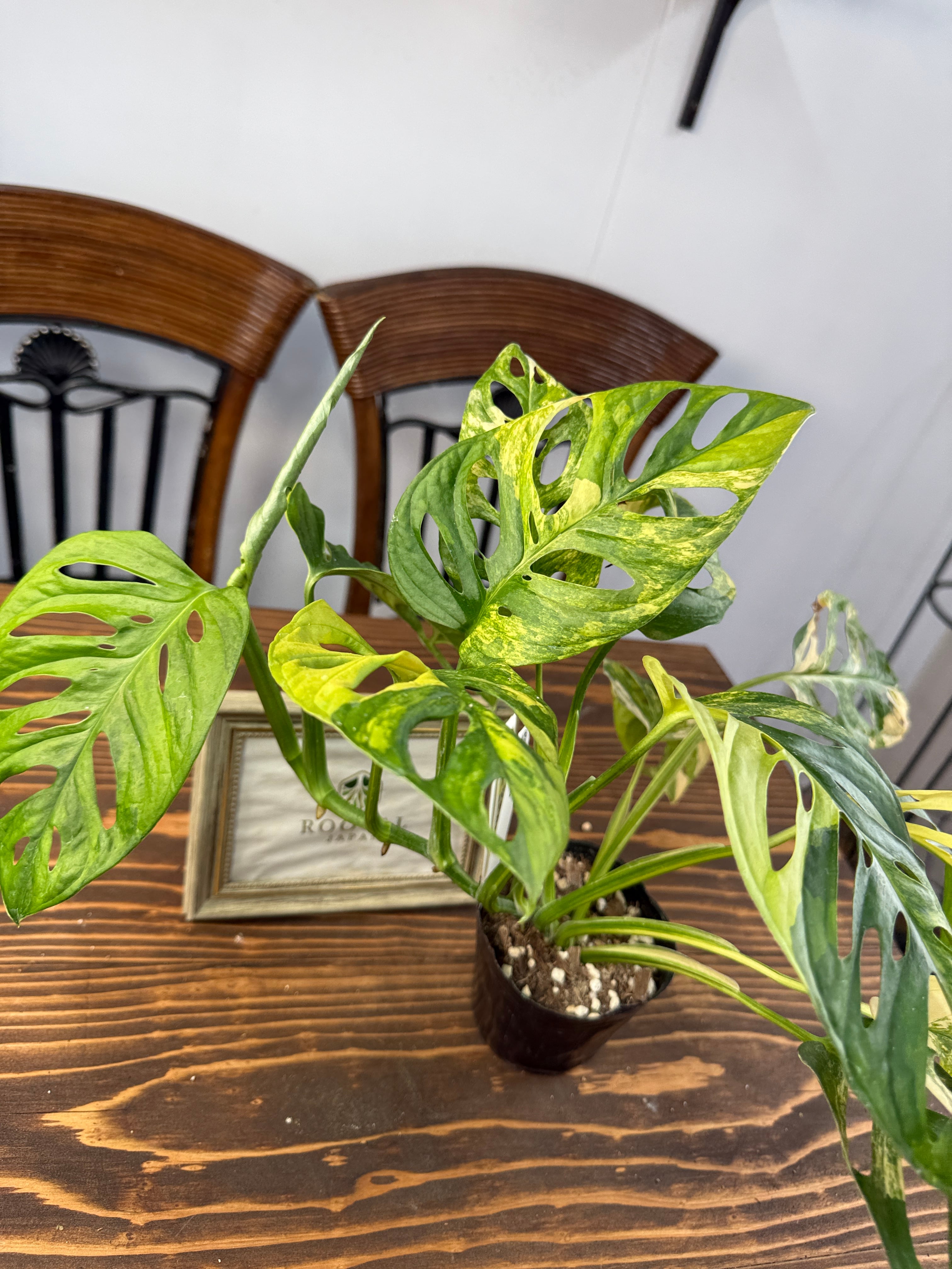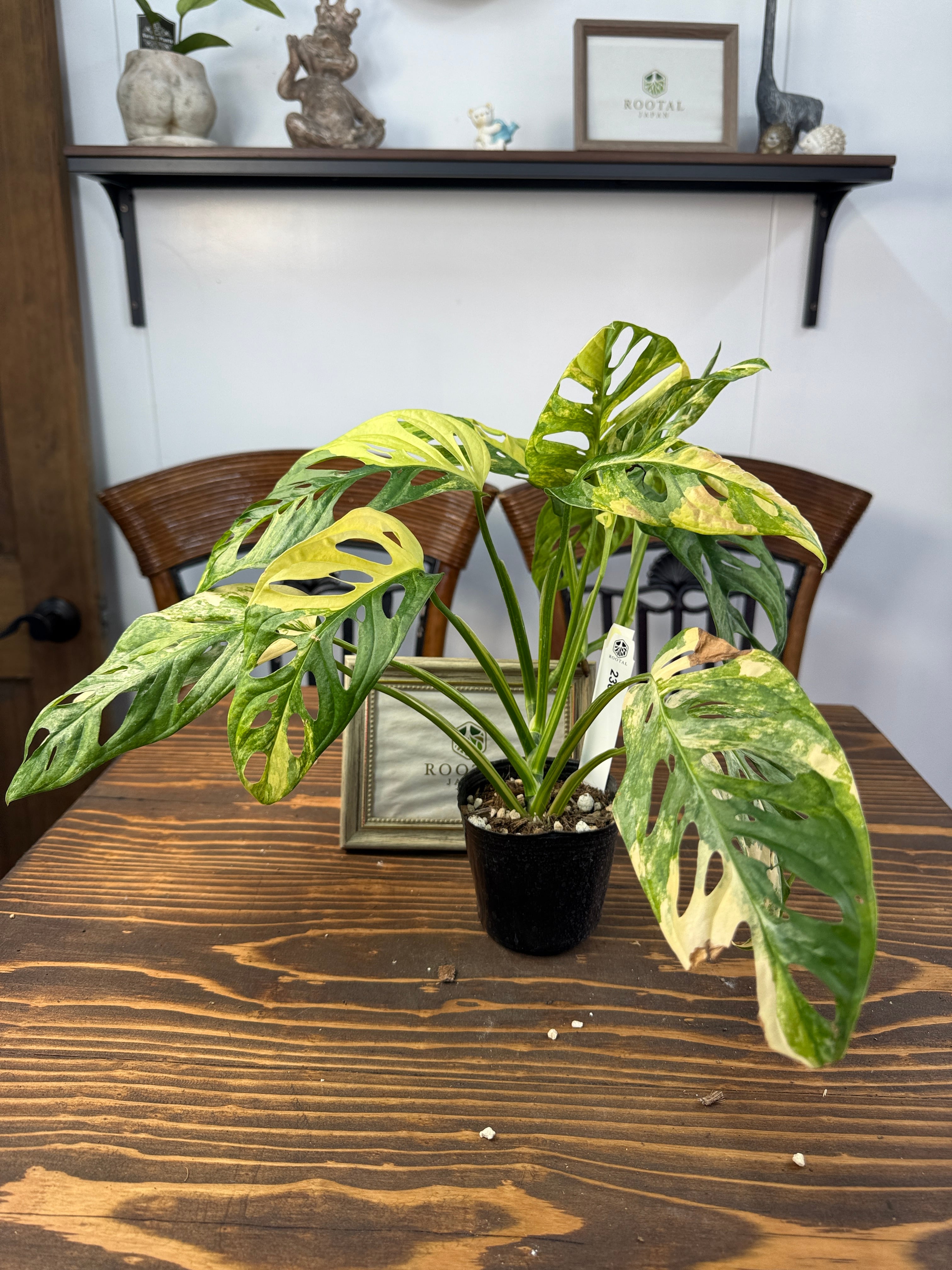 モンステラ アダンソニーバリエガータは、美しい黄斑が施された葉が印象的な植物です。サイズは3号ポットで、約20㎝程度の元気な個体をお届けいたします。どのインテリアにも合わせやすく、特別なアクセントを加えることでしょう。
