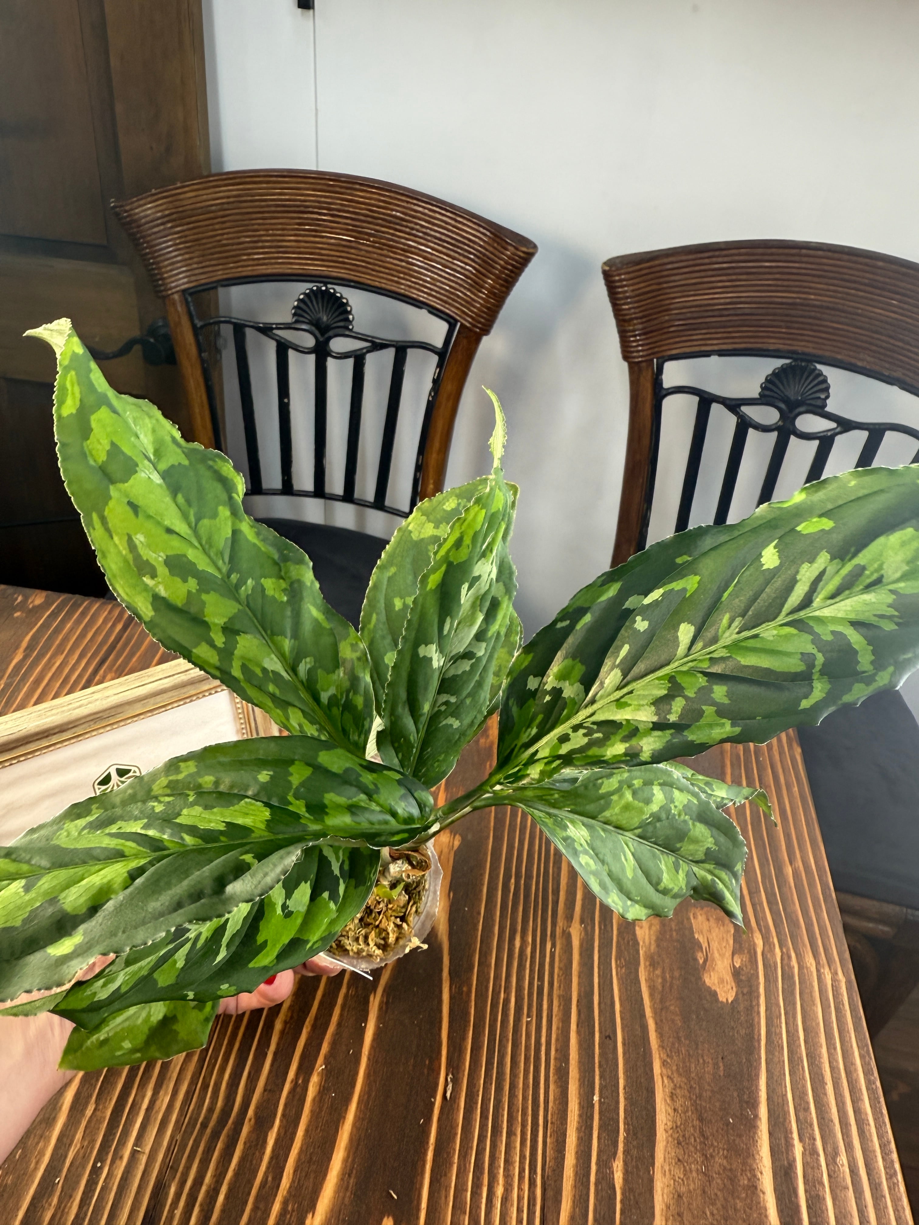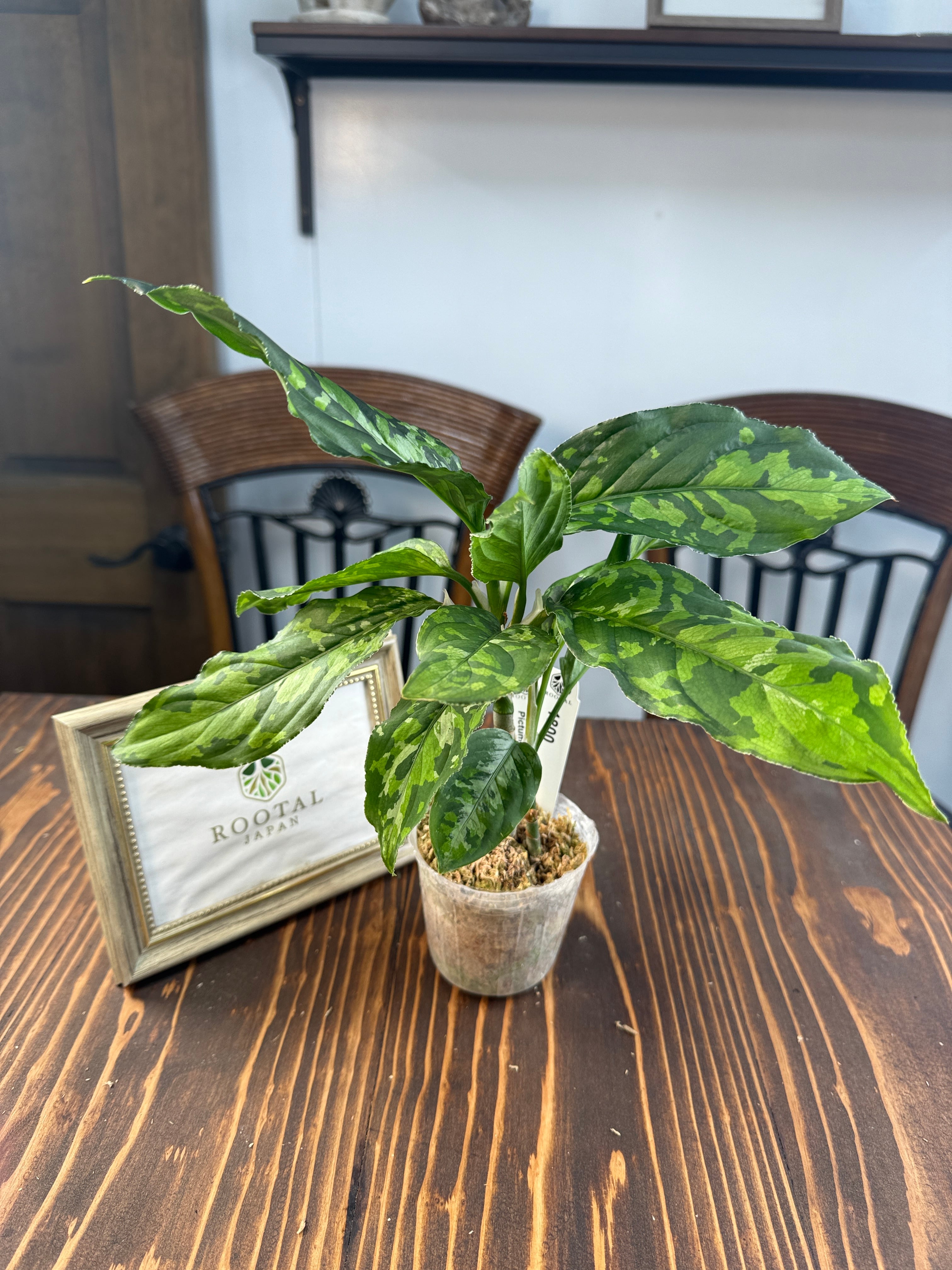 苗の状態でお届けいたしますので、定期的な植え替えをお勧めします。葉に自然なダメージが見られる場合がございますが、これは成長過程の一部ですので、安心してご利用ください。豊かな光を浴びせ、愛情を込めて育てていただき、アグラオネマ ピクタムトリカラーの素晴らしい美しさをお楽しみください。何か気になる点がございましたら、お気軽にお問い合わせください。