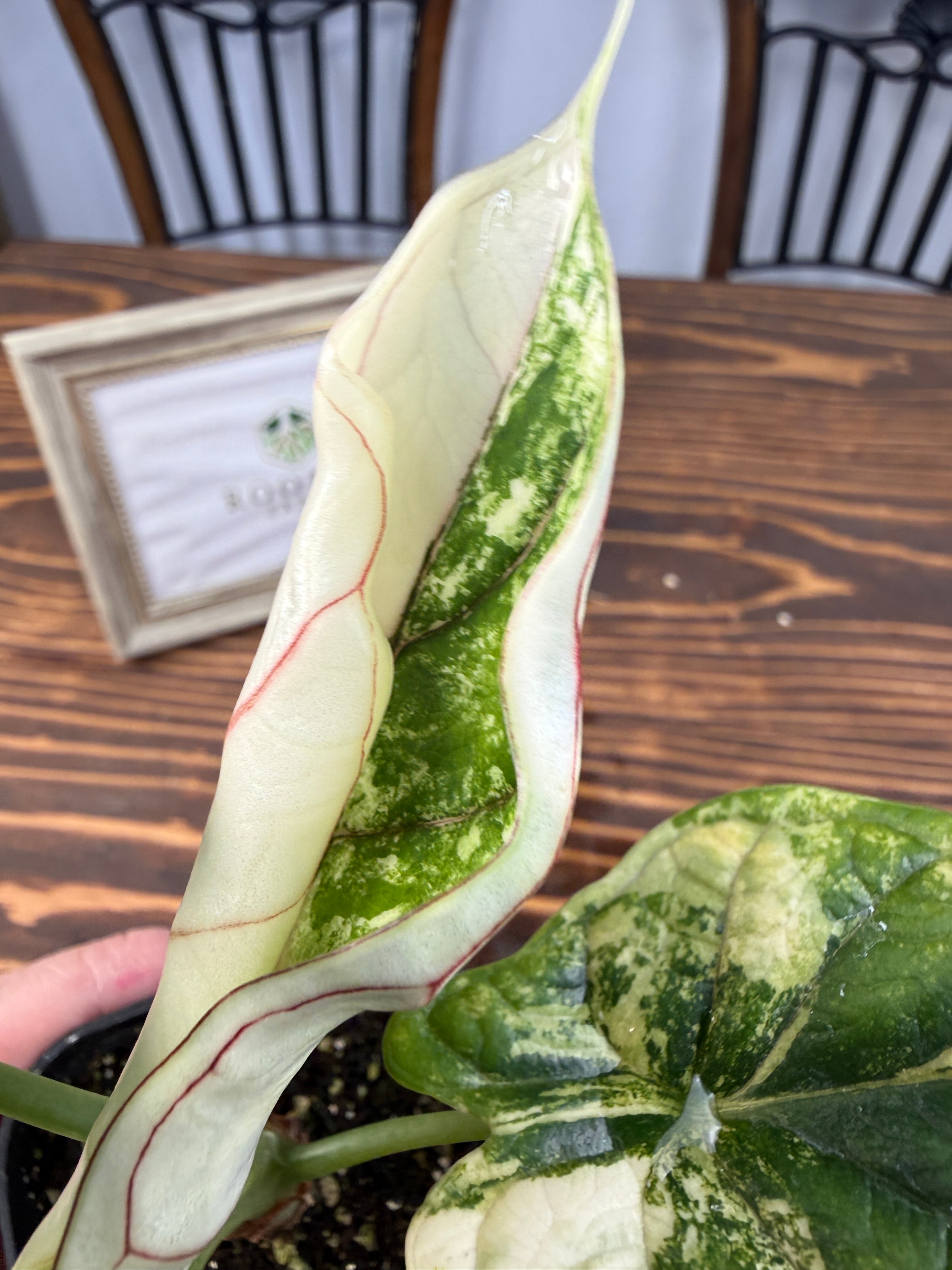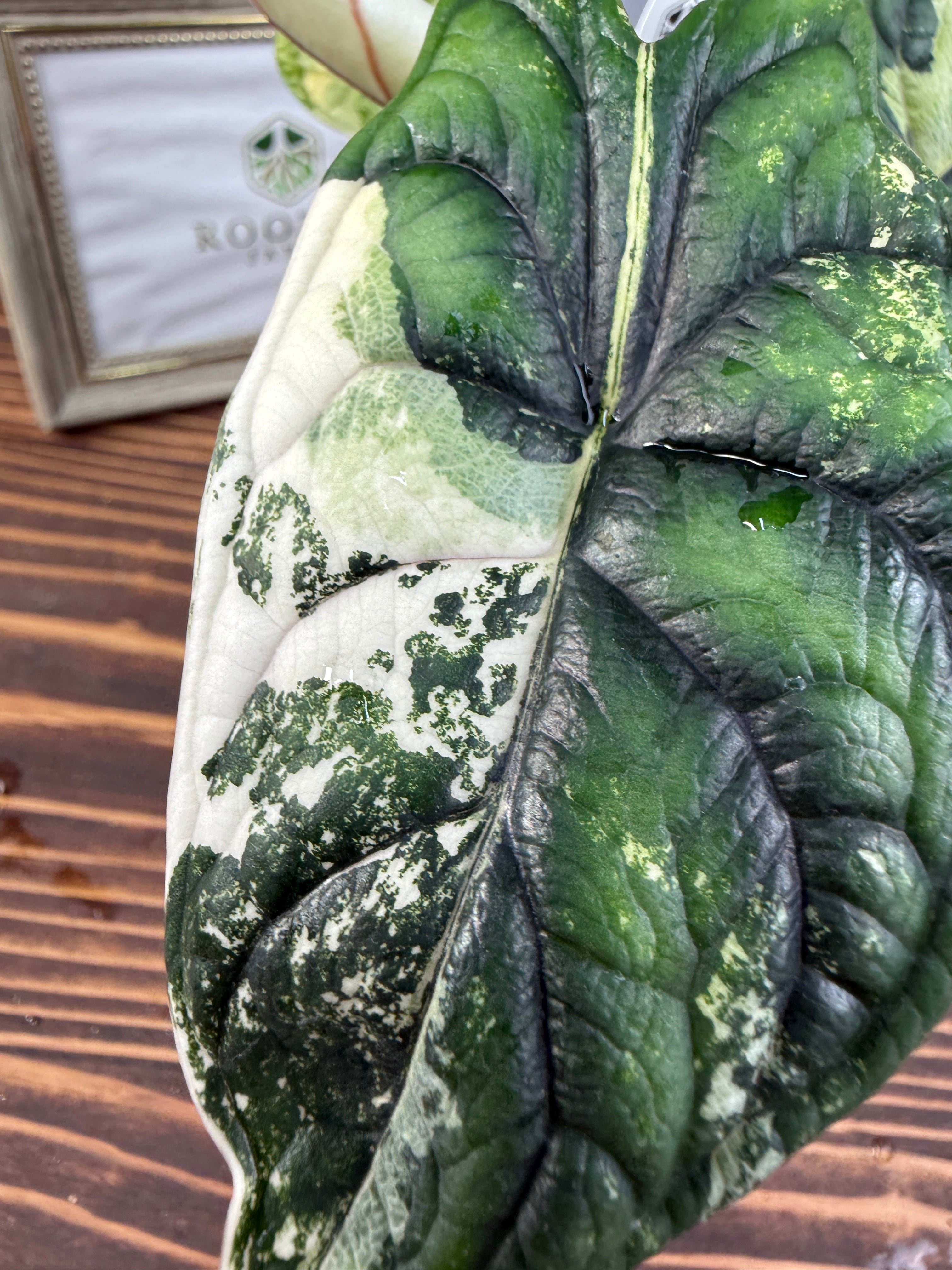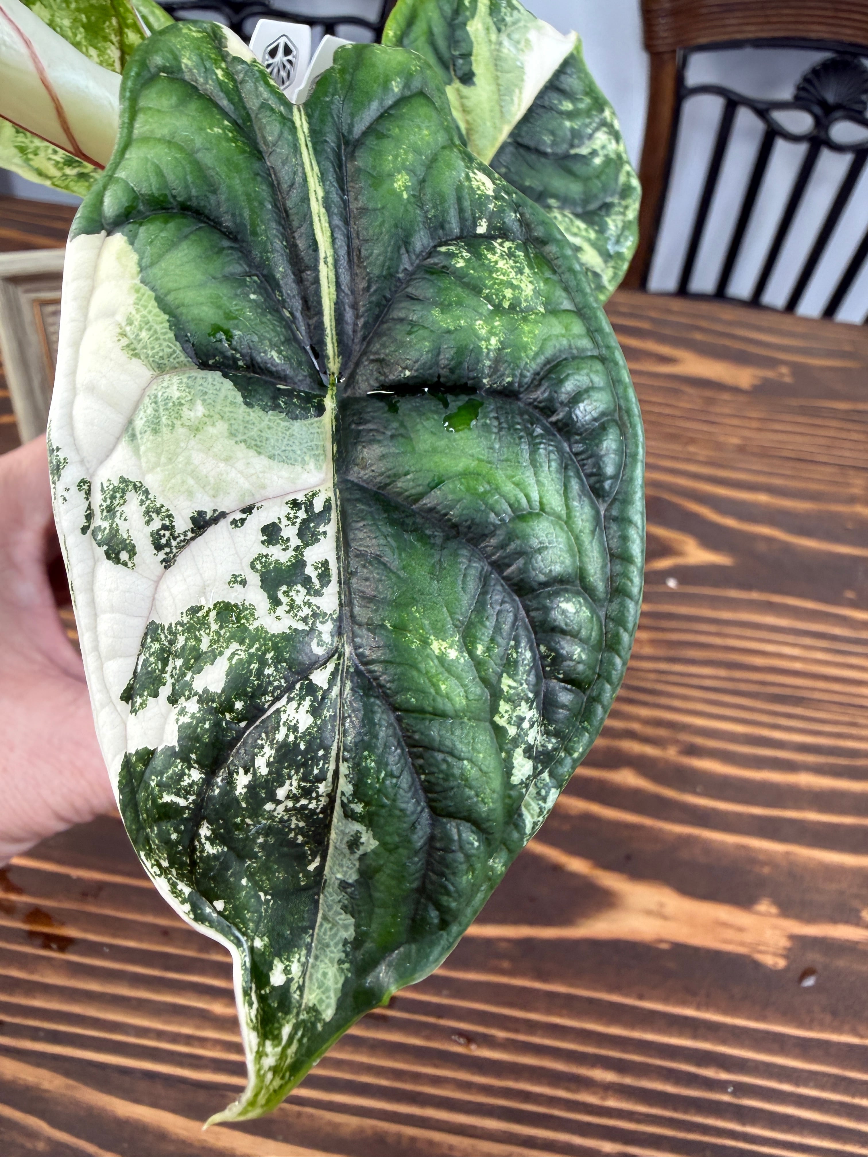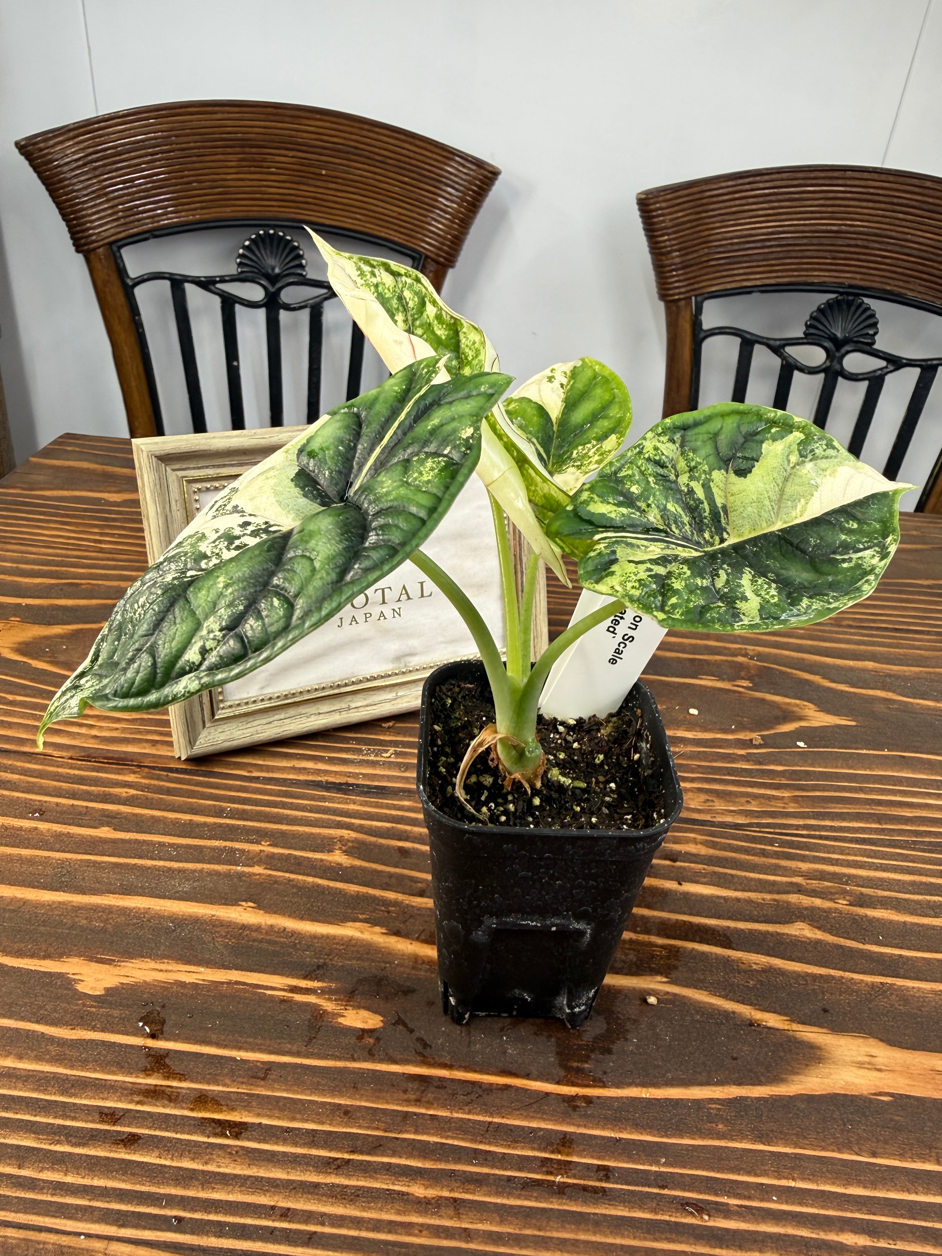 【超レア】アロカシア ドラゴンスケール ホワイトバリエガータは、そのユニークなドラゴンのような模様が特徴の観葉植物です!お部屋にエキゾチックな雰囲気を与え、心を豊かにすること間違いなしです。初心者の方でも育てやすい特性を持つので、ぜひこの貴重な植物をお迎えください。