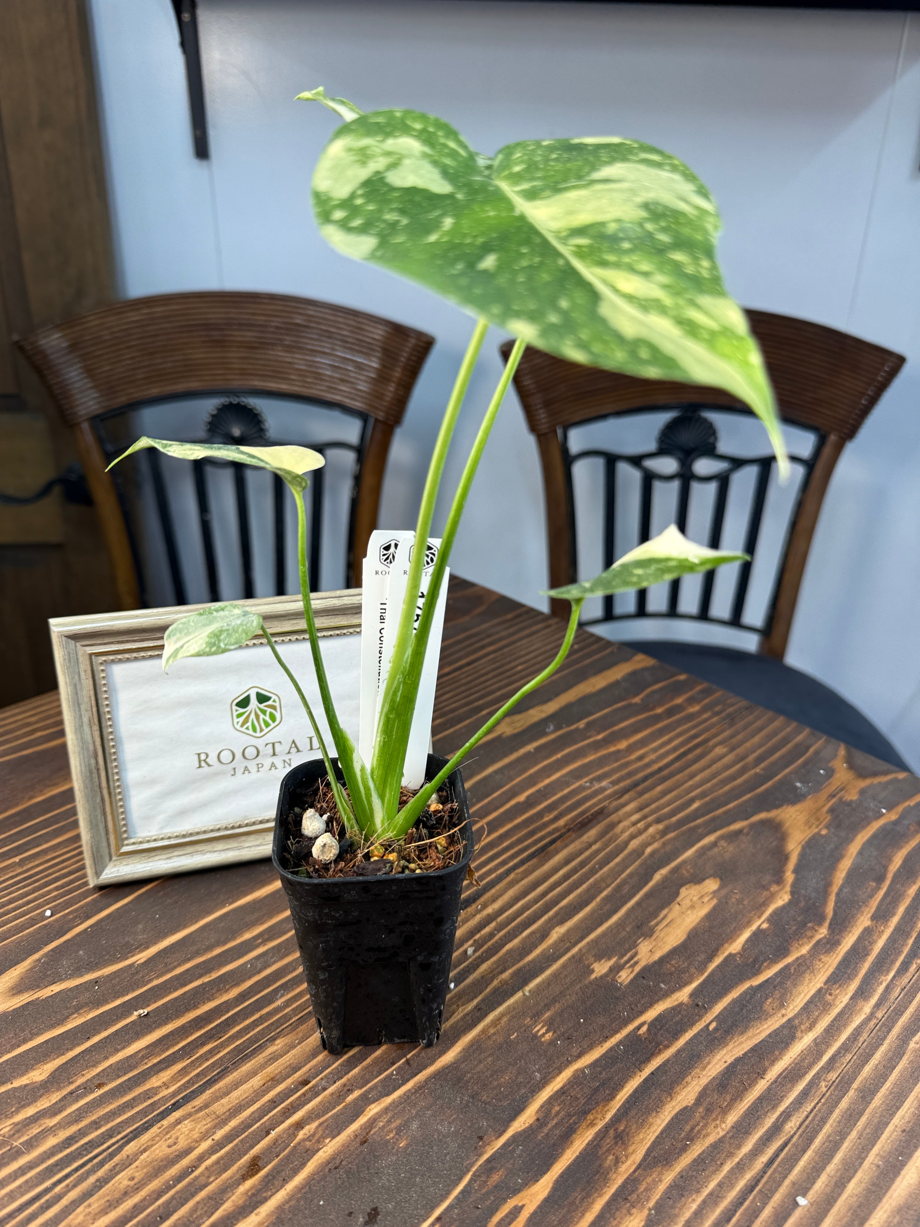 魅力的なバリエガータのかわいいベビー苗!モンステラ デリシオーサ タイコンステレーションは、その美しい斑入り模様と可愛らしいサイズ感が魅力の観葉植物です。インテリアにグリーンをプラスするだけでなく、心を癒してくれる一品です。手軽に育てられるので、初心者の方にもおすすめです。
