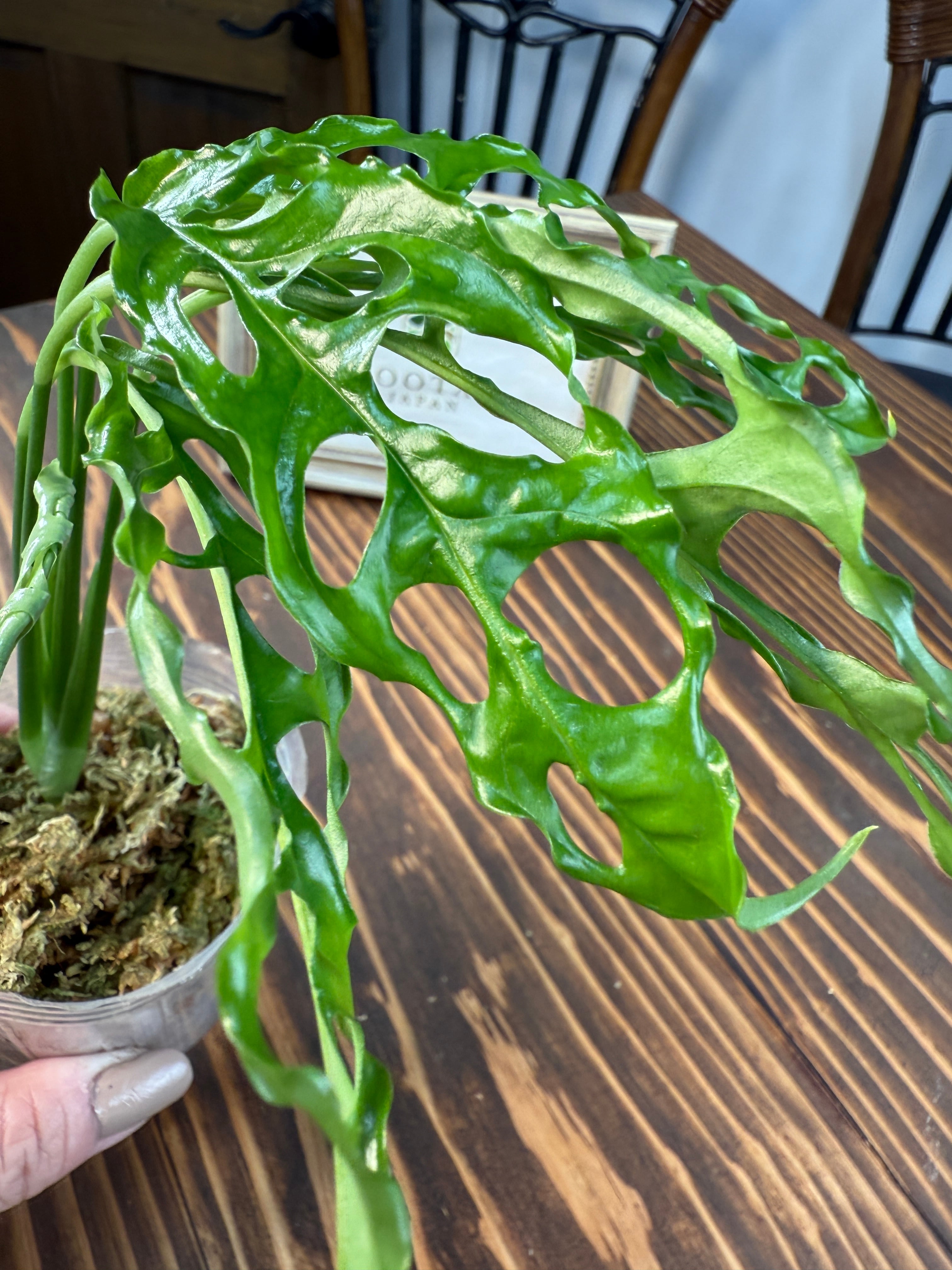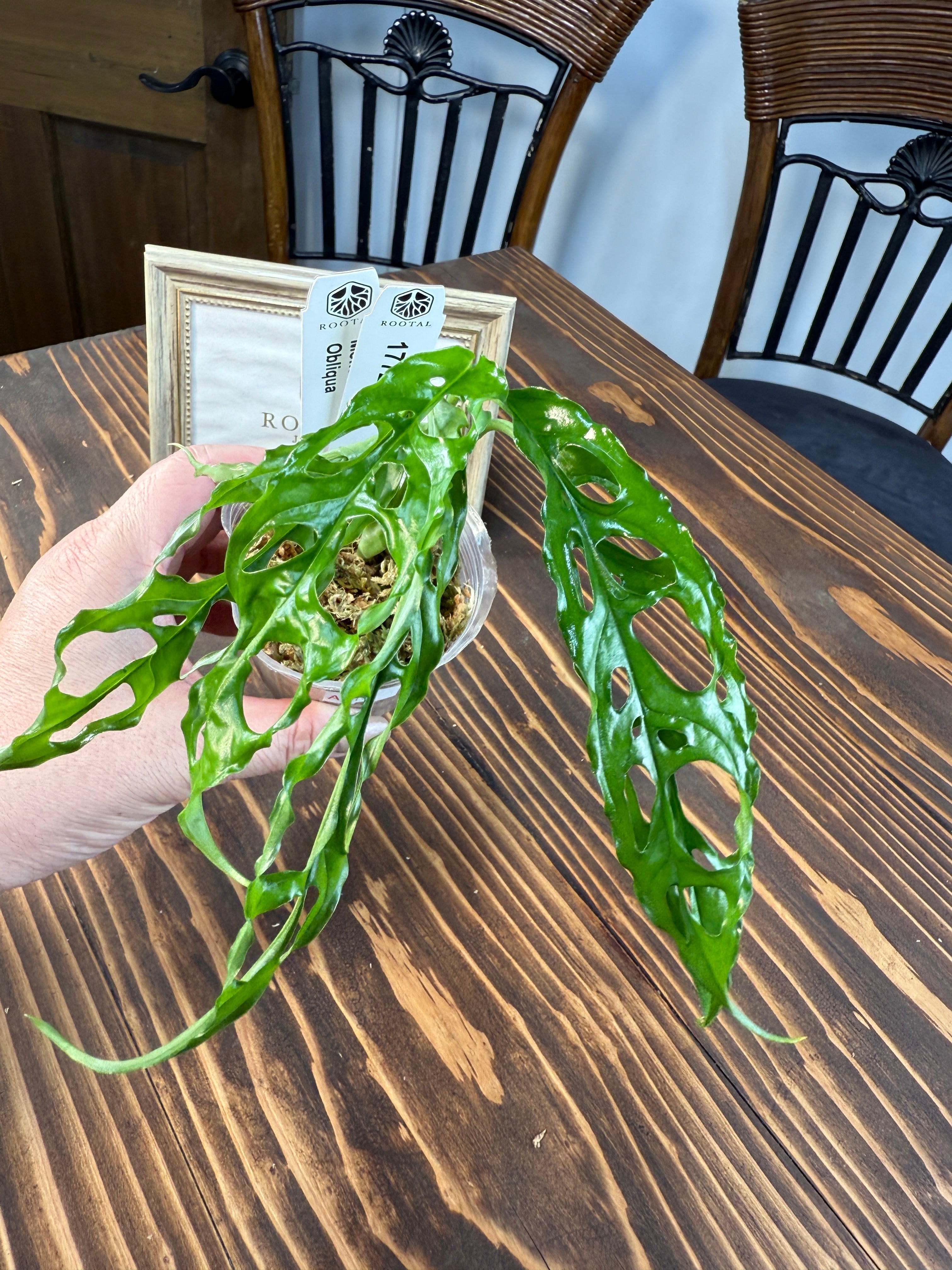 モンステラ オブリクアは、その波打つようなフォルムの葉が特徴の観葉植物です。このエキゾチックなデザインは、空間に独特の雰囲気をもたらし、見る人を惹きつけてやみません!明るい間接光で育てることで、その美しい葉の魅力が引き立ち、インテリアに素敵なアクセントを加えます。