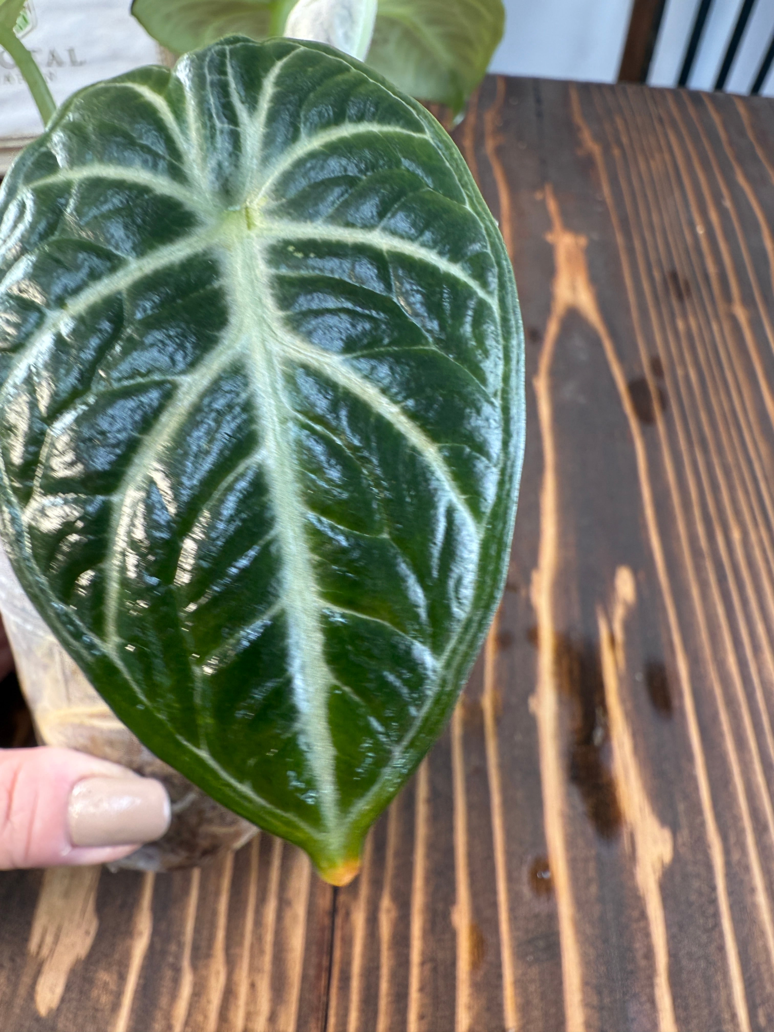 アロカシア レギヌラ ニンジャは、独自のディープグリーンの葉と、エキゾチックな形状が特徴の観葉植物です。このユニークなデザインは、見る人をひきつけ、空間にエレガントな雰囲気をもたらします!明るい間接光のもとで育成することで、その美しさがより一層際立ち、インテリアに鮮やかなアクセントを与えます。