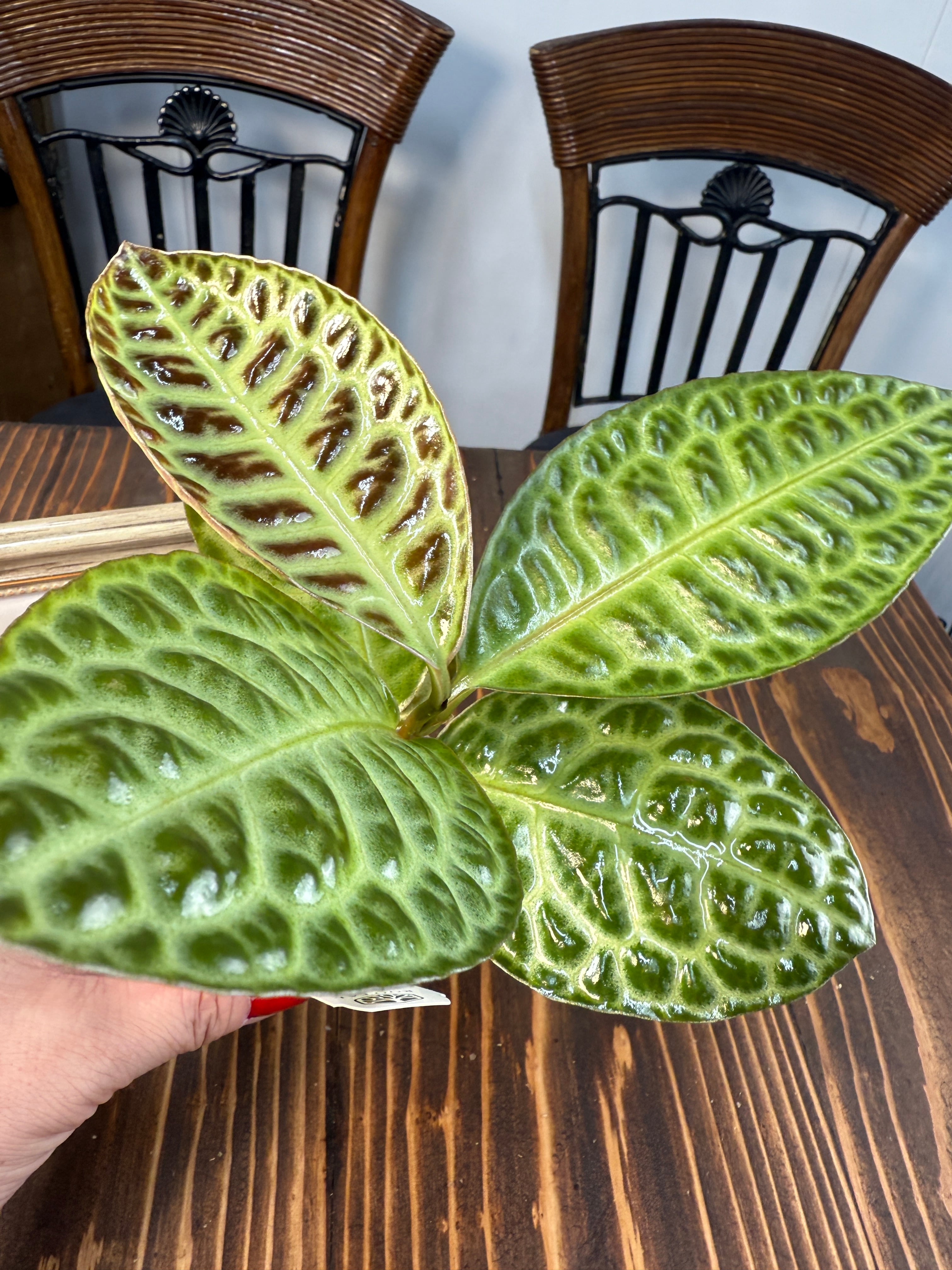 アルディシア タートルバックは、特徴的な亀甲模様の葉が印象的な観葉植物です。このユニークなデザインは、見る人を惹きつけ、空間に温かみのある雰囲気を演出します!間接光のもとで育成することで、その美しさが一層引き立ち、インテリアに豊かなアクセントを加えます。