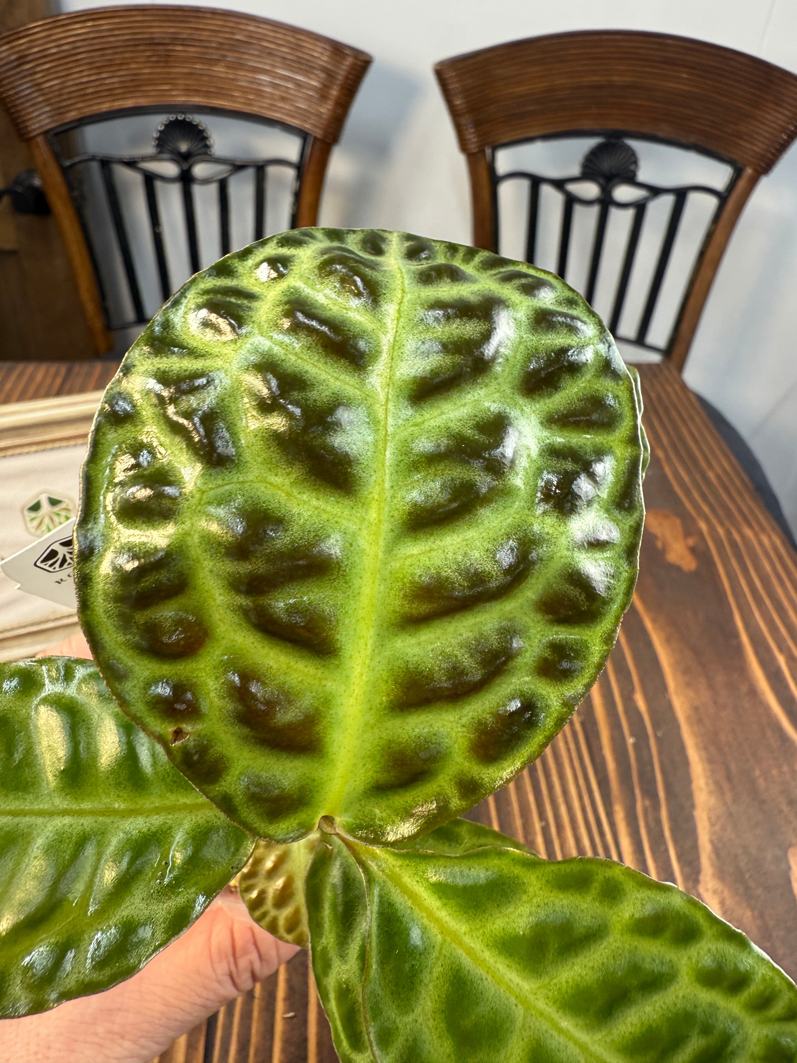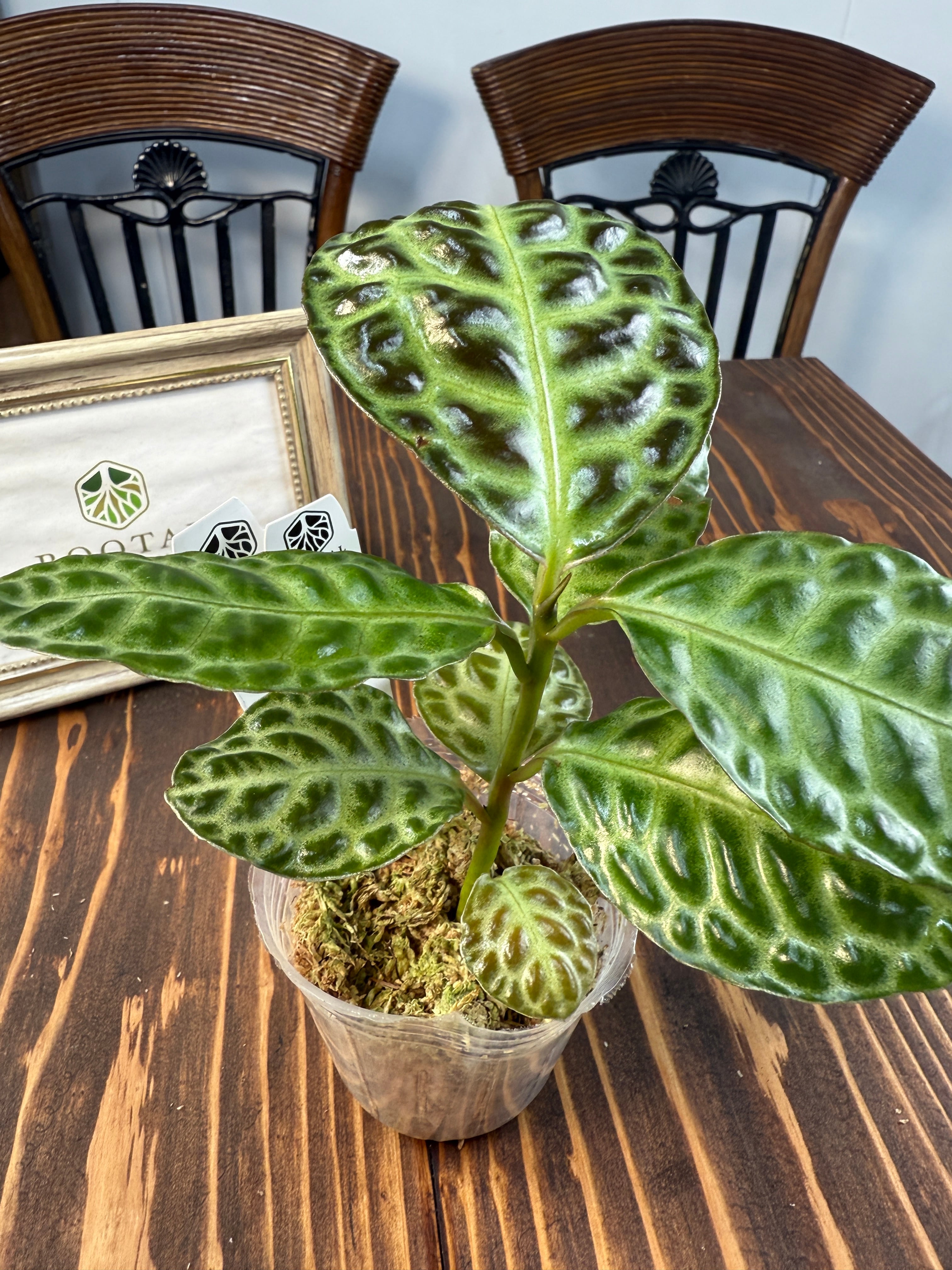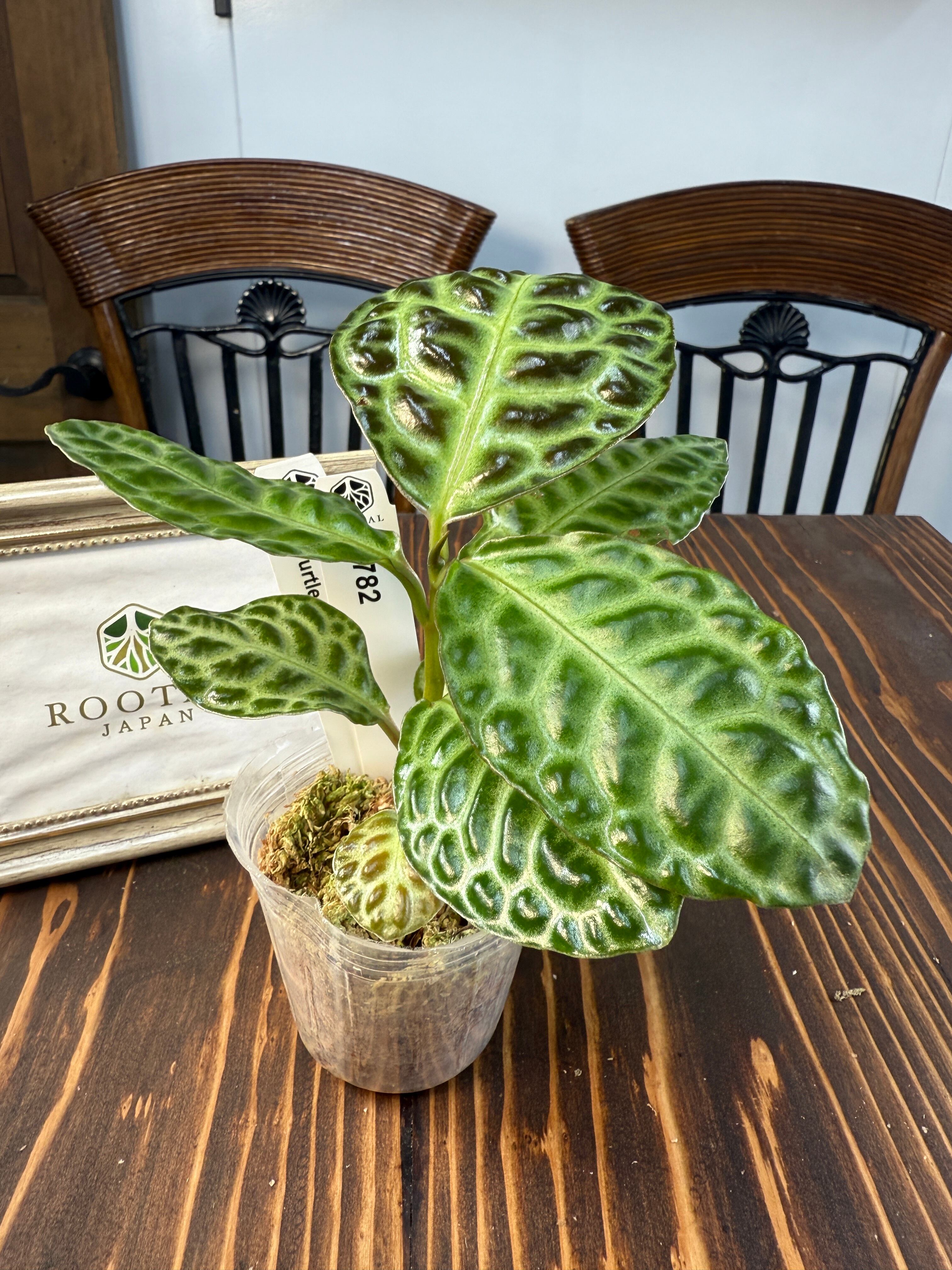 アルディシア タートルバックは、特徴的な亀甲模様の葉が印象的な観葉植物です。このユニークなデザインは、見る人を惹きつけ、空間に温かみのある雰囲気を演出します!間接光のもとで育成することで、その美しさが一層引き立ち、インテリアに豊かなアクセントを加えます。