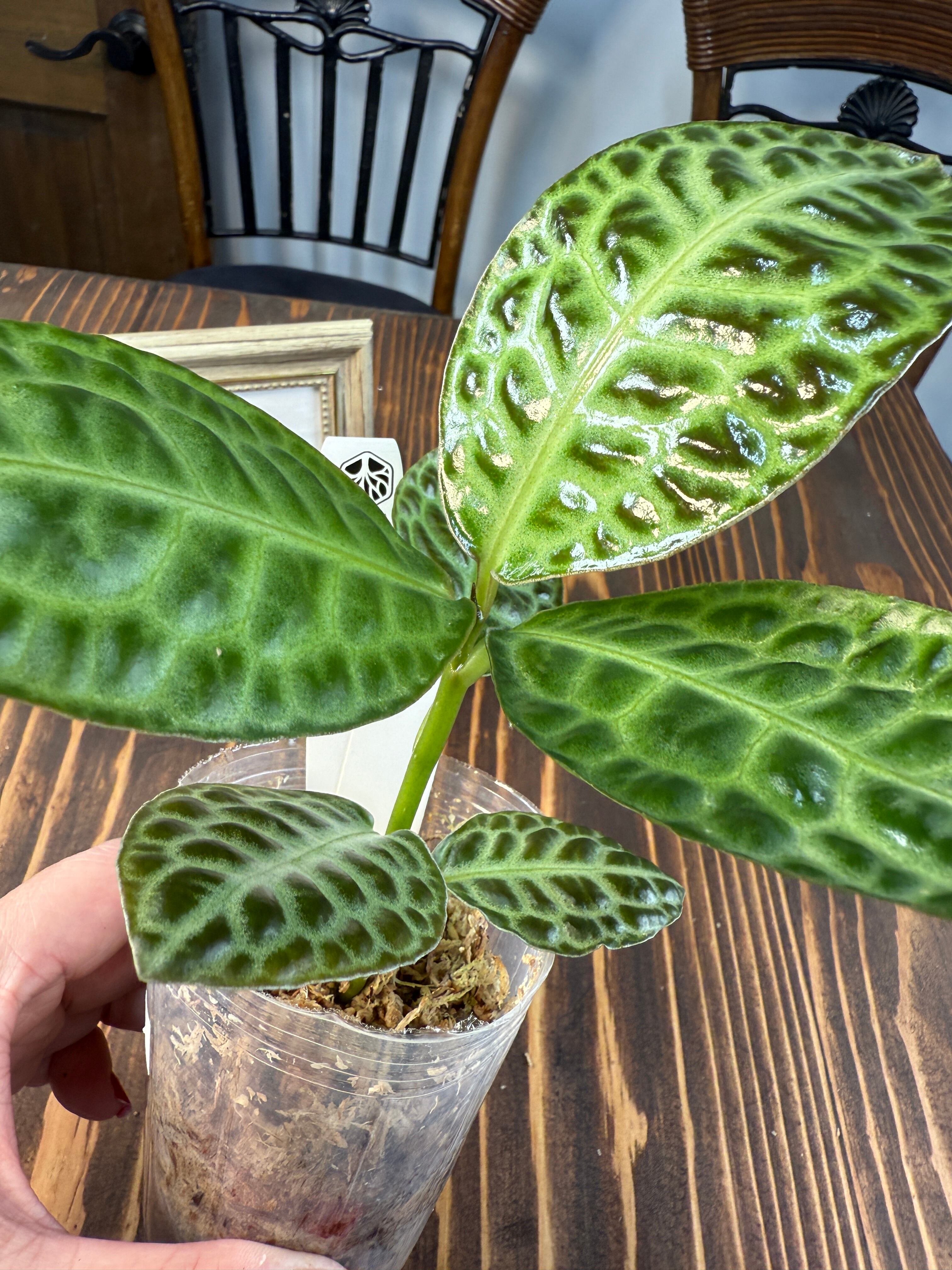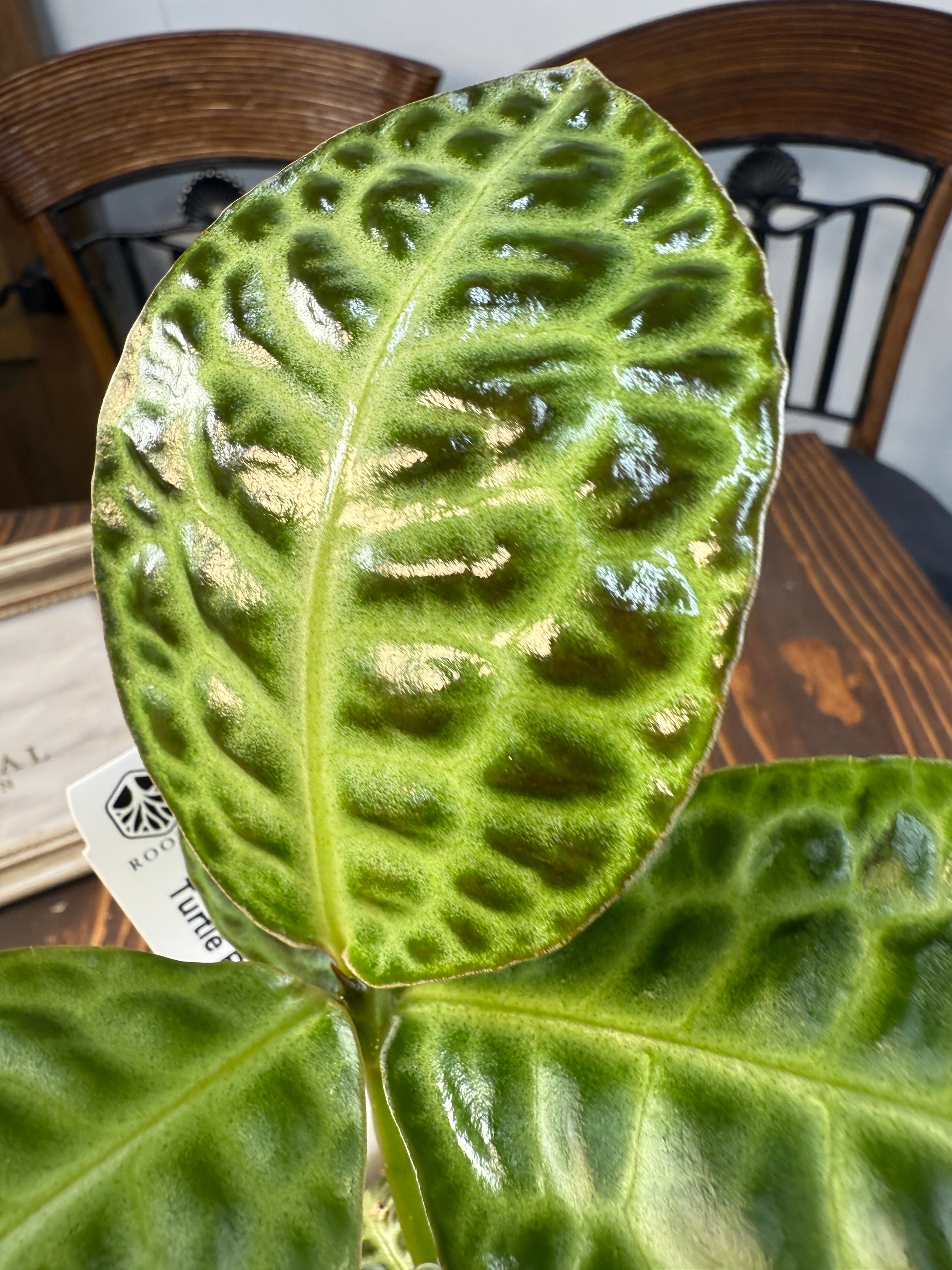 アルディシア タートルバックは、特徴的な亀甲模様の葉が印象的な観葉植物です。このユニークなデザインは、見る人を惹きつけ、空間に温かみのある雰囲気を演出します!間接光のもとで育成することで、その美しさが一層引き立ち、インテリアに豊かなアクセントを加えます。