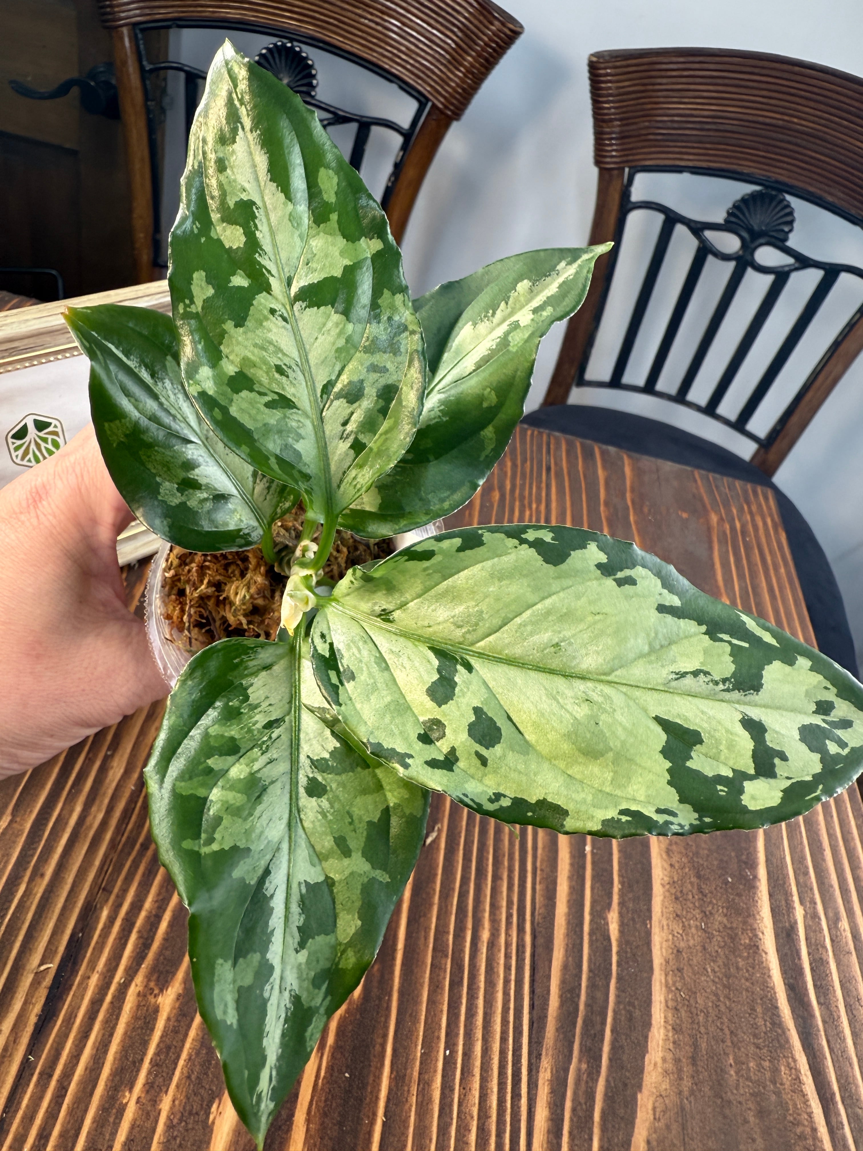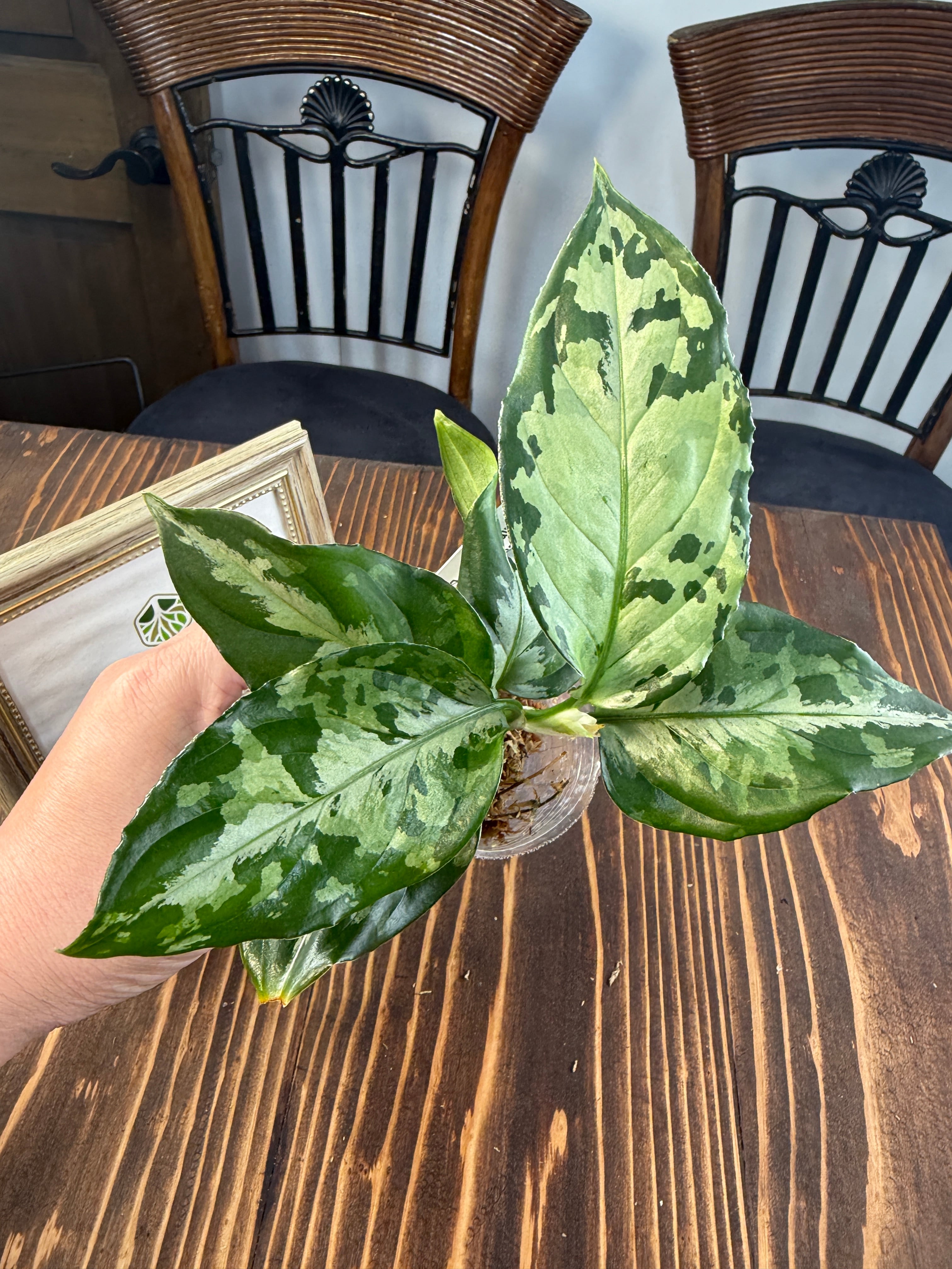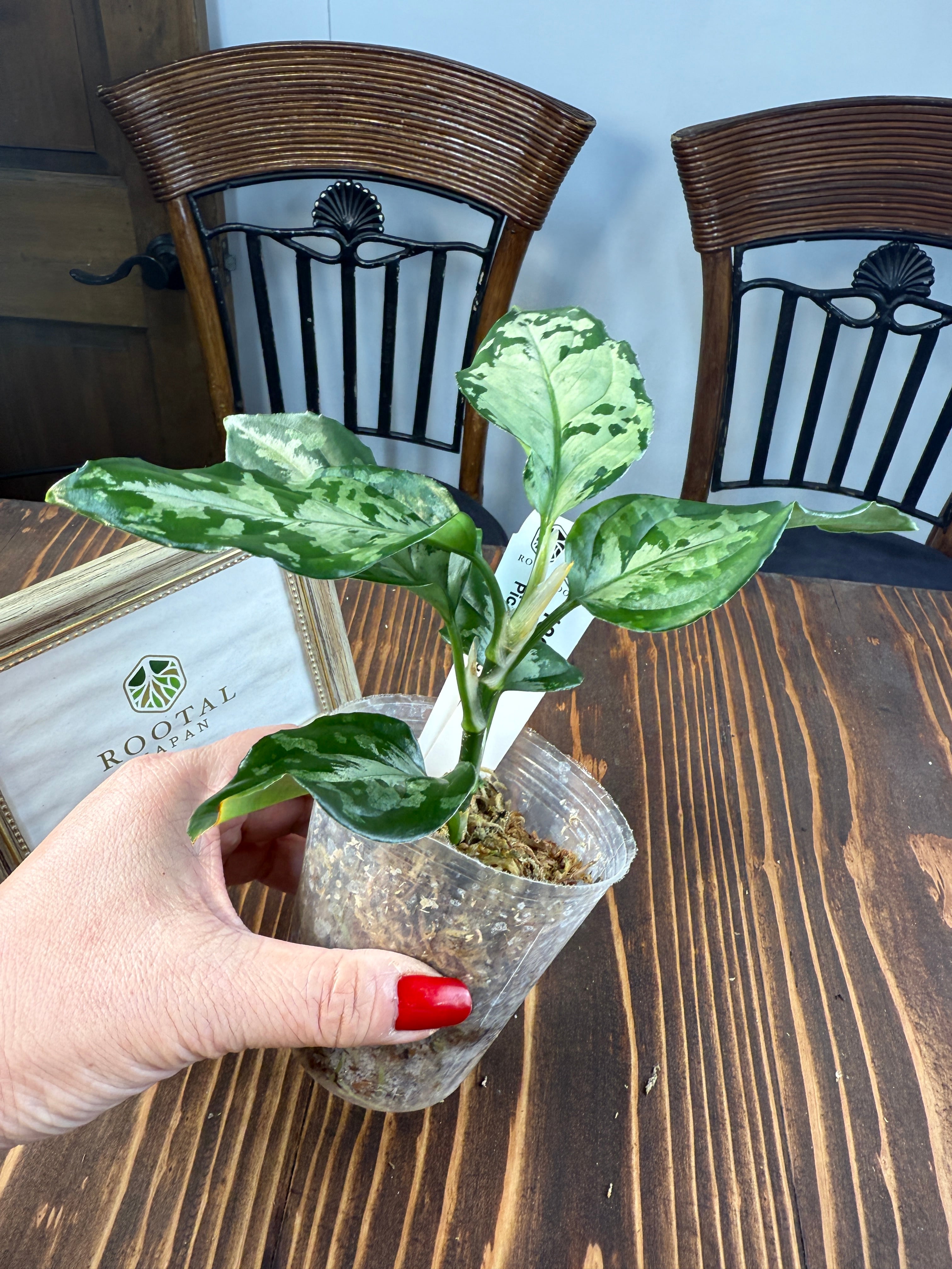 苗の状態でお届けいたしますので、定期的な植え替えをお勧めします。葉に自然なダメージが見られることもありますが、これは成長過程の一部ですので、安心して楽しんでいただけます。十分な日光を取り入れ、愛情を込めて育てていただき、アグラオネマ ピクタムトリカラー ブラックの魅力を存分にお楽しみください。何か質問がある場合は、お気軽にご連絡ください。