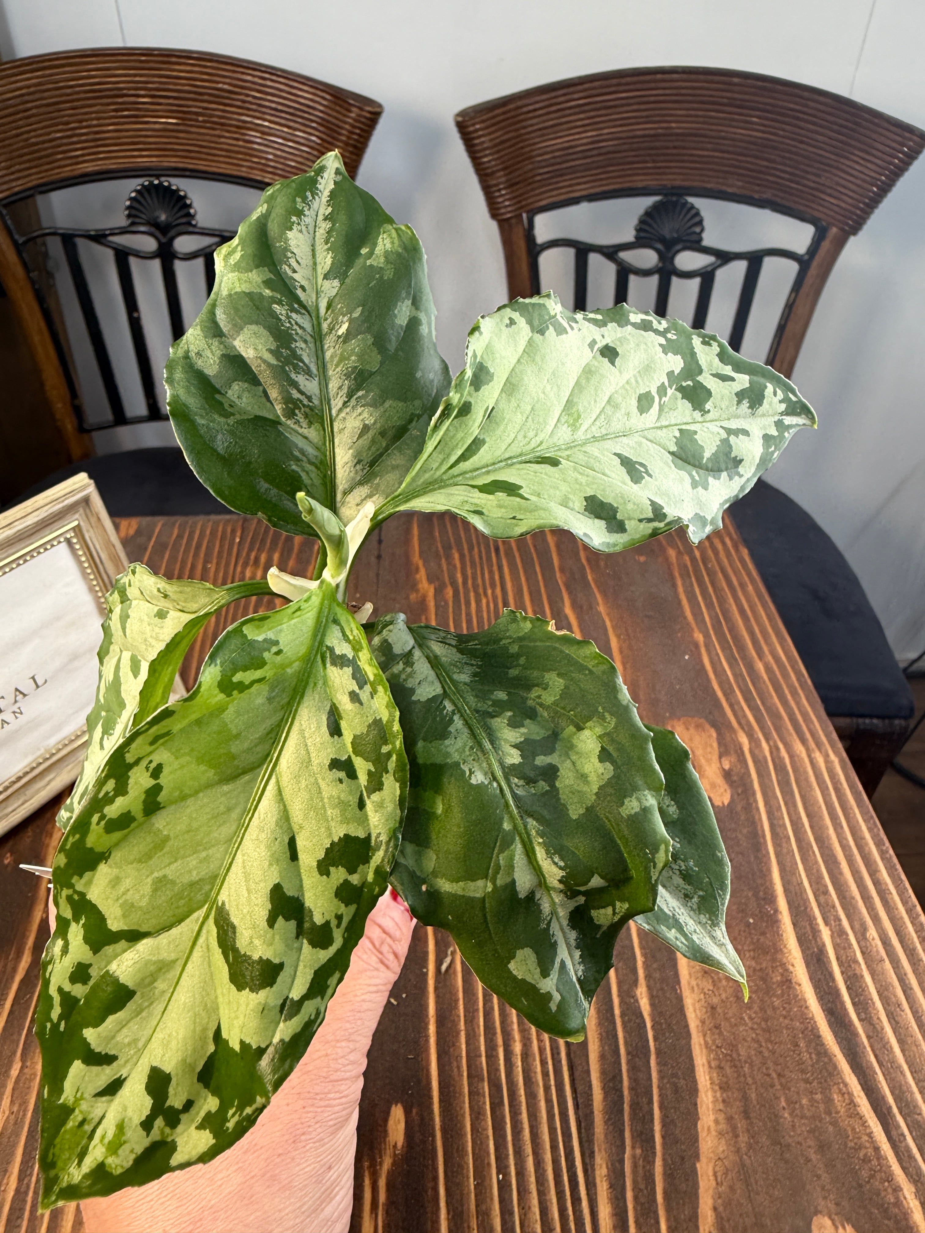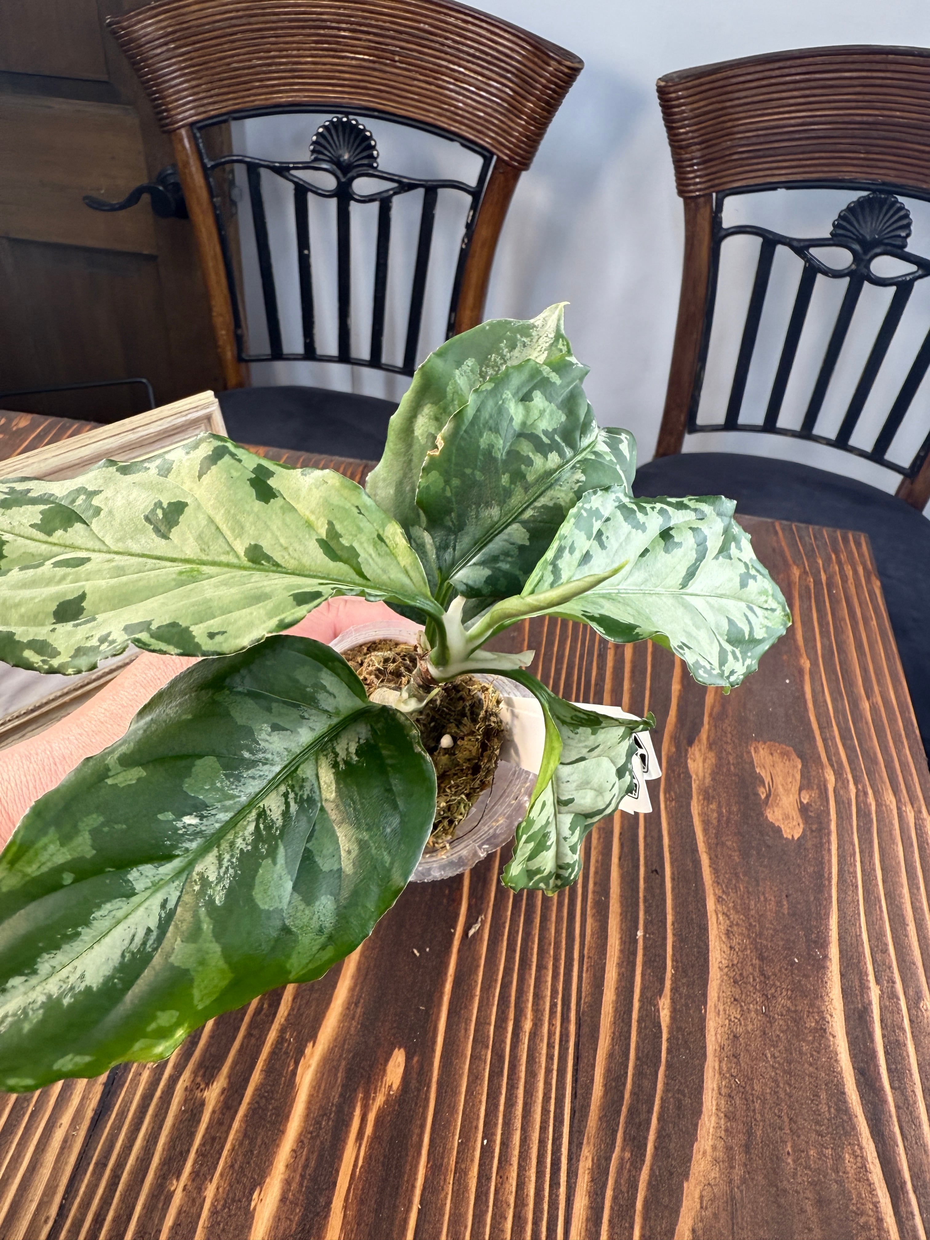苗の状態でお届けいたしますので、定期的な植え替えをお勧めします。葉に自然なダメージが見られることもありますが、これは成長過程の一部ですので、安心して楽しんでいただけます。十分な日光を取り入れ、愛情を込めて育てていただき、アグラオネマ ピクタムトリカラー ブラックの魅力を存分にお楽しみください。何か質問がある場合は、お気軽にご連絡ください。