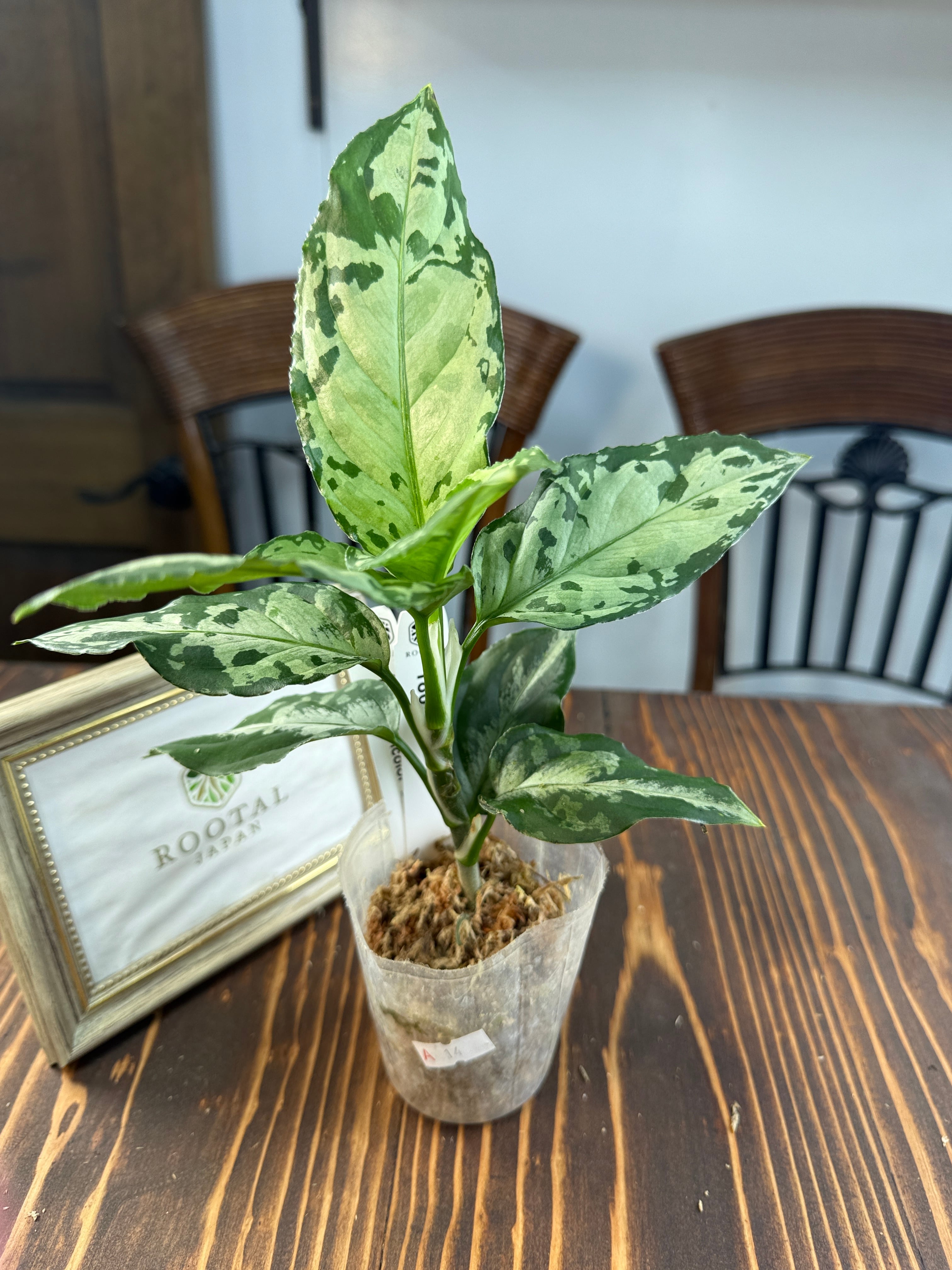 苗の状態でお届けいたしますので、定期的な植え替えをお勧めします。葉に自然なダメージが見られることもありますが、これは成長過程の一部ですので、安心して楽しんでいただけます。十分な日光を取り入れ、愛情を込めて育てていただき、アグラオネマ ピクタムトリカラー ブラックの魅力を存分にお楽しみください。何か質問がある場合は、お気軽にご連絡ください。