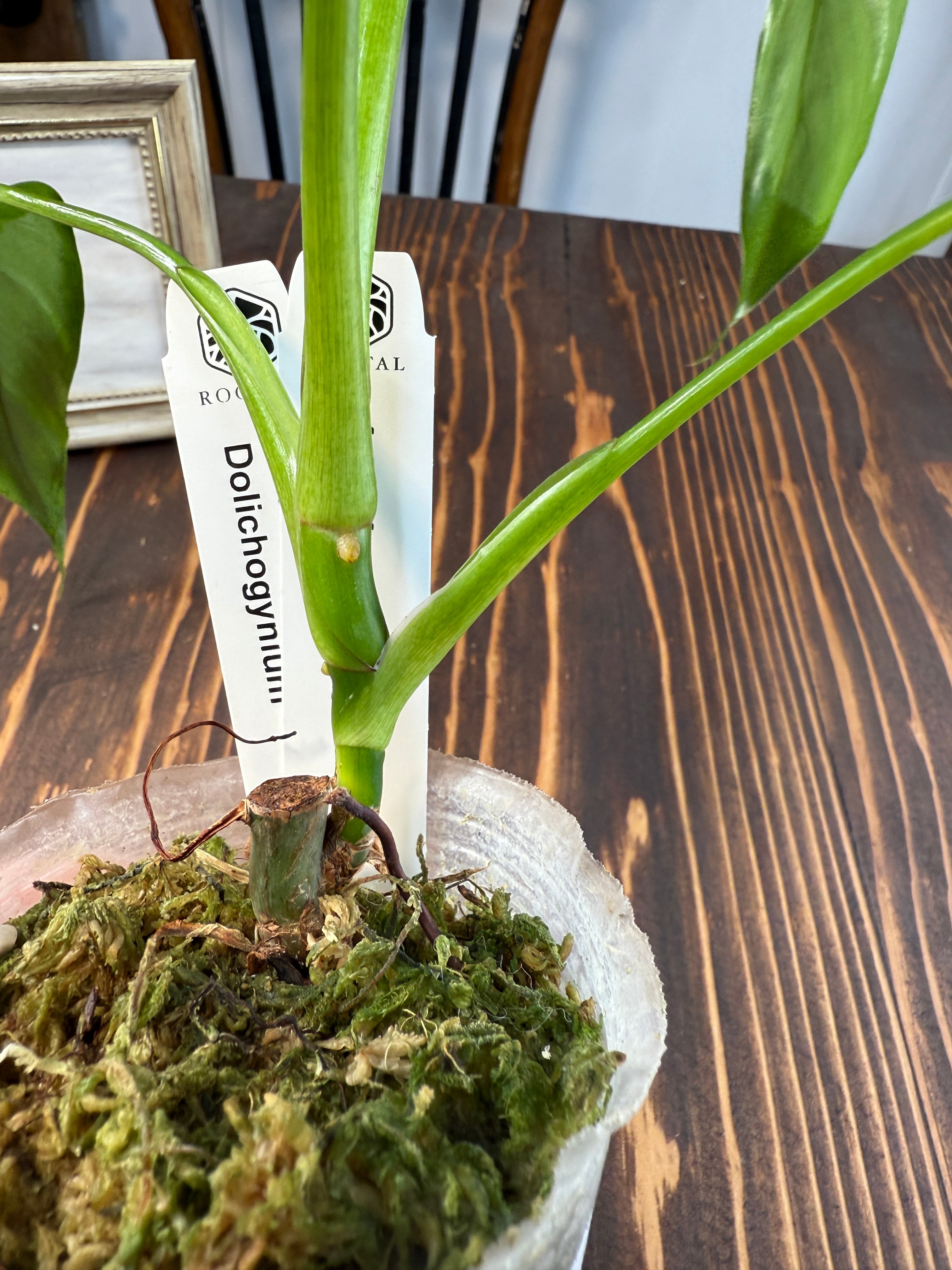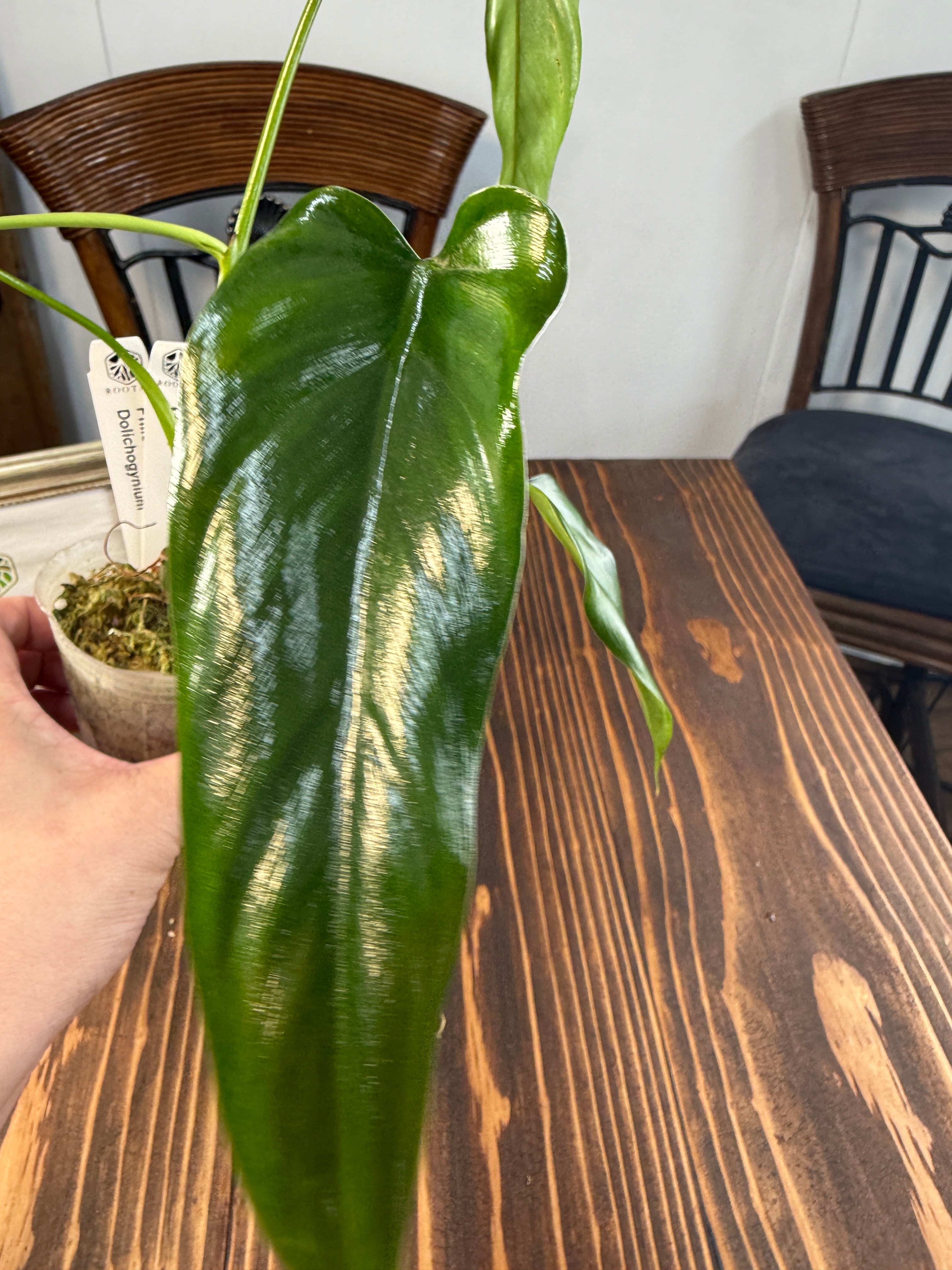 フィロデンドロン ドリコジニウムは、その美しい葉と独特のフォルムが特徴の観葉植物で、あなたのインテリアに華やかさを加えること間違いなしです!明るい間接光を浴びながら育てることで、健康的な緑色と艶を保ち、空間をリフレッシュしてくれる存在となるでしょう。