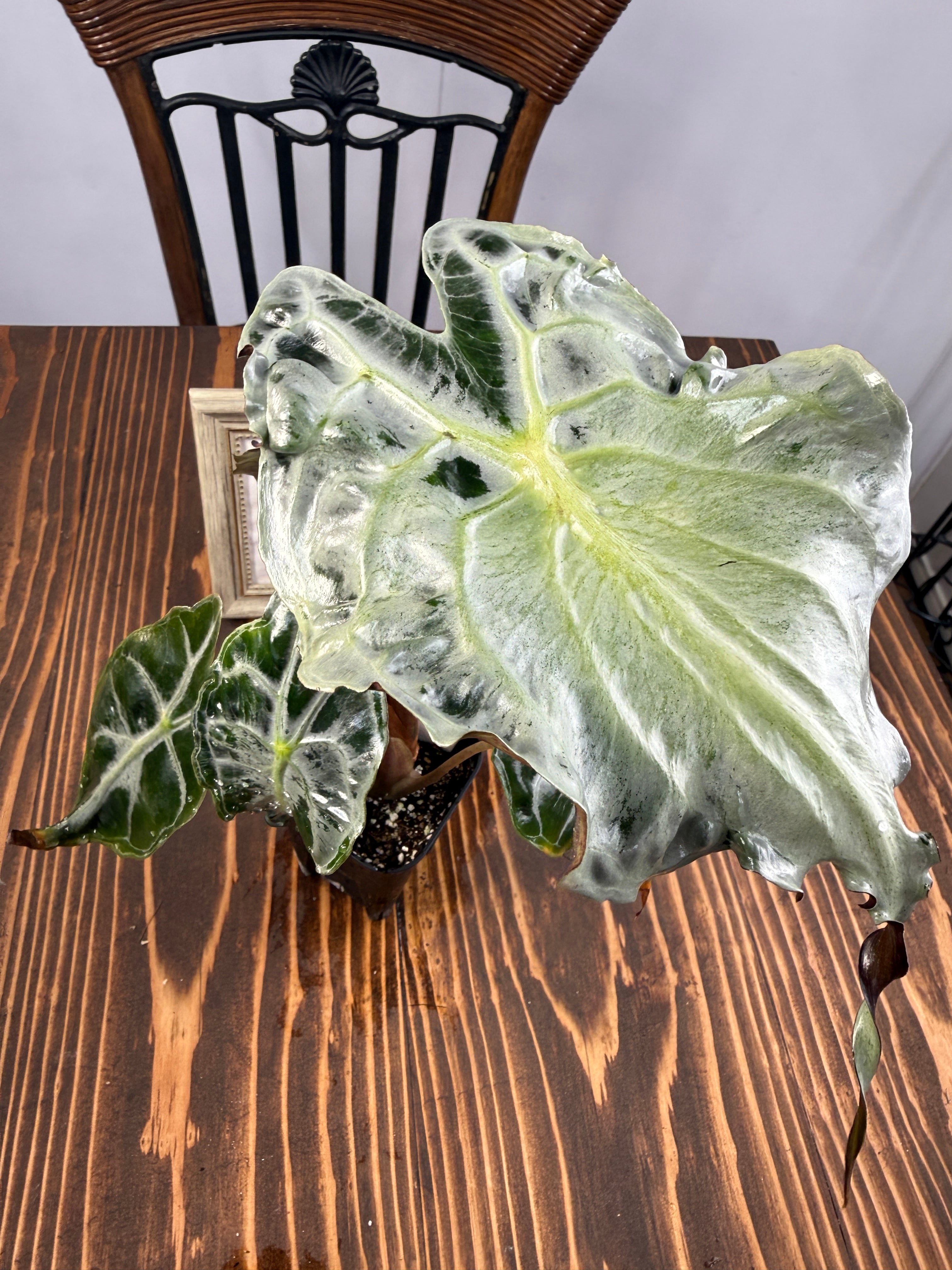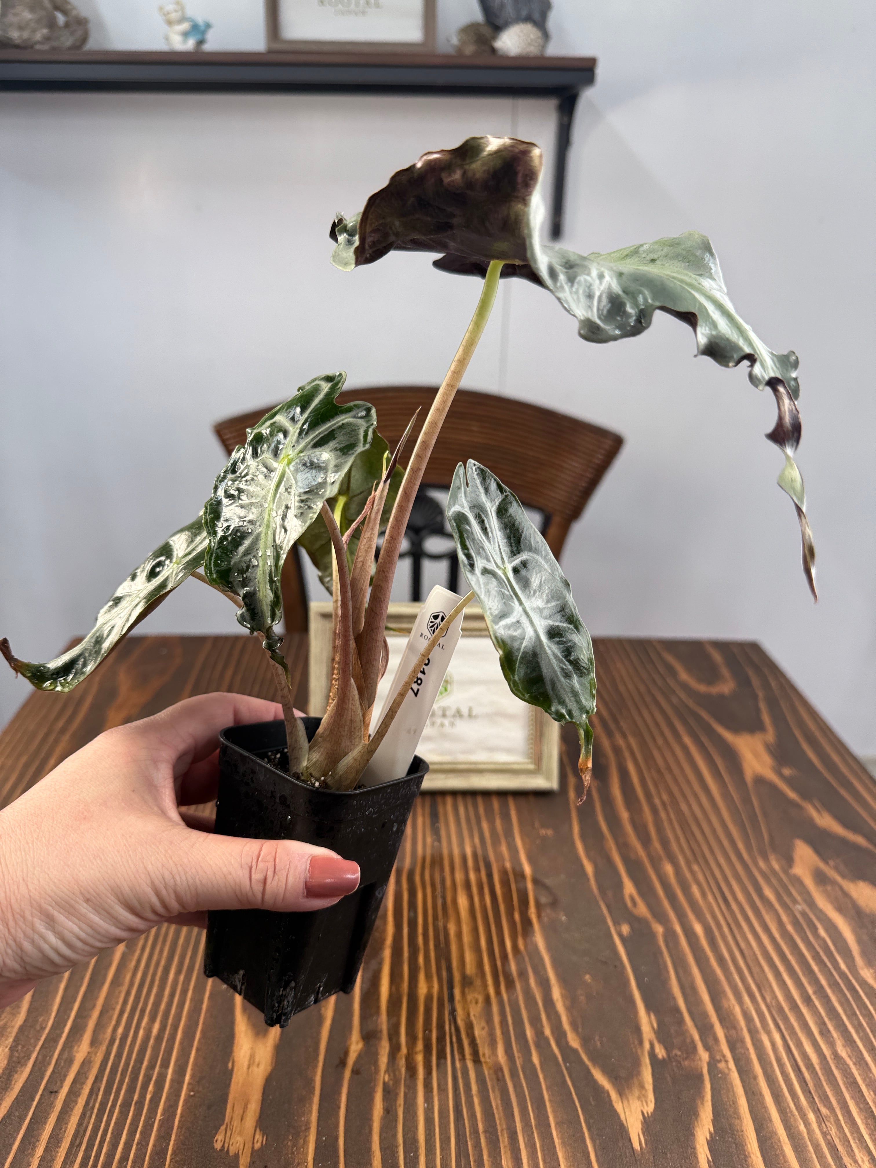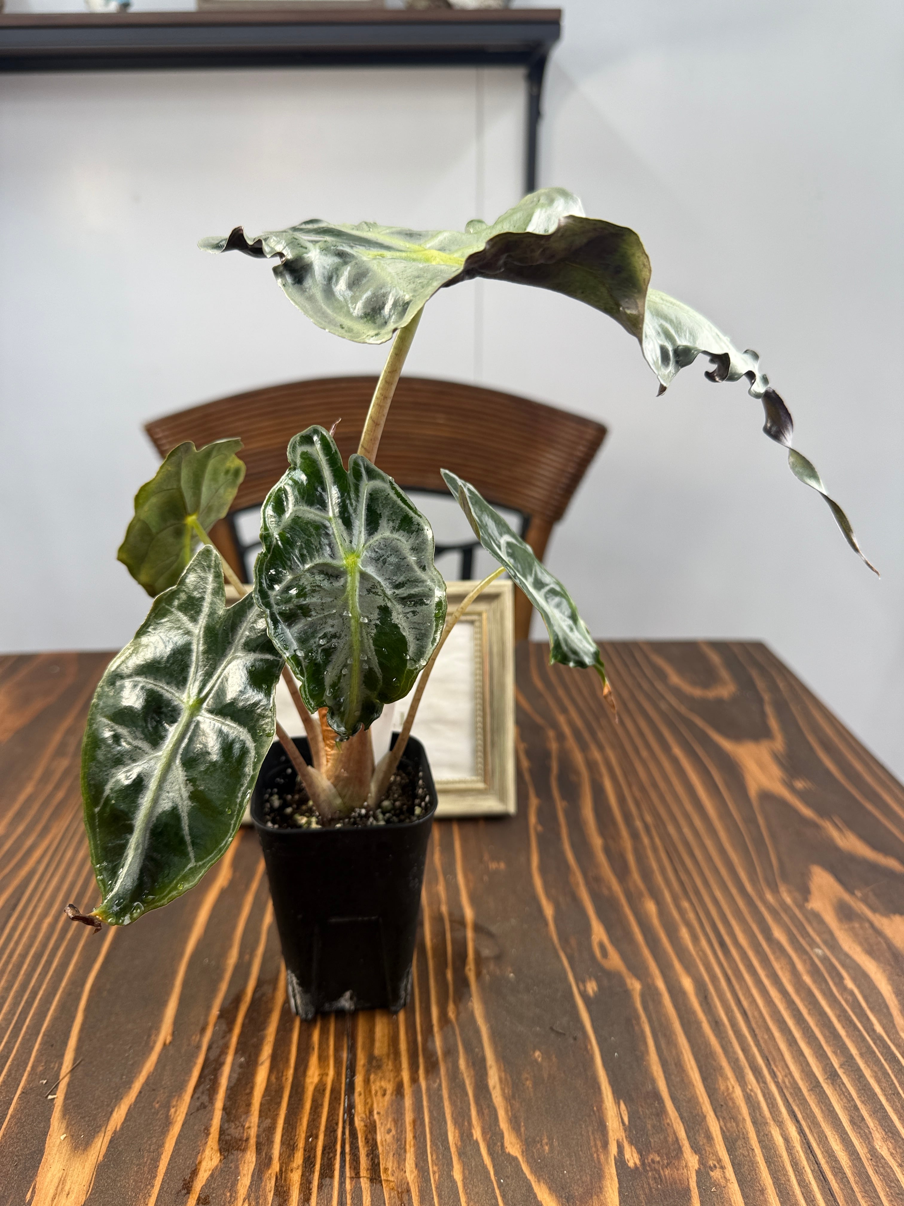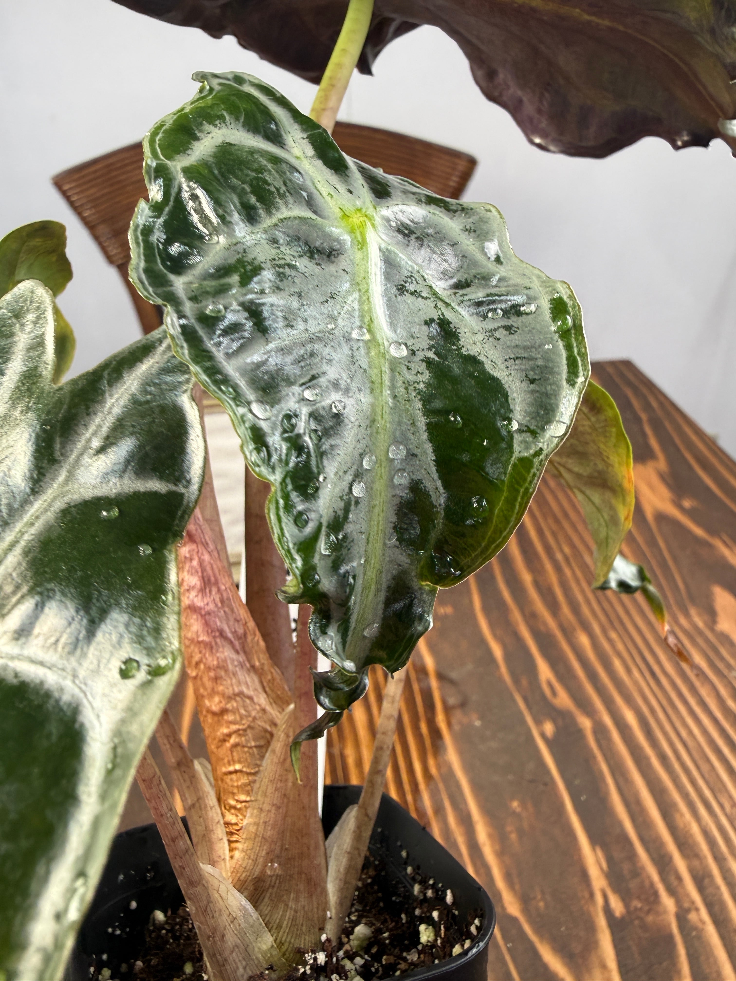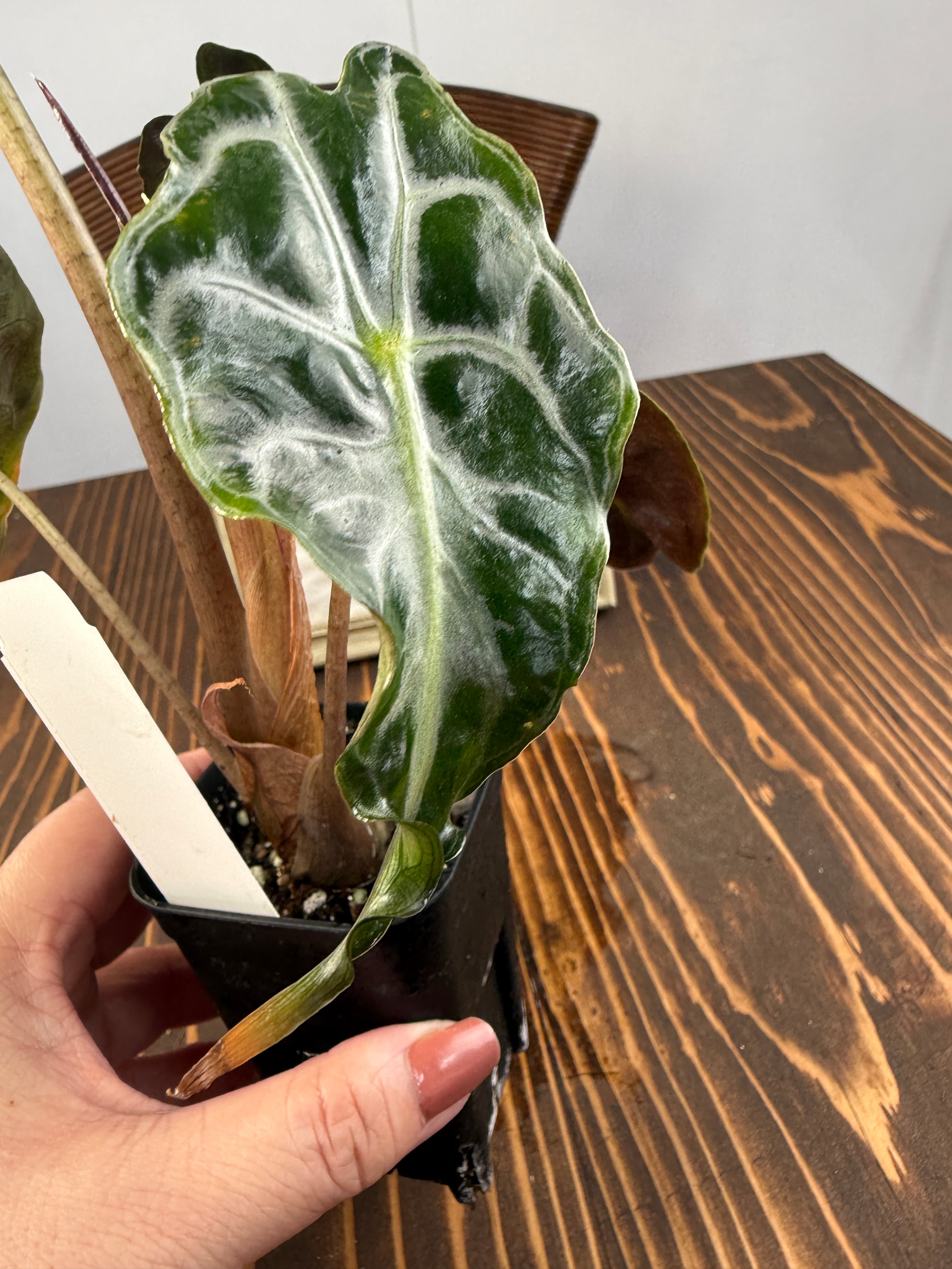 アロカシア ヴェノムは、そのユニークな葉の形状と美しい色彩が特徴の観葉植物です。この希少種は、お部屋に特別なアクセントを与え、見る人を魅了する存在です!明るい間接光で育てると、その美しさがさらに引き立ち、インテリアに華やかな雰囲気を添えます。