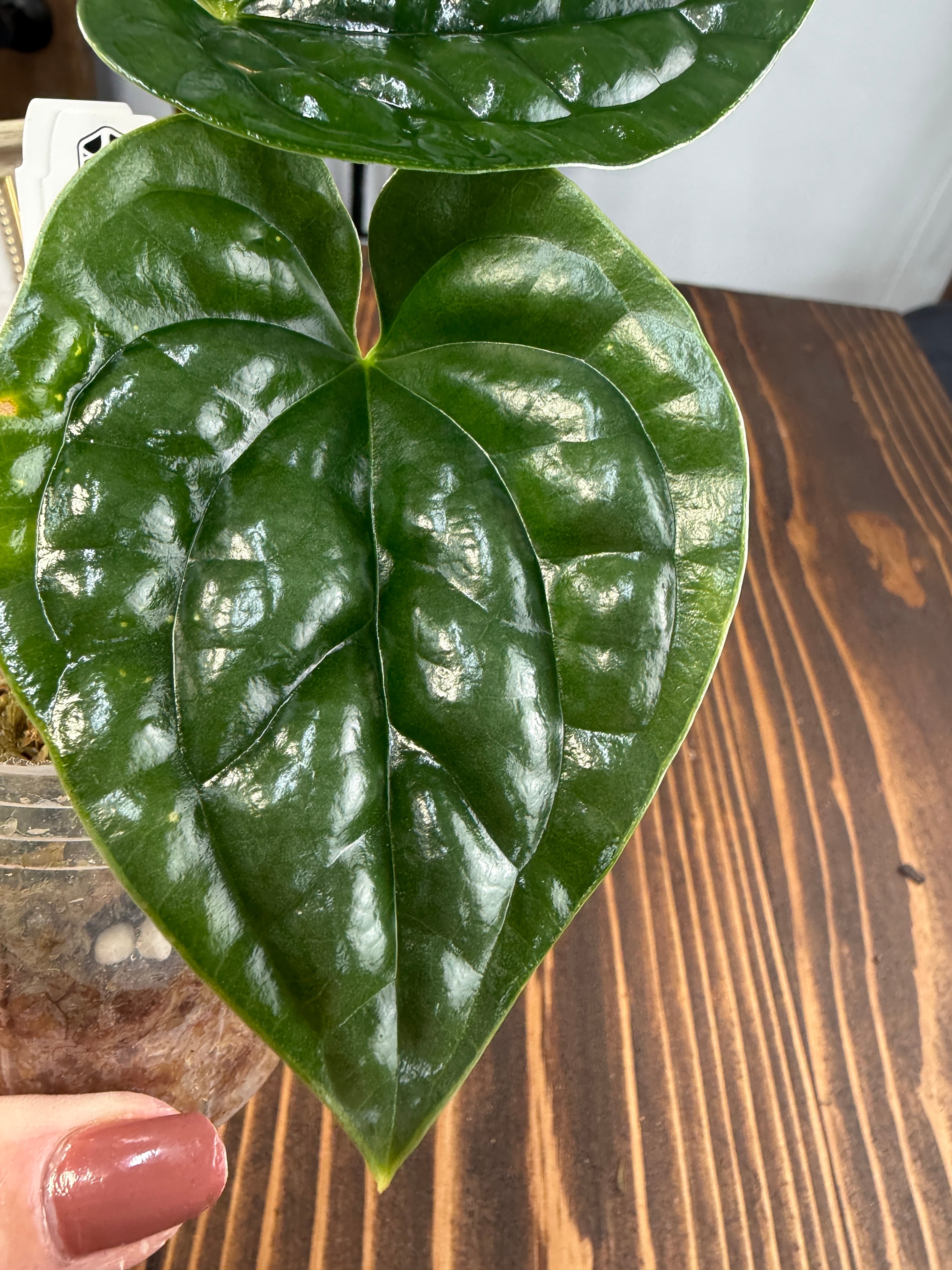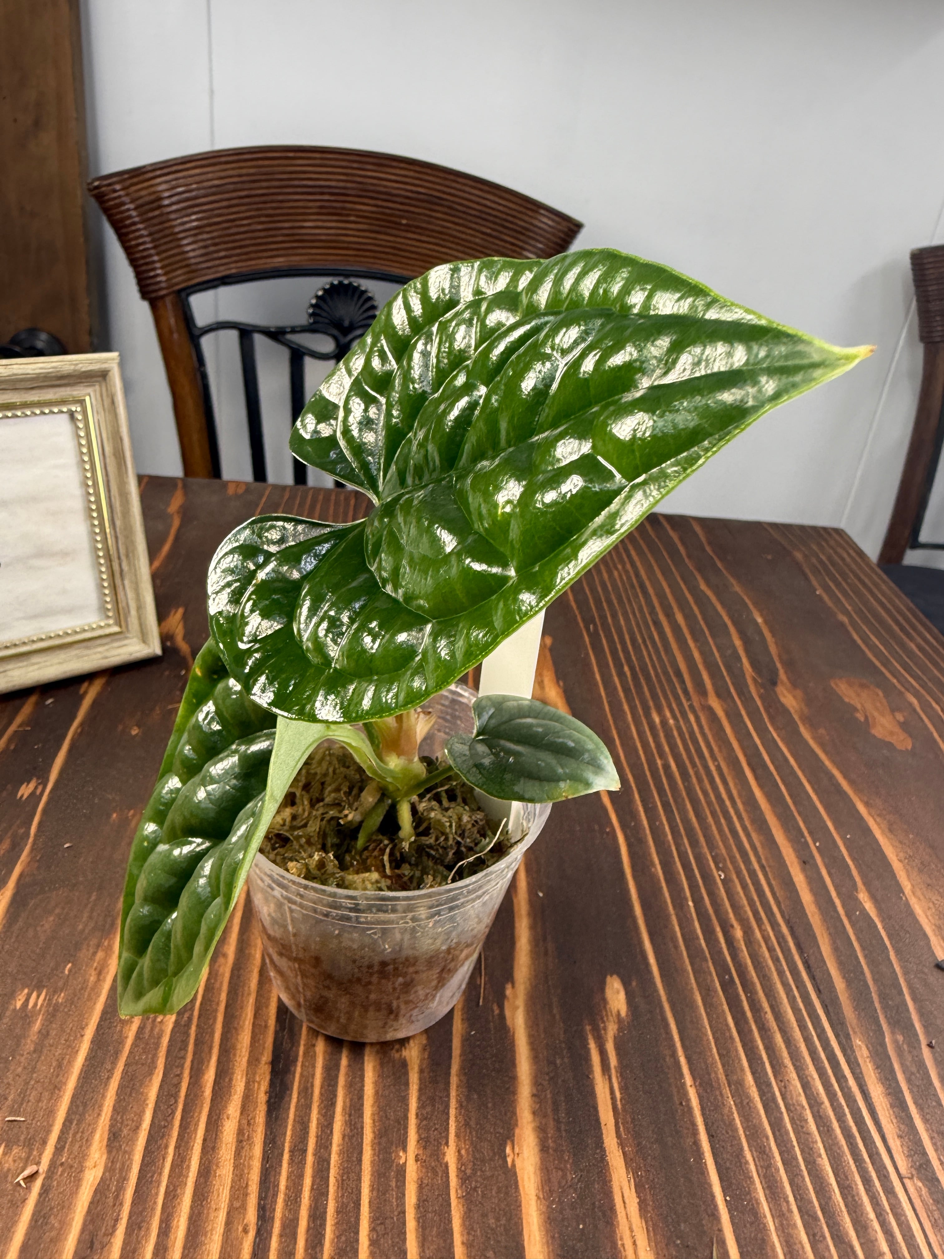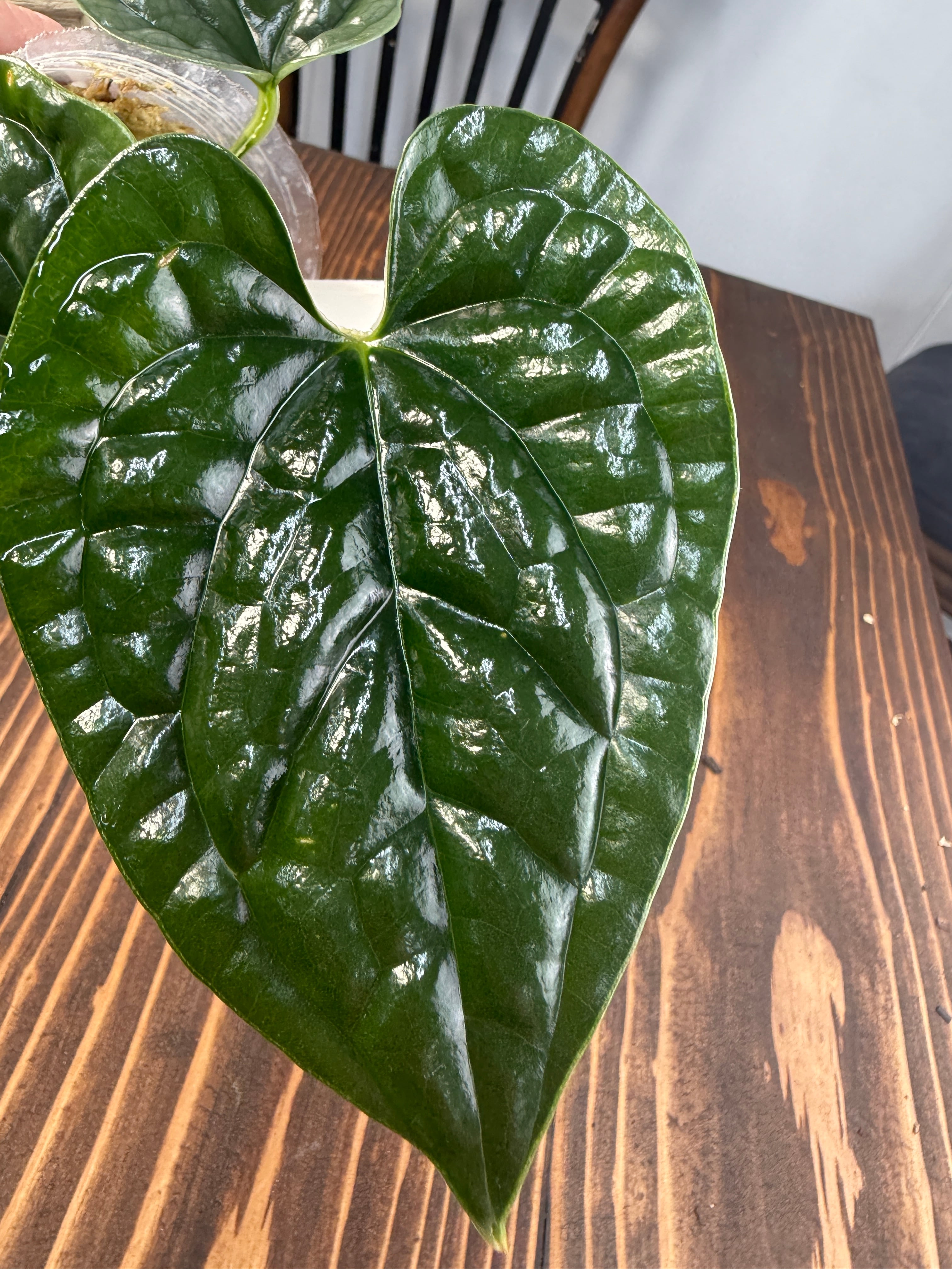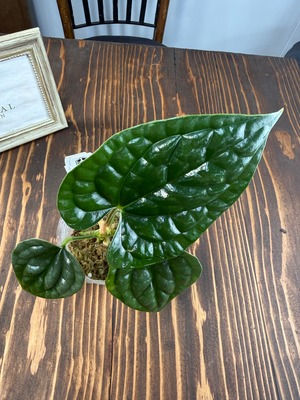 アンスリウム ルクスリアンスは、光沢のある美しい葉と特徴的な葉脈により、インテリアに優雅さを添える逸品です。深い緑色の葉が、どの部屋にも鮮やかなアクセントを与えることでしょう。定期的に手入れをすることで、より見栄えのする育ち方を楽しめる植物です!