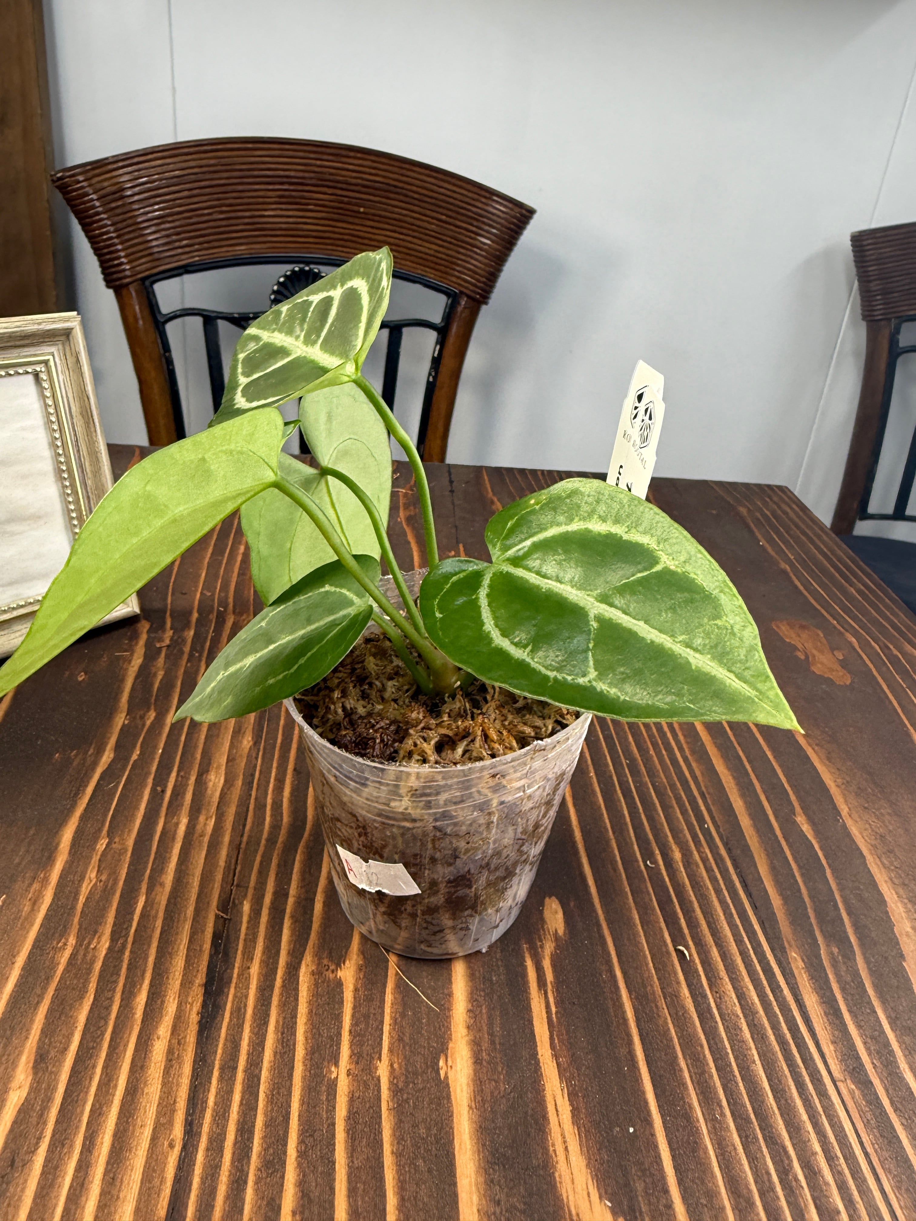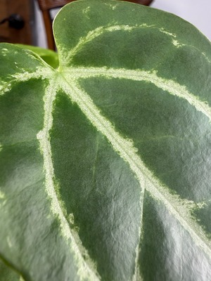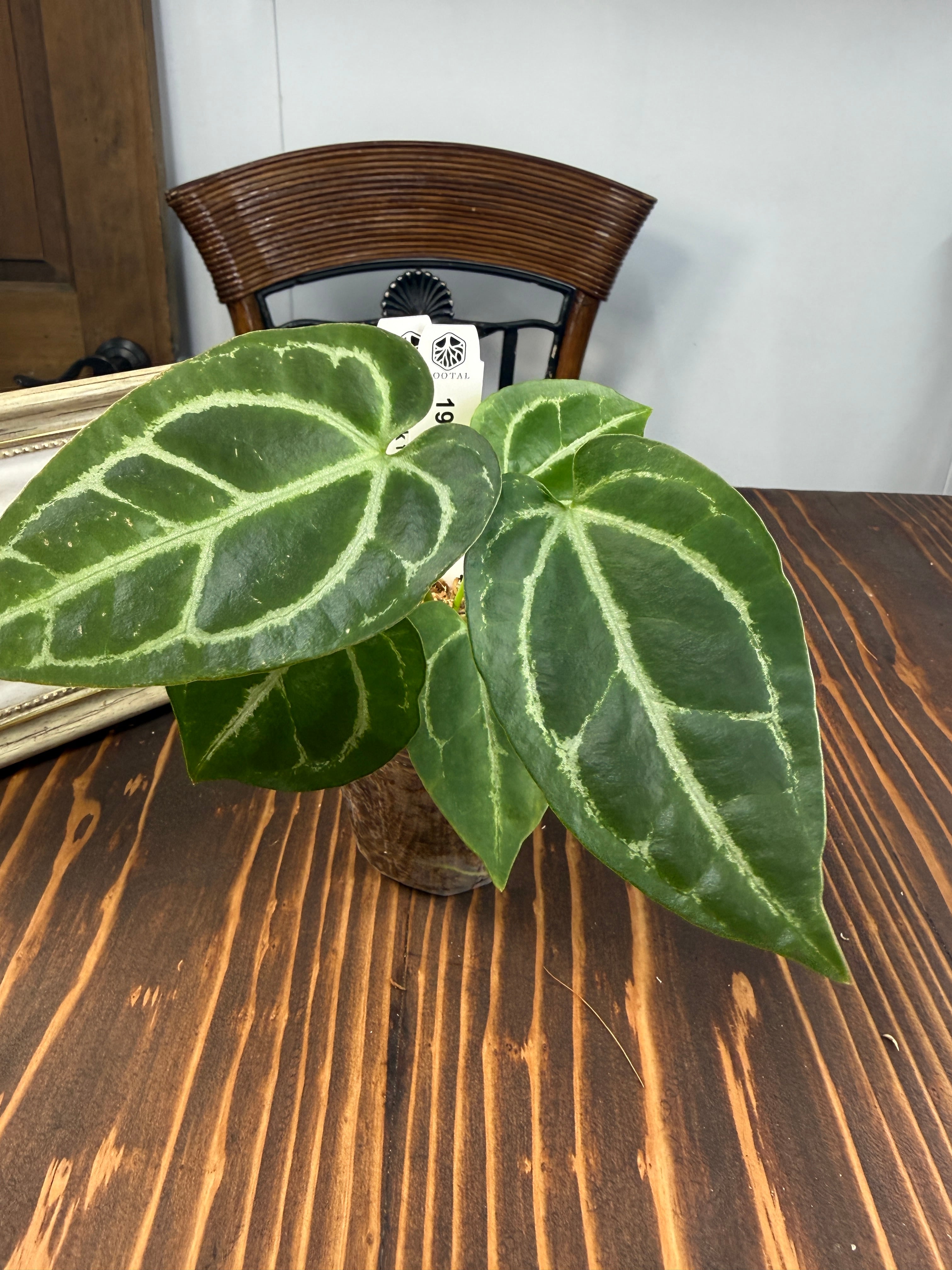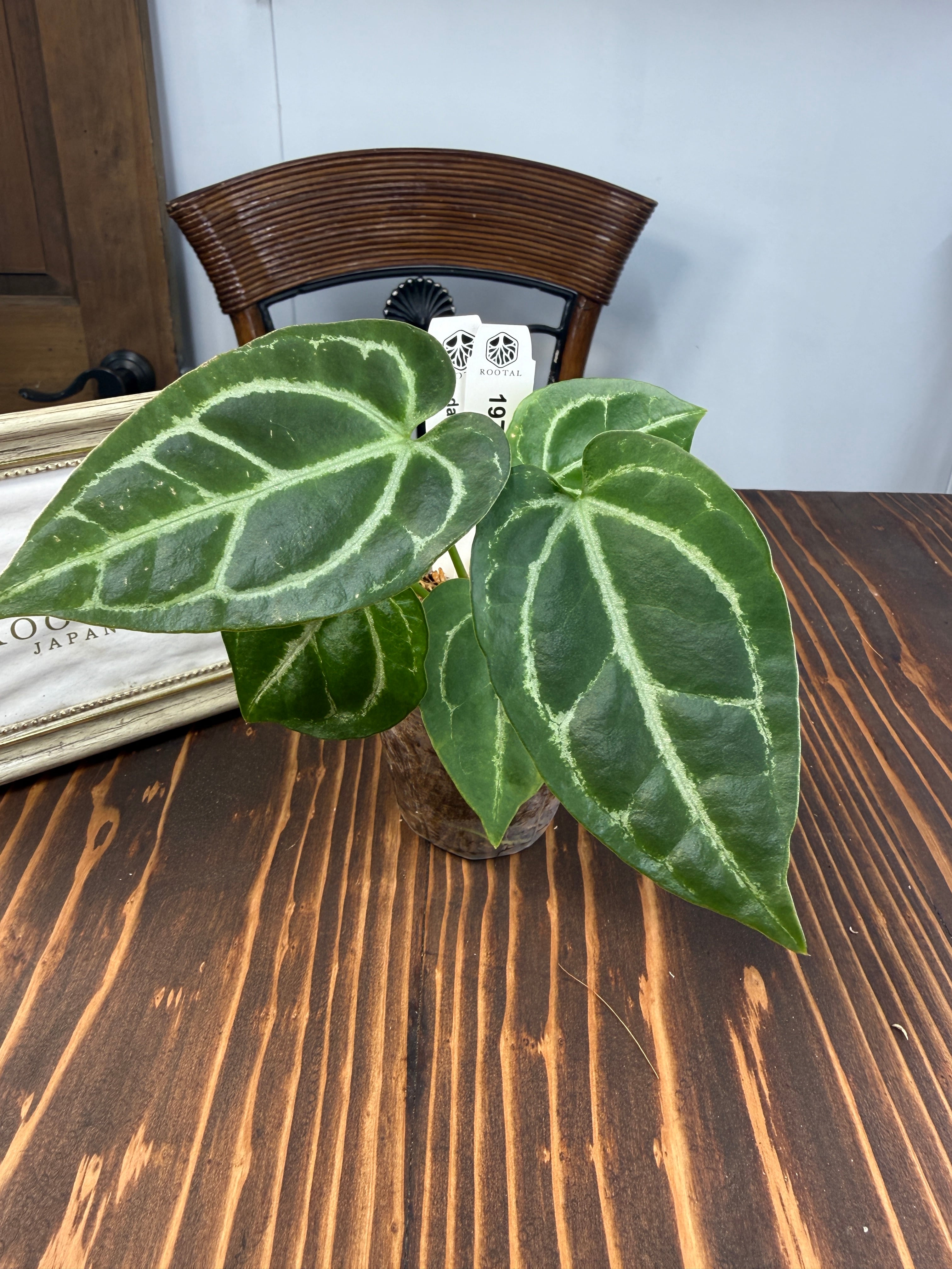 アンスリウム クリスタリナムダークフォームは、深い黒緑の葉と見事な葉脈が特徴で、どんなインテリアにも洗練された雰囲気をもたらします。見るほどにその美しさに引き込まれることでしょう。手入れを行うことで、より一層その魅力が引き立ち、成長を楽しむことができる植物です!