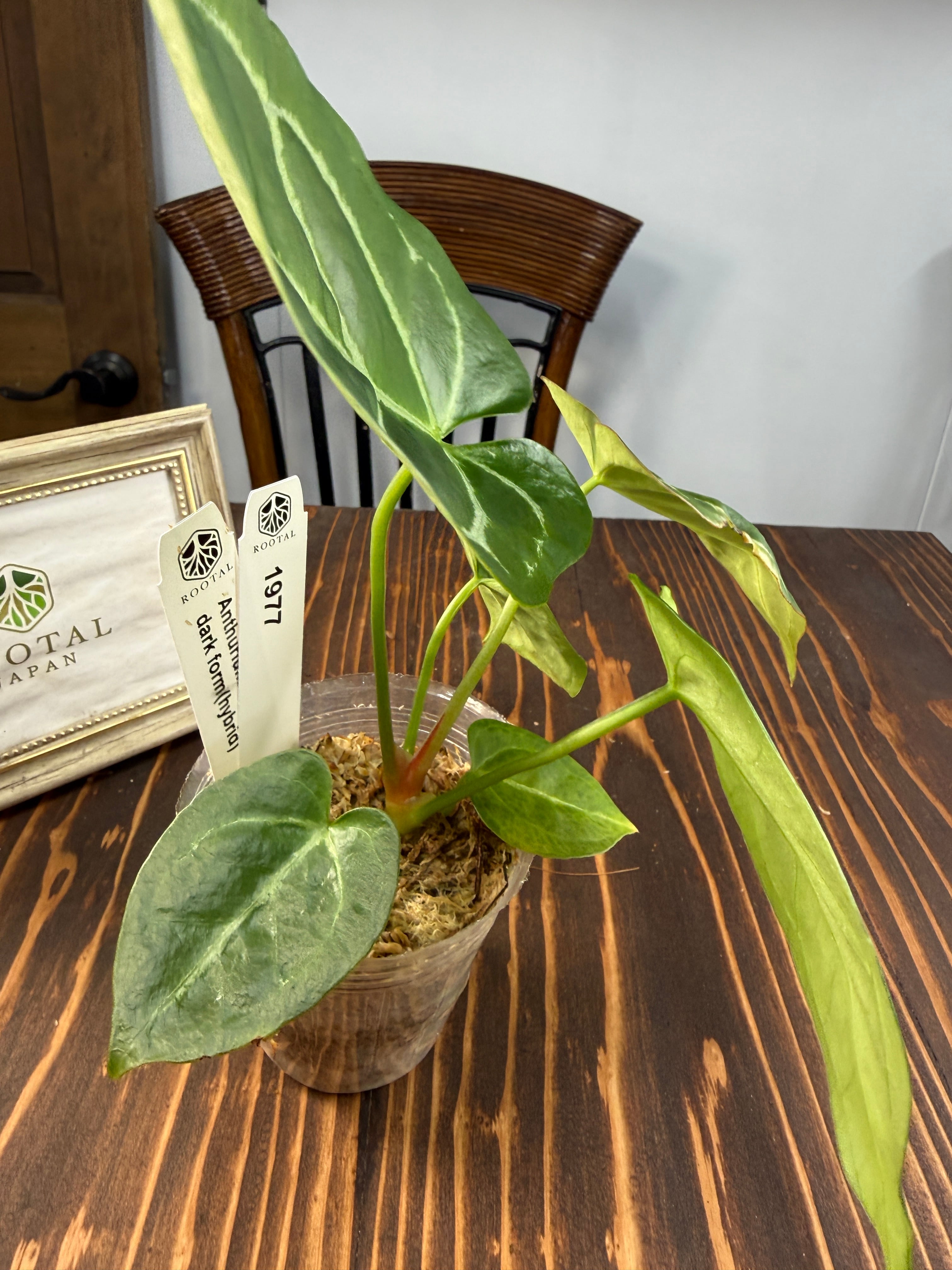 アンスリウム クリスタリナムダークフォームの出荷時の背丈は約15㎝程度です。育成することで、葉の形やサイズの変化を楽しむことができ、あなたの空間に個性的なアクセントを加えてくれます。お部屋の他の家具や植物とも見事に調和し、スタイリッシュなインテリアづくりが可能です。