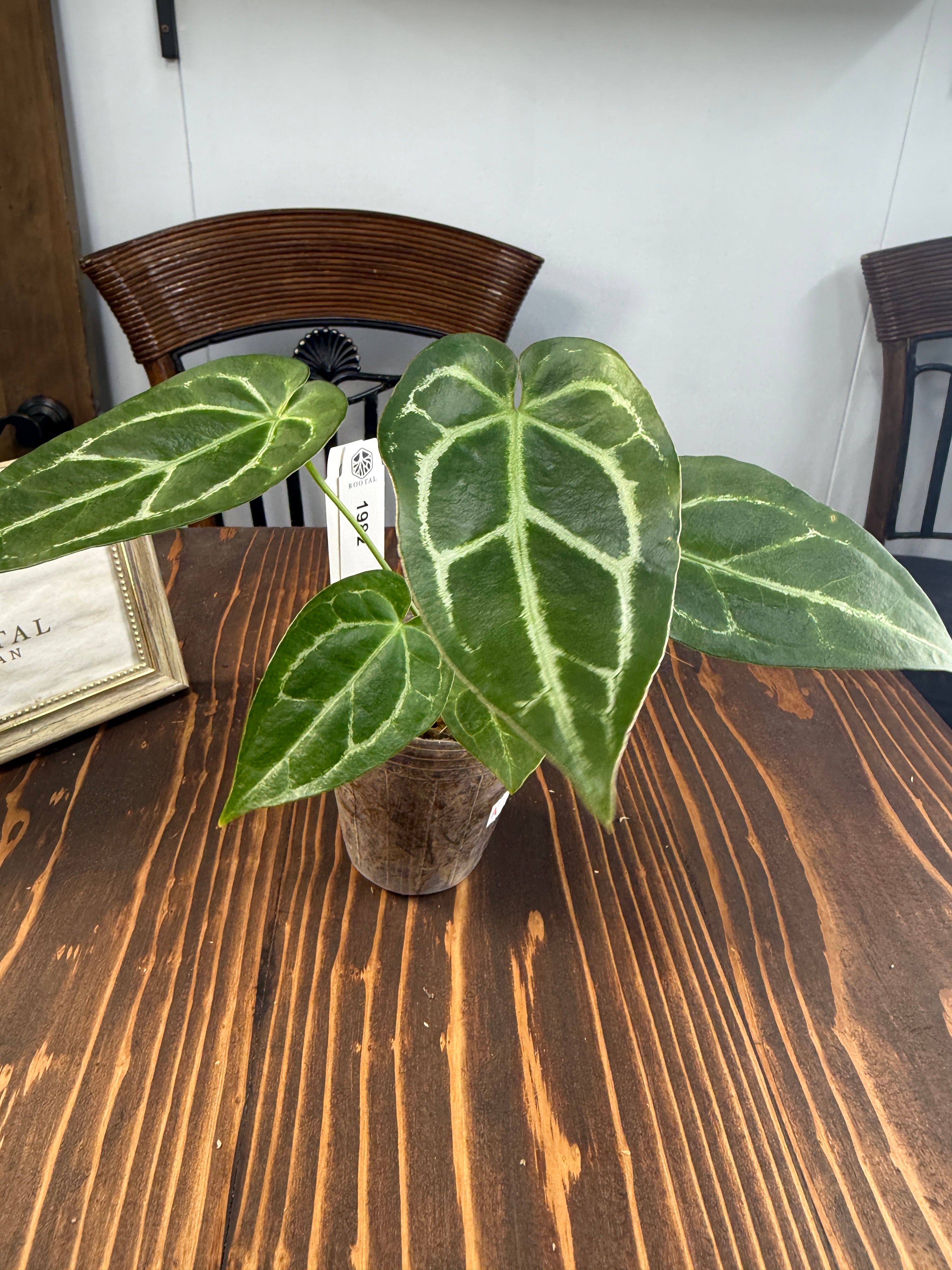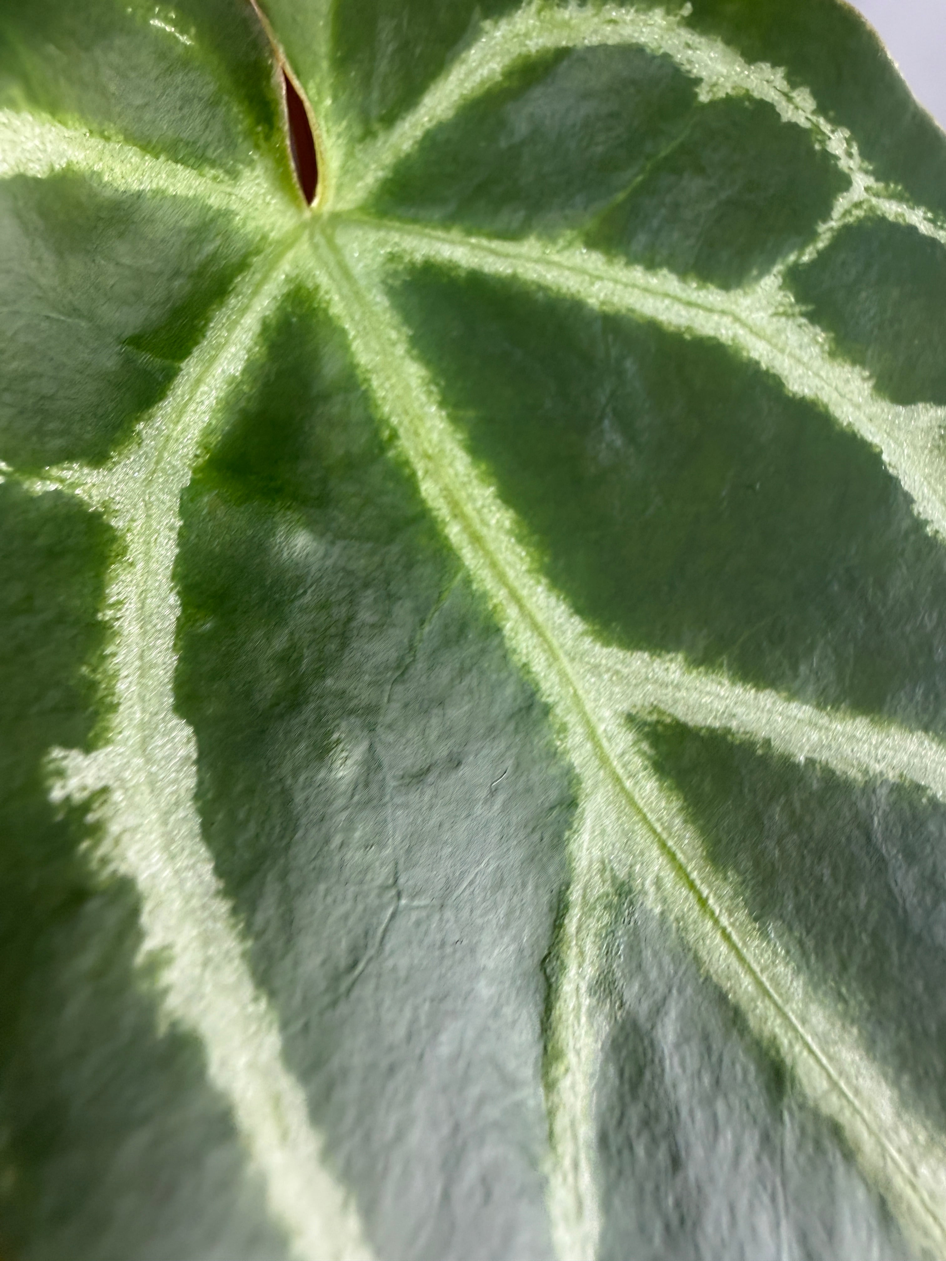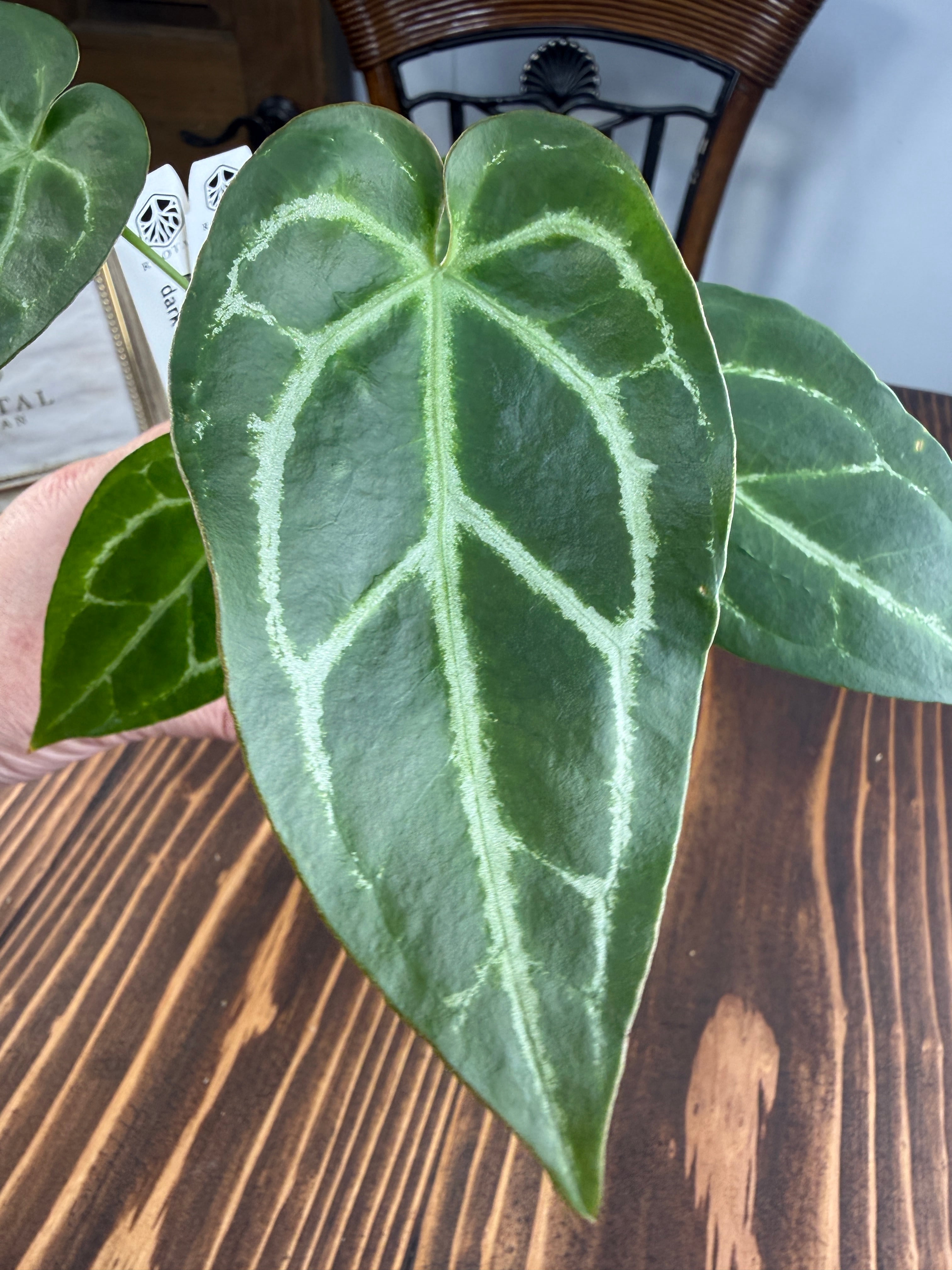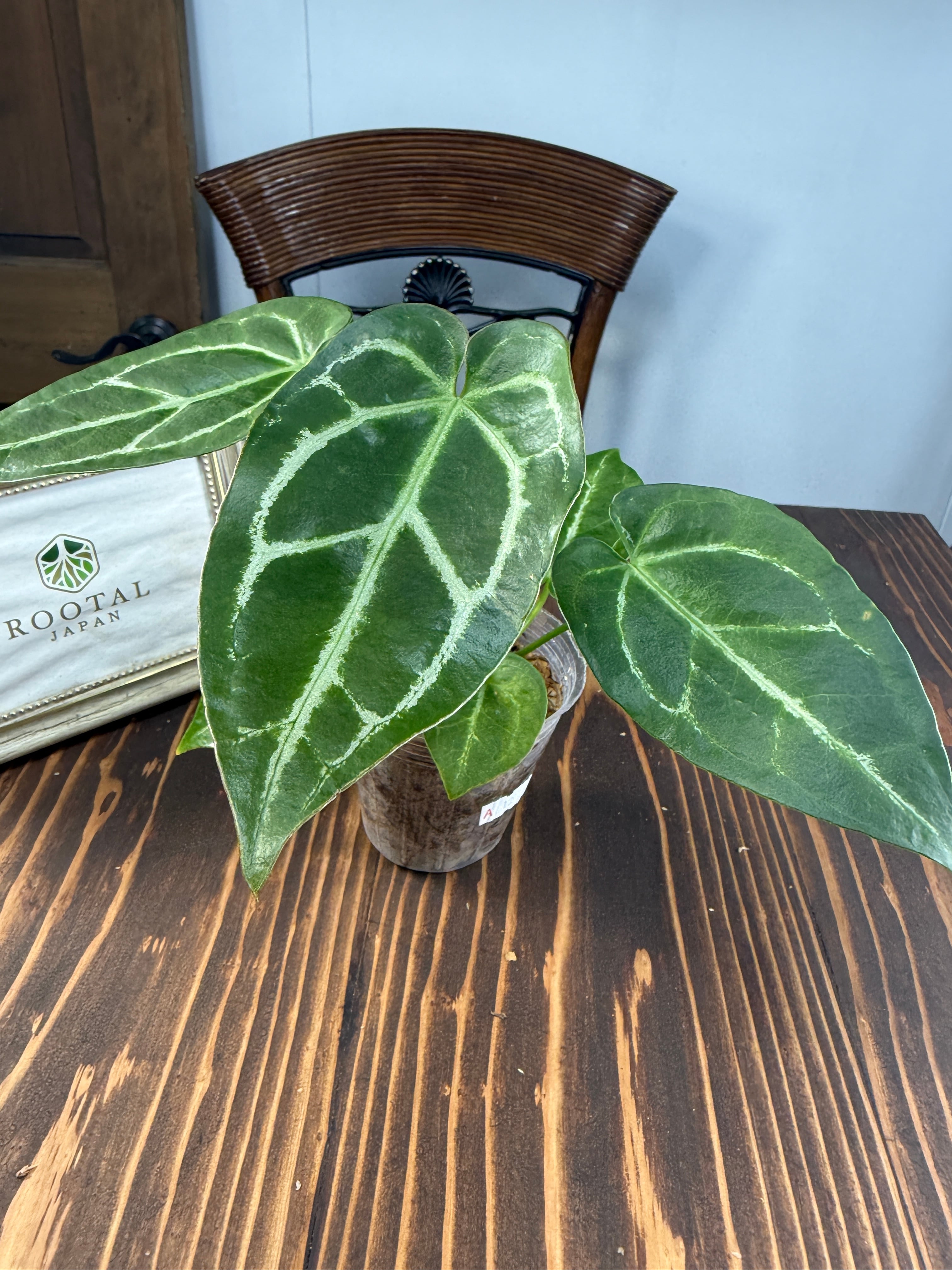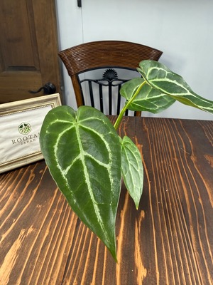 アンスリウム クリスタリナムダークフォームは、深い黒緑の葉と見事な葉脈が特徴で、どんなインテリアにも洗練された雰囲気をもたらします。見るほどにその美しさに引き込まれることでしょう。手入れを行うことで、より一層その魅力が引き立ち、成長を楽しむことができる植物です!