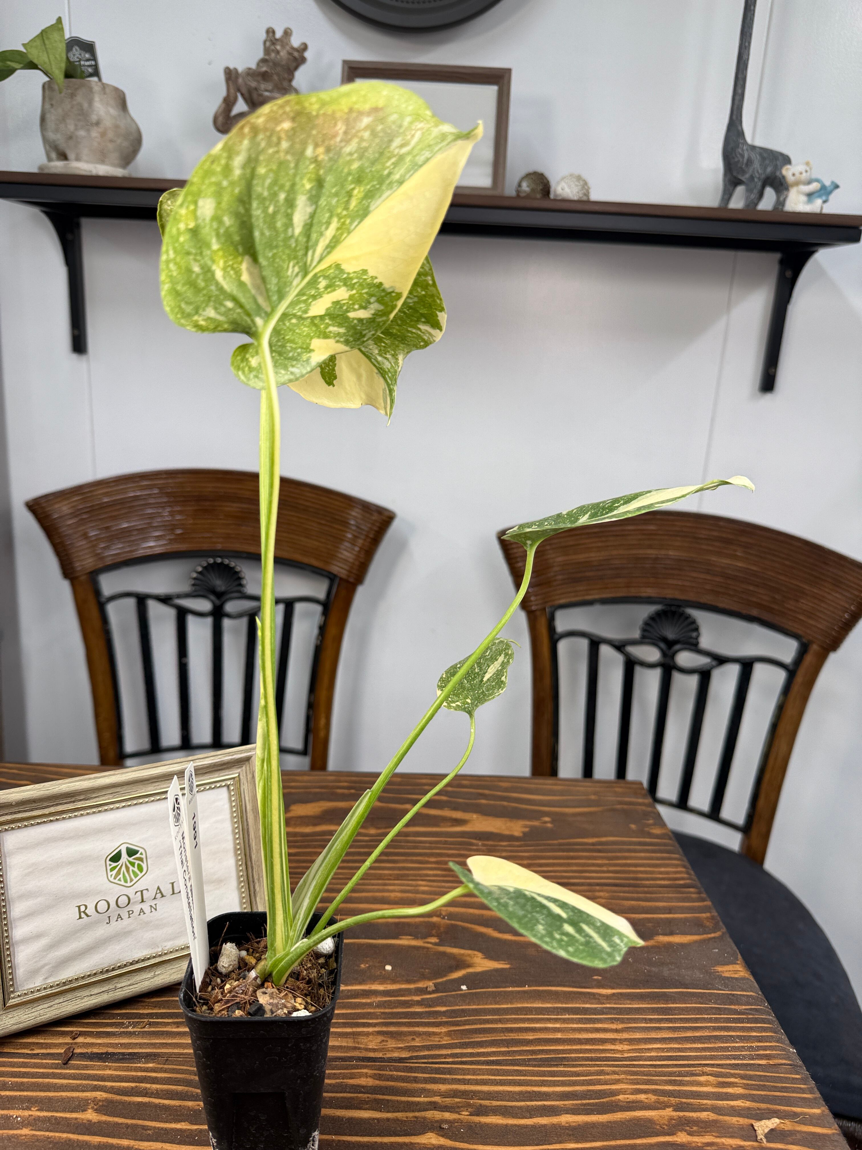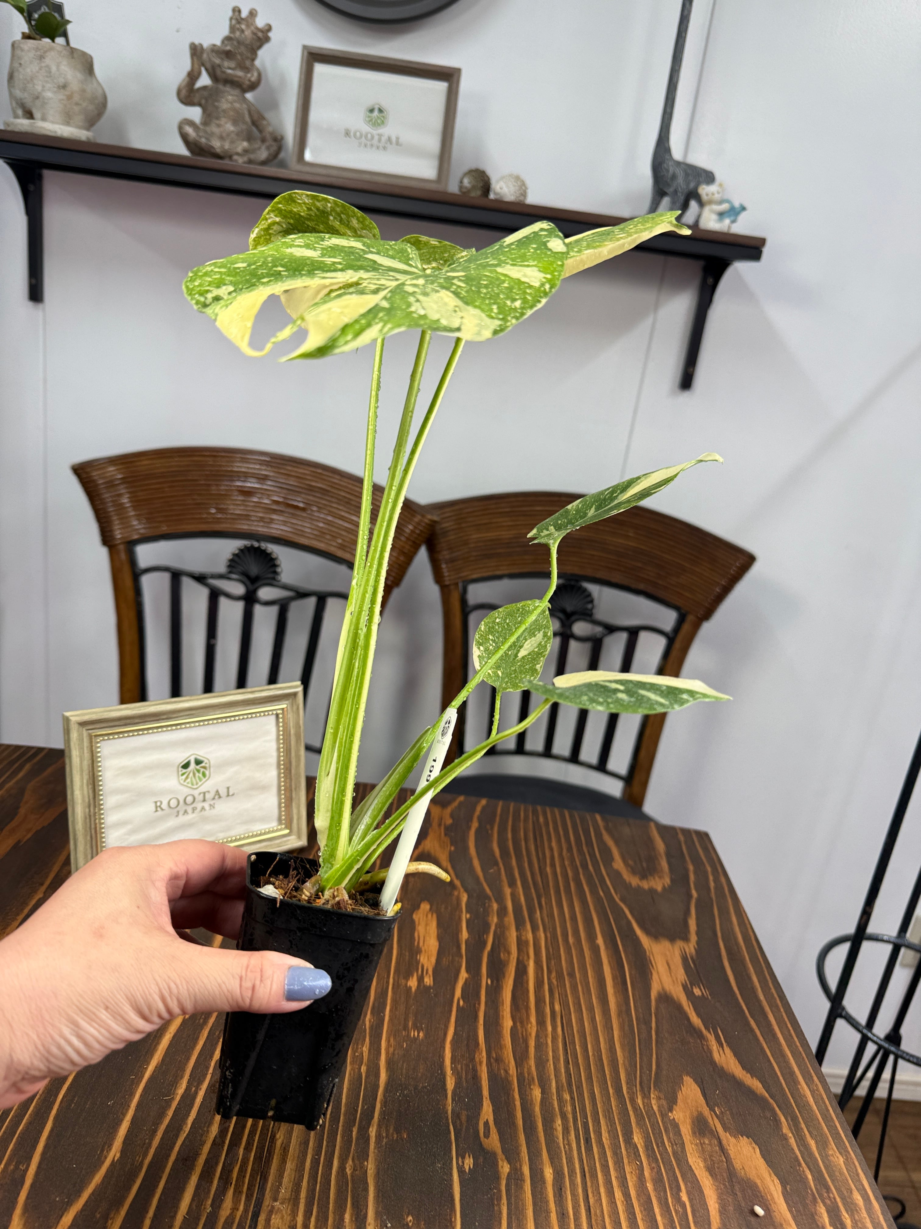 魅力的なバリエガータのかわいいベビー苗!モンステラ デリシオーサ タイコンステレーションは、その美しい斑入り模様と可愛らしいサイズ感が魅力の観葉植物です。インテリアにグリーンをプラスするだけでなく、心を癒してくれる一品です。手軽に育てられるので、初心者の方にもおすすめです。