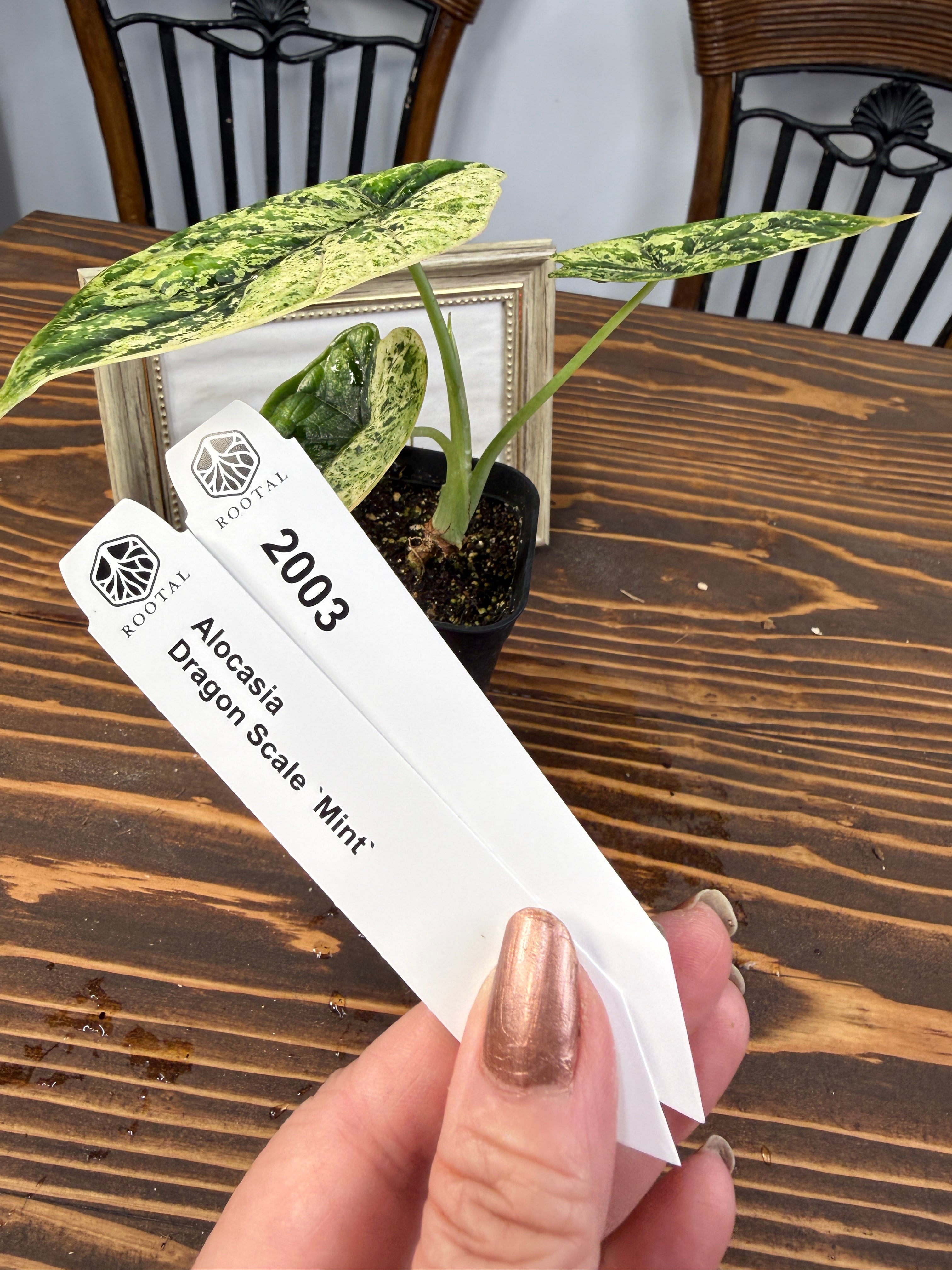 ★2003【奥行きを纏う葉】アロカシア ドラゴンスケール ミント(2.5号ロング硬質ポット)