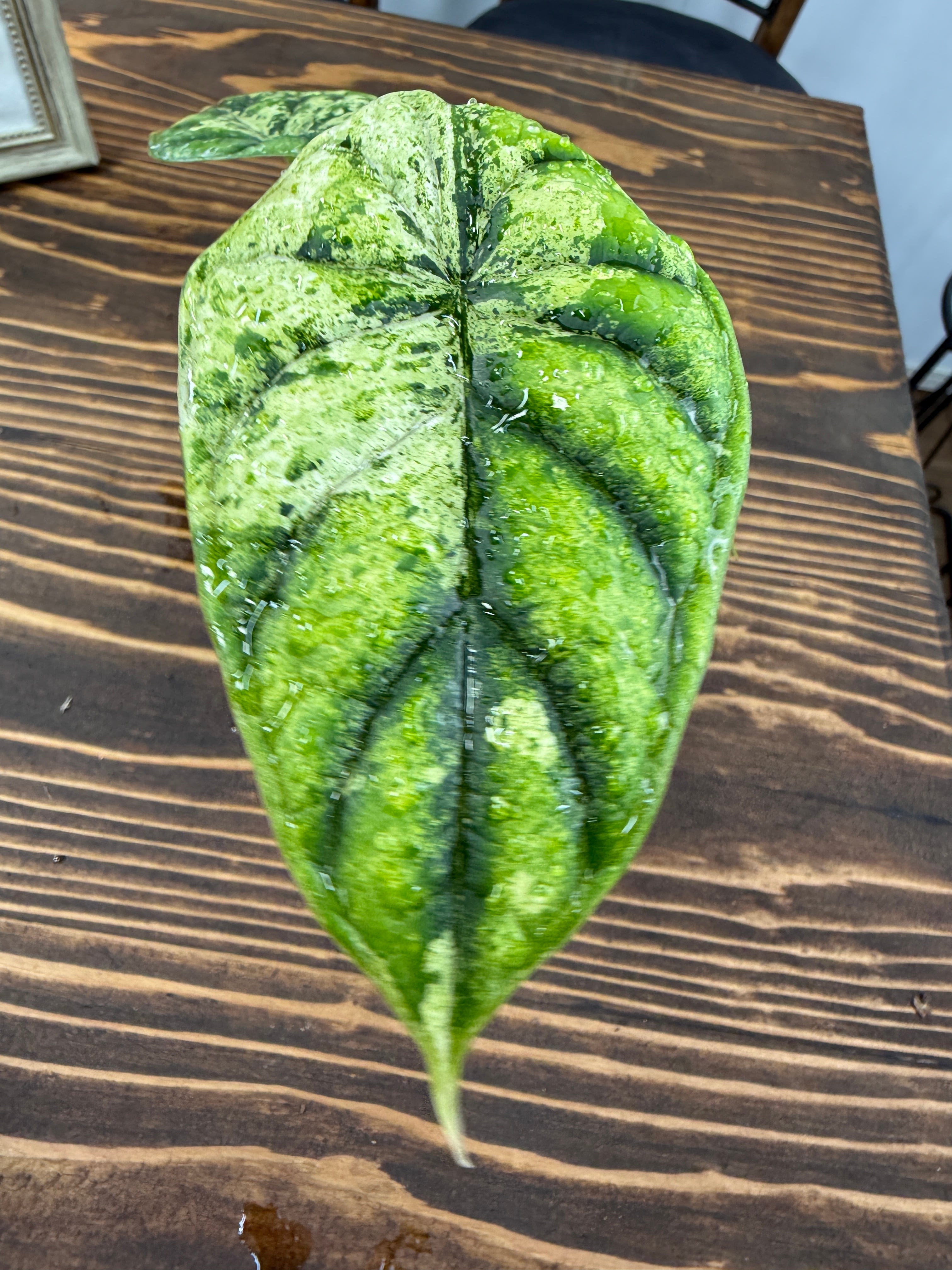 美しく独特な葉模様が印象的なアロカシア ドラゴンスケール ミント!その神秘的なドラゴンスケール模様は、インテリアに華やかさを添えると共に、心を癒す植物としての力を持っています。初心者の方でも育てやすいため、お部屋にグリーンを取り入れてみてはいかがでしょうか?
