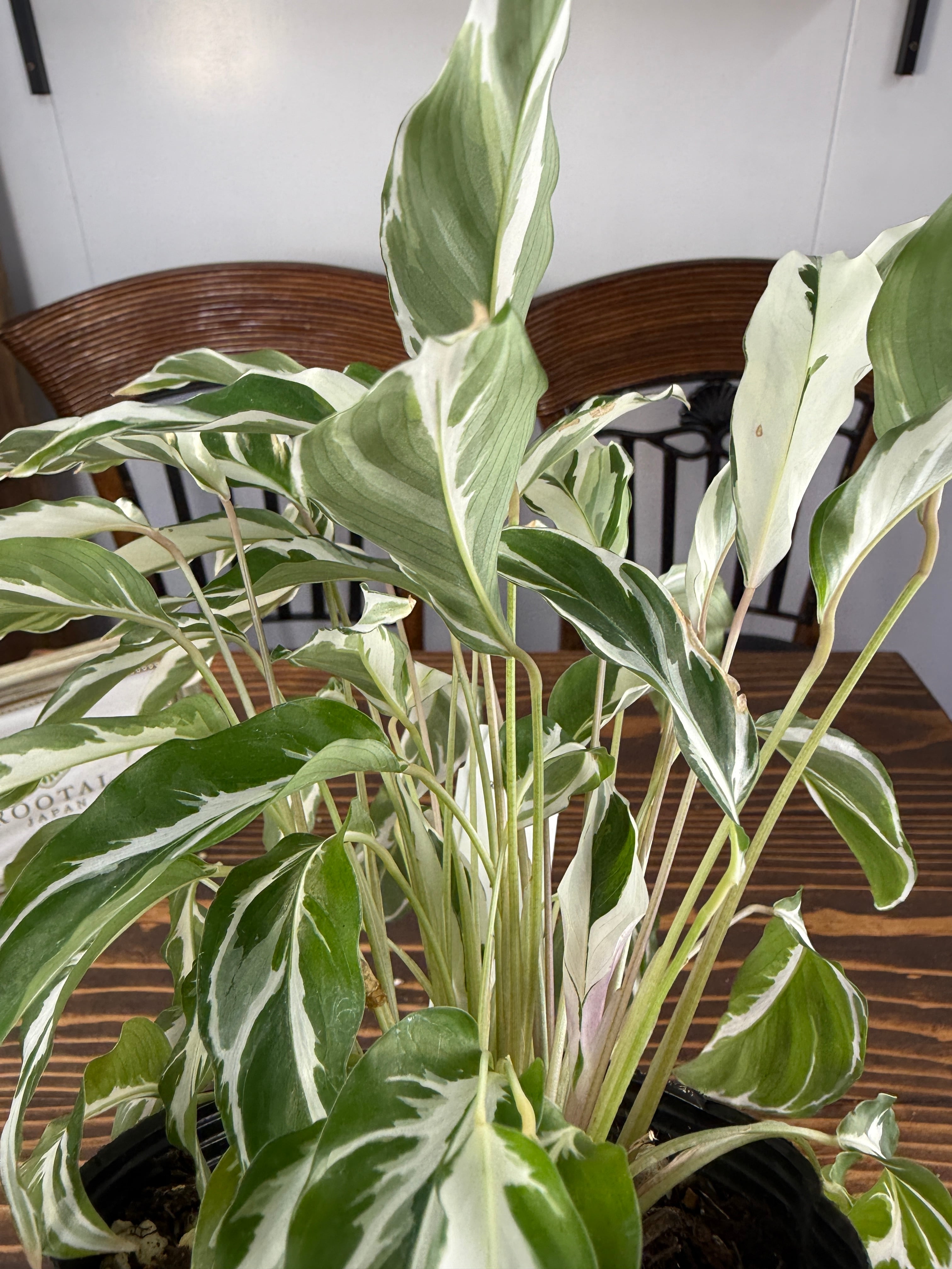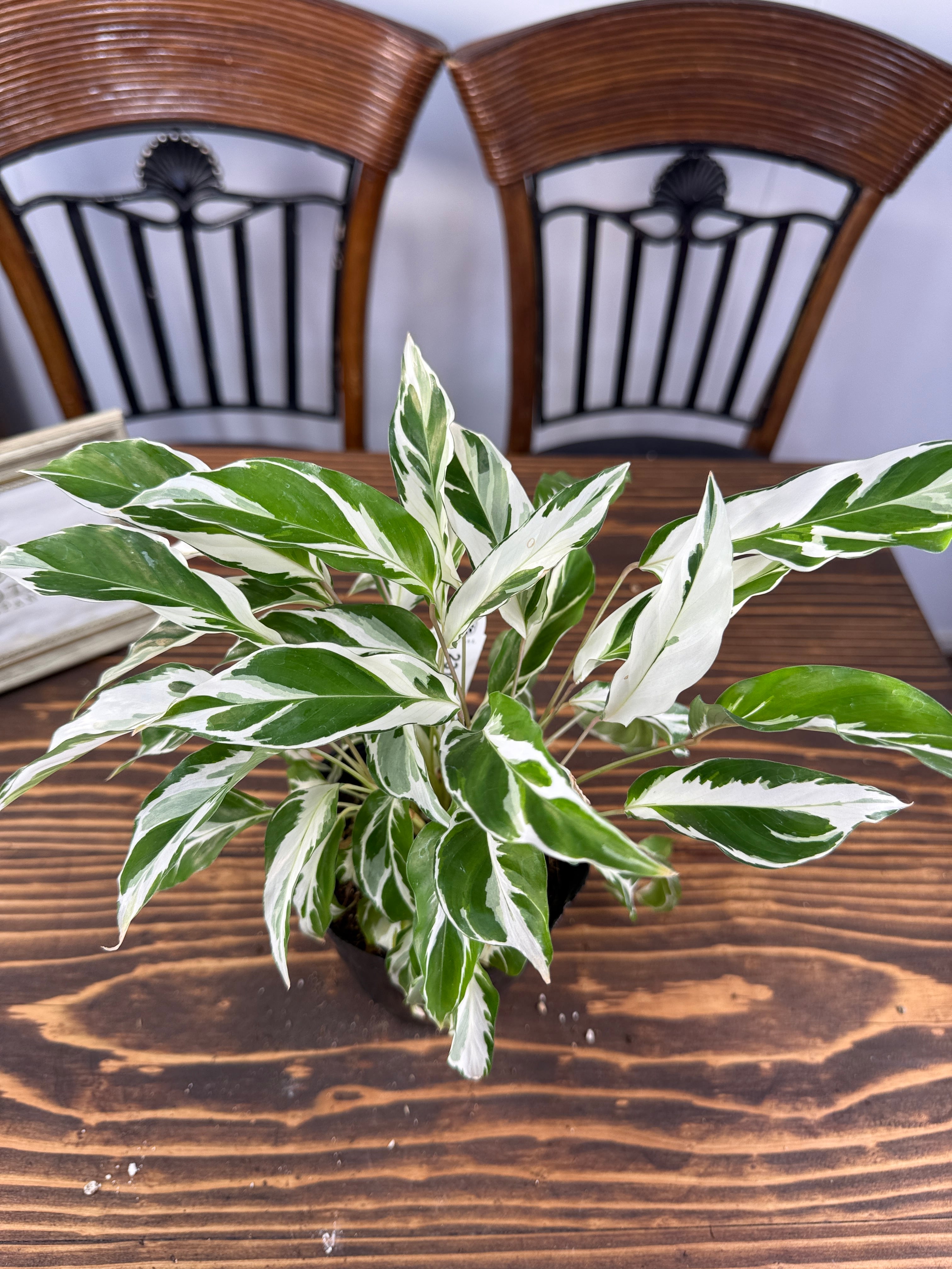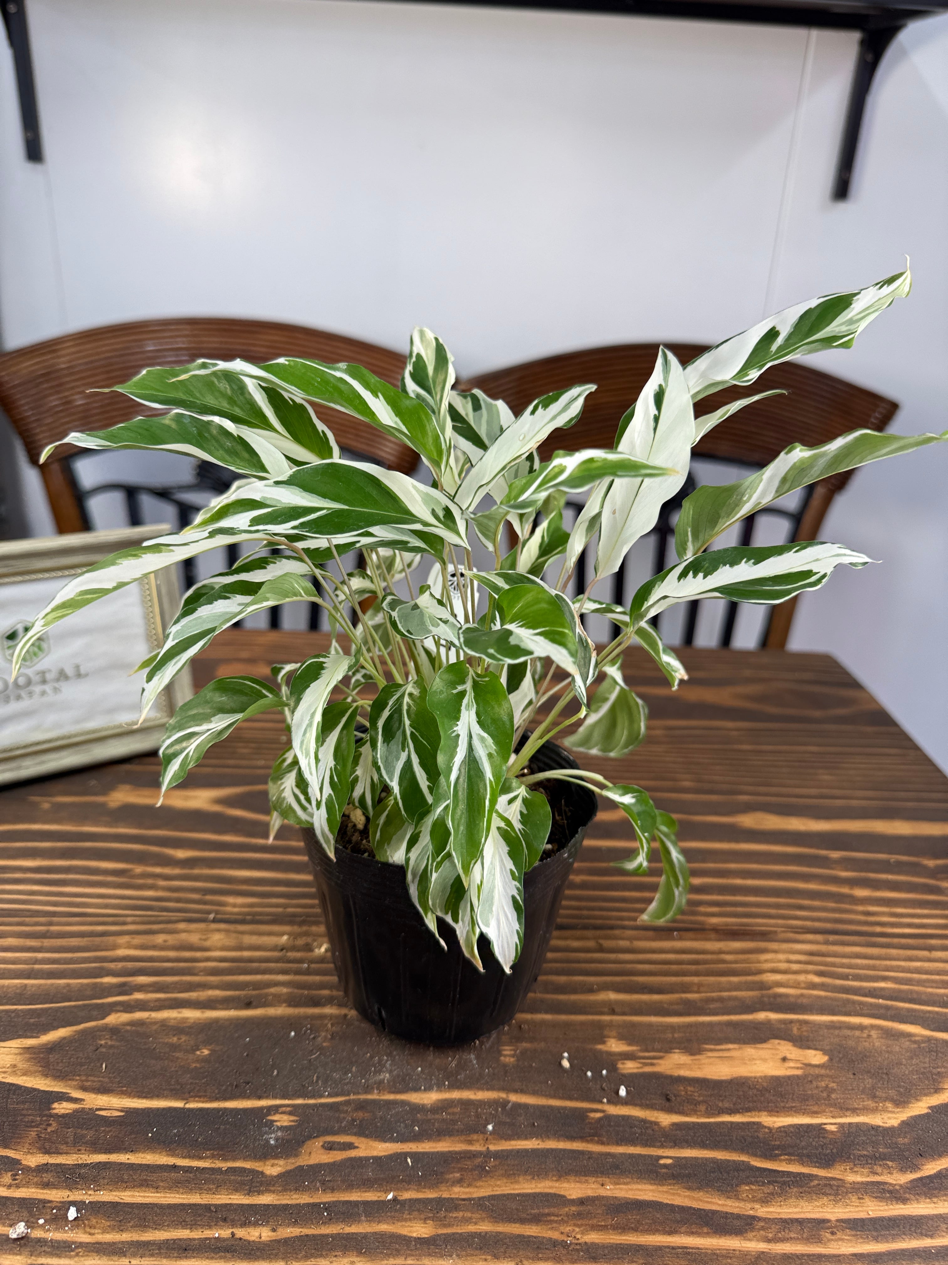 美しい白い斑が特徴のカラテア ホワイトフュージョン!そのユニークな模様と華やかな葉が、お部屋のインテリアに洗練された雰囲気をもたらします。育てやすさを兼ね備え、どの空間でも映える存在感が魅力的です!