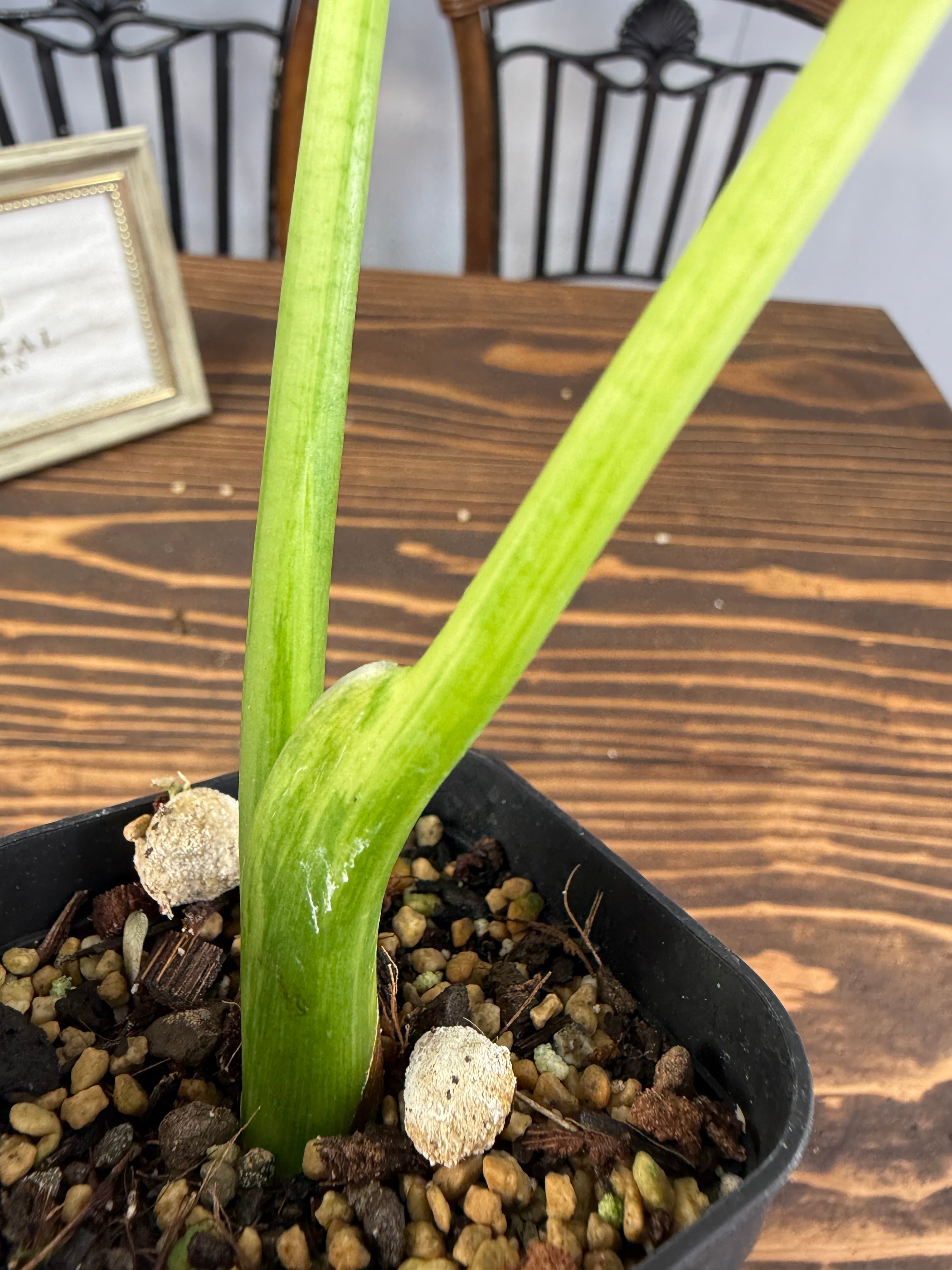 苗はその状態でお届けいたしますが、必要に応じて植替えをおすすめいたします。葉の一部に若干の傷みが見られることがございますが、植物の成長過程の一環としてご理解いただければと思います。到着後は早めに明るい場所に移動し、新しい環境に慣れるようお手伝いさせていただきます。ご質問やご不明な点がございましたら、お気軽にご連絡ください。