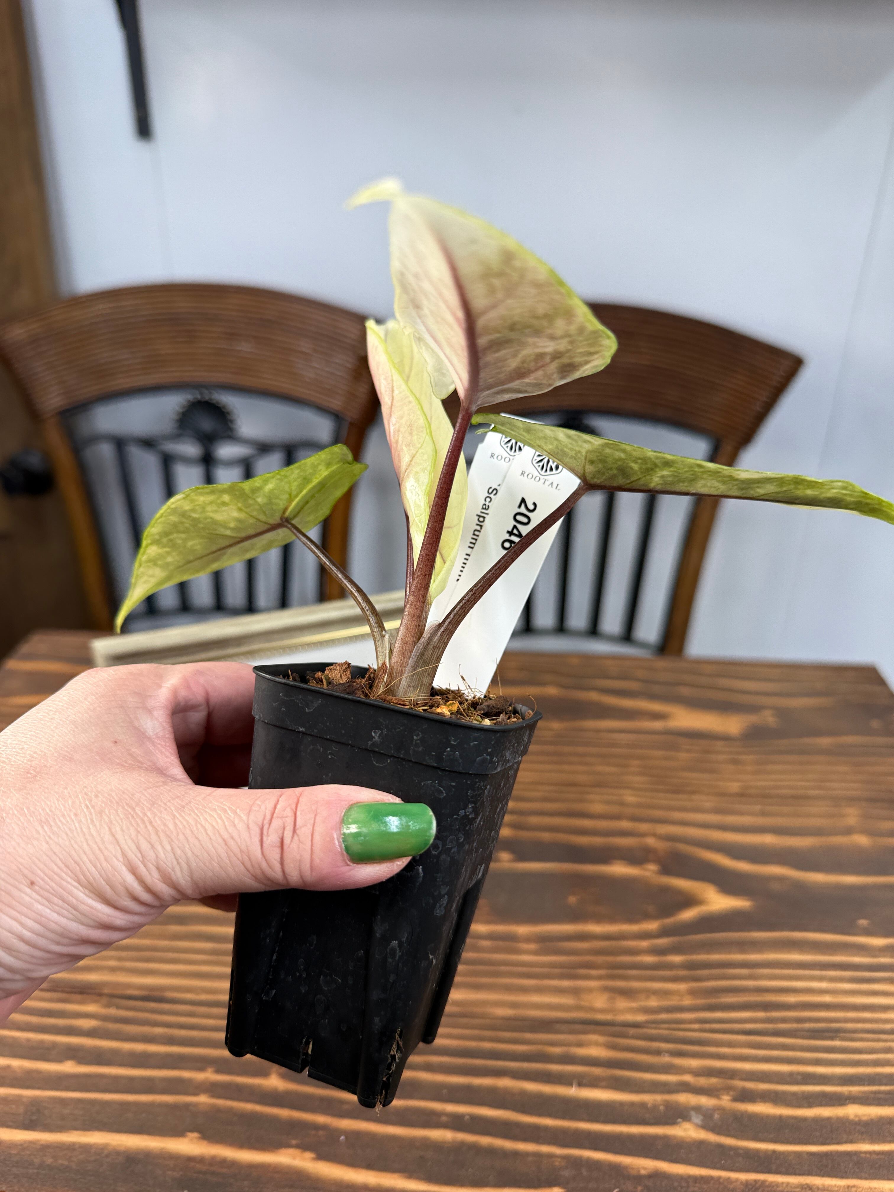 ★2046【希少種】アロカシア スカルプラム ミント(2.5号ロング硬質ポット)※送料無料(一部除く)