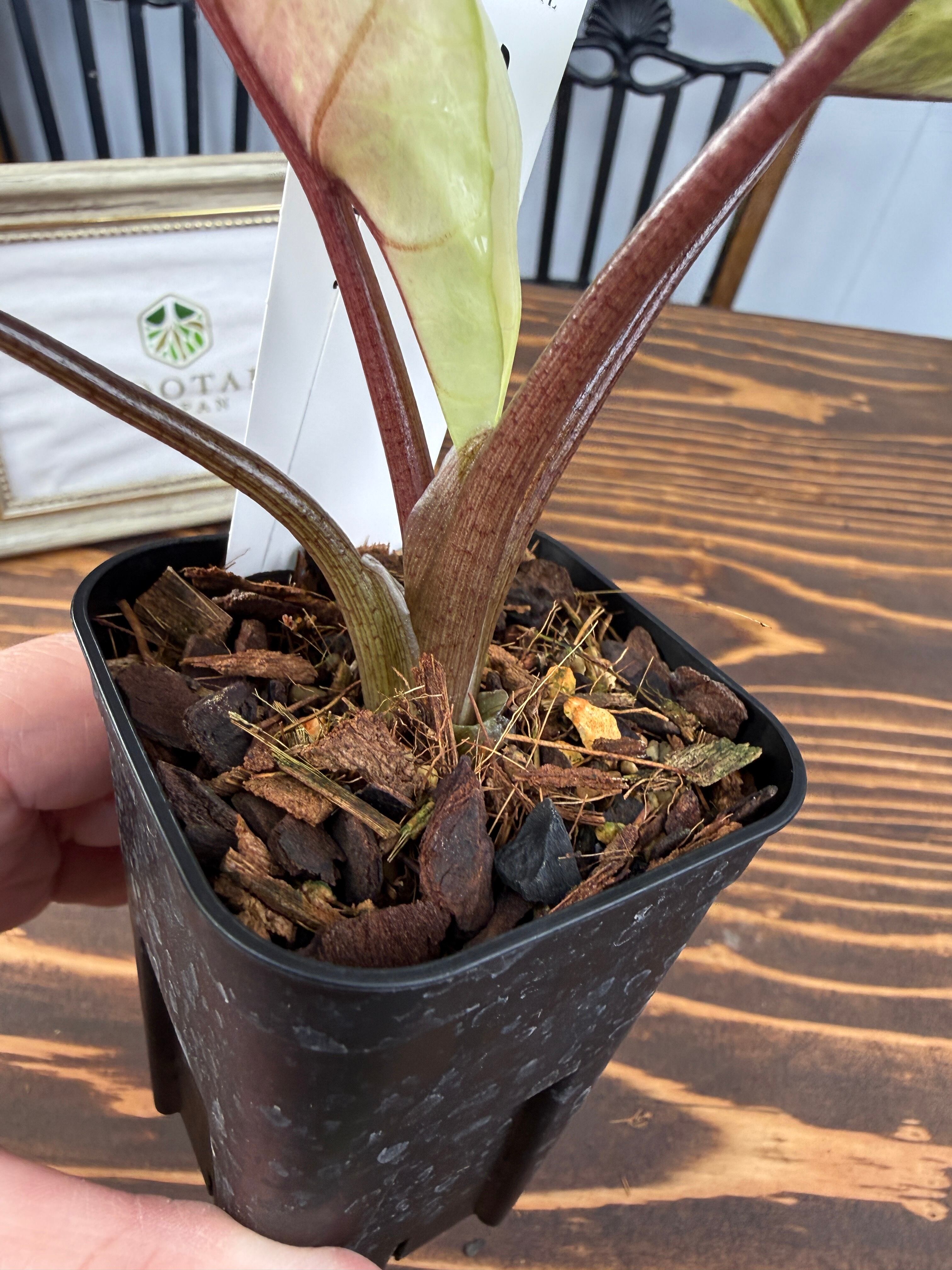 アロカシア スカルプラム ミント、健康的に育てられた苗2.5号ロング硬質ポットでお届けします。各株に個性があり、成長するにつれて魅力を増し、あなたのお部屋に特有の存在感をもたらします。