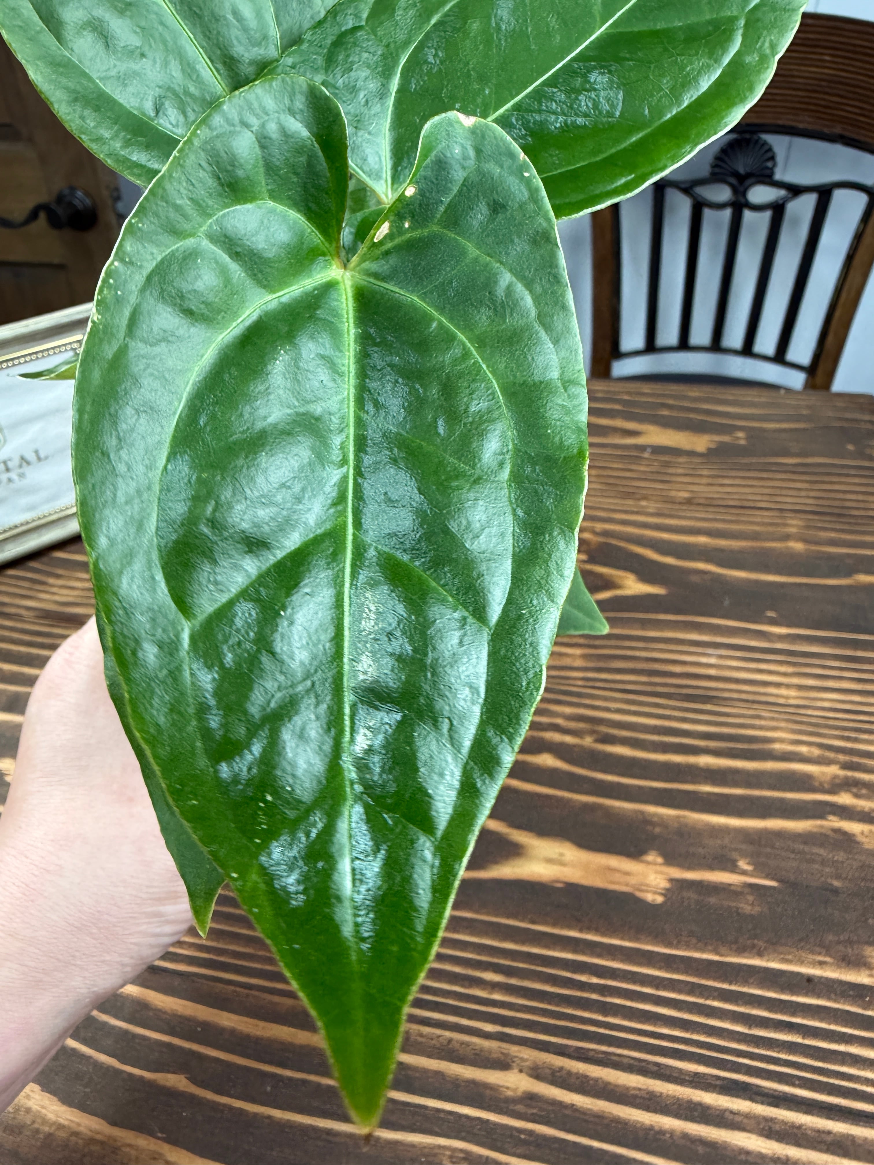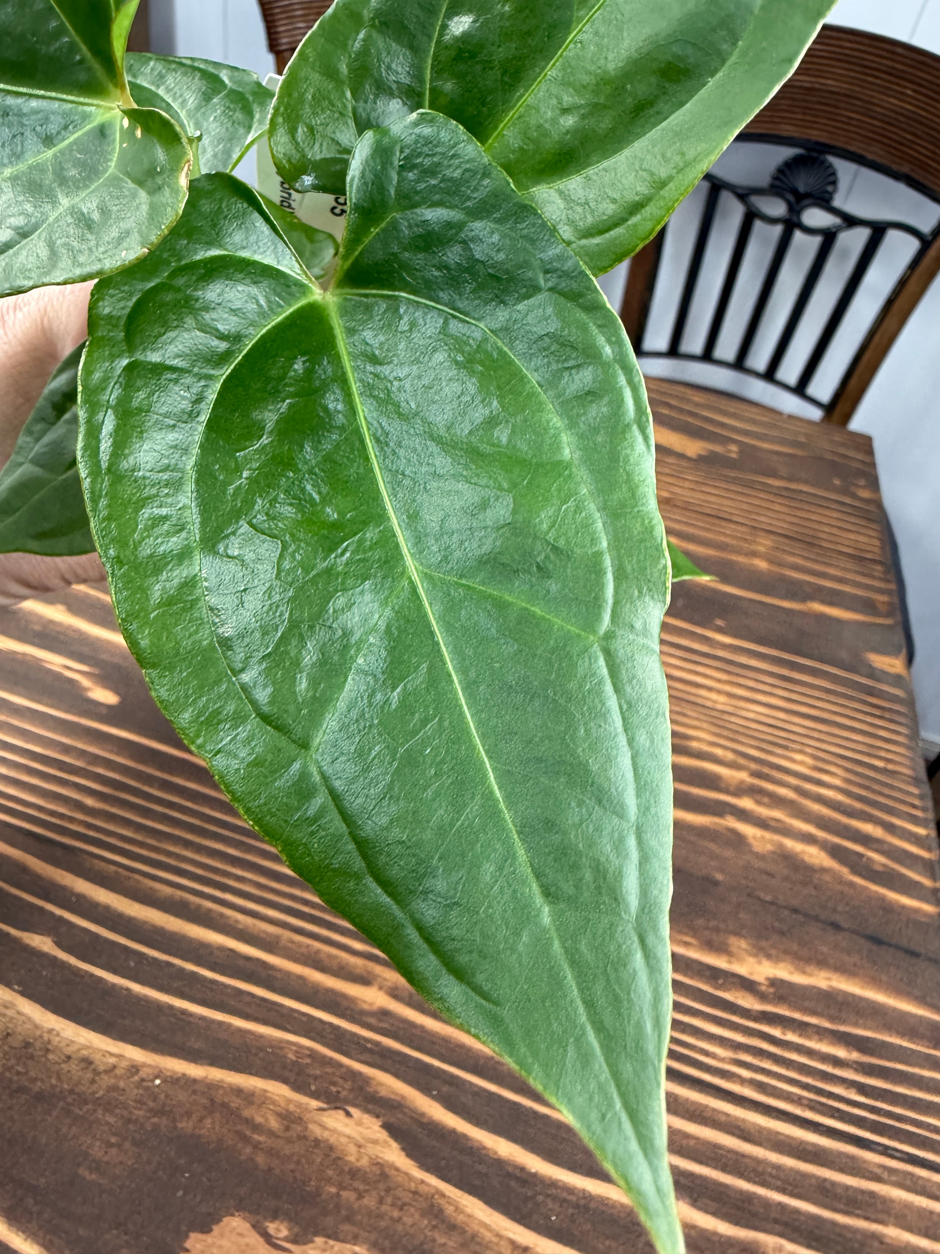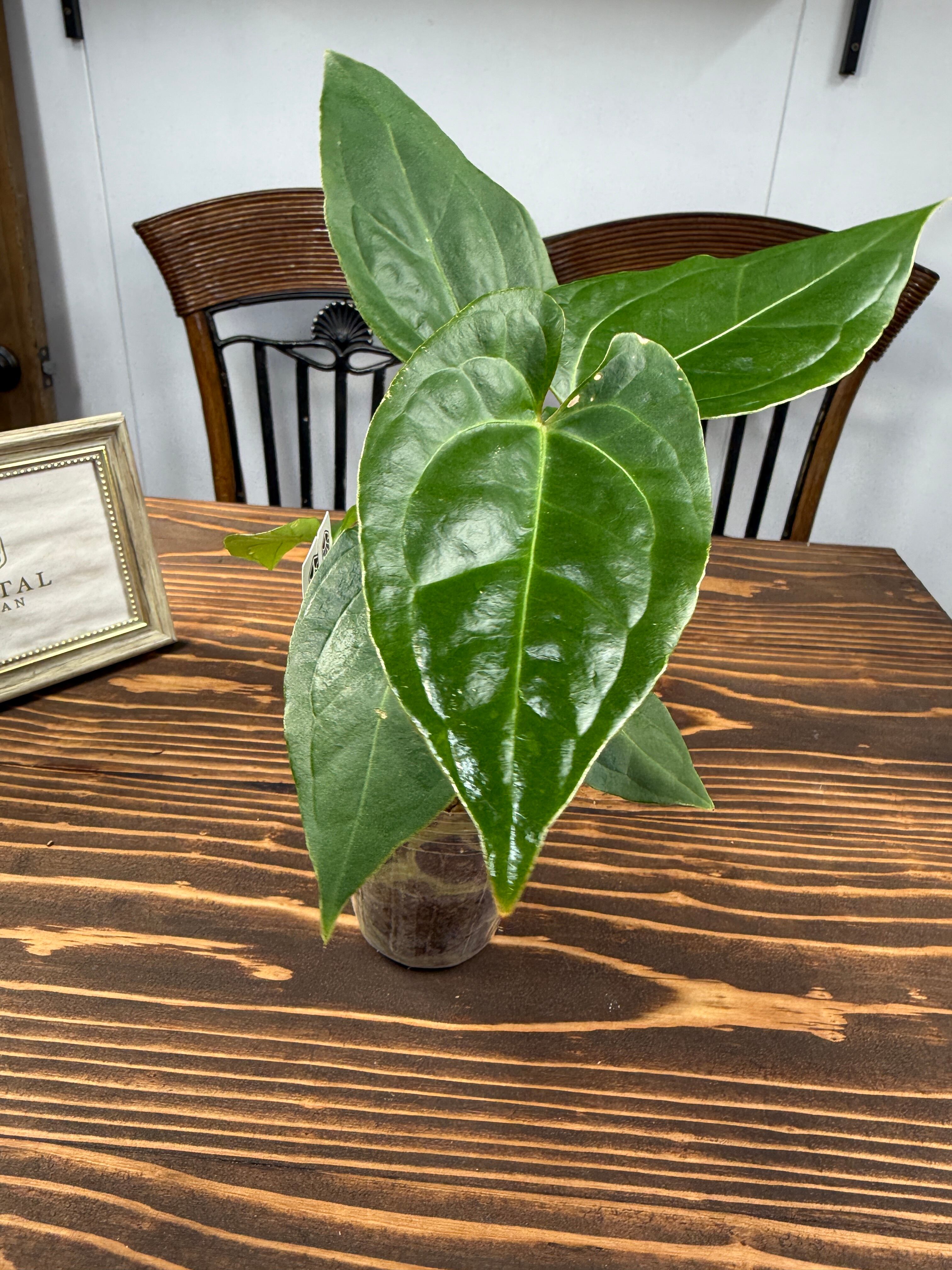 アンスリウム ベッセアエ(ハイブリッド)は、美しいハート型の葉が特徴の観葉植物です。独特なフォルムと豊かな色彩は、インテリアに生き生きとした雰囲気をもたらしてくれます。明るい場所で育てることで、その美しさが際立ち、お部屋をよりスタイリッシュで華やかに演出します!
