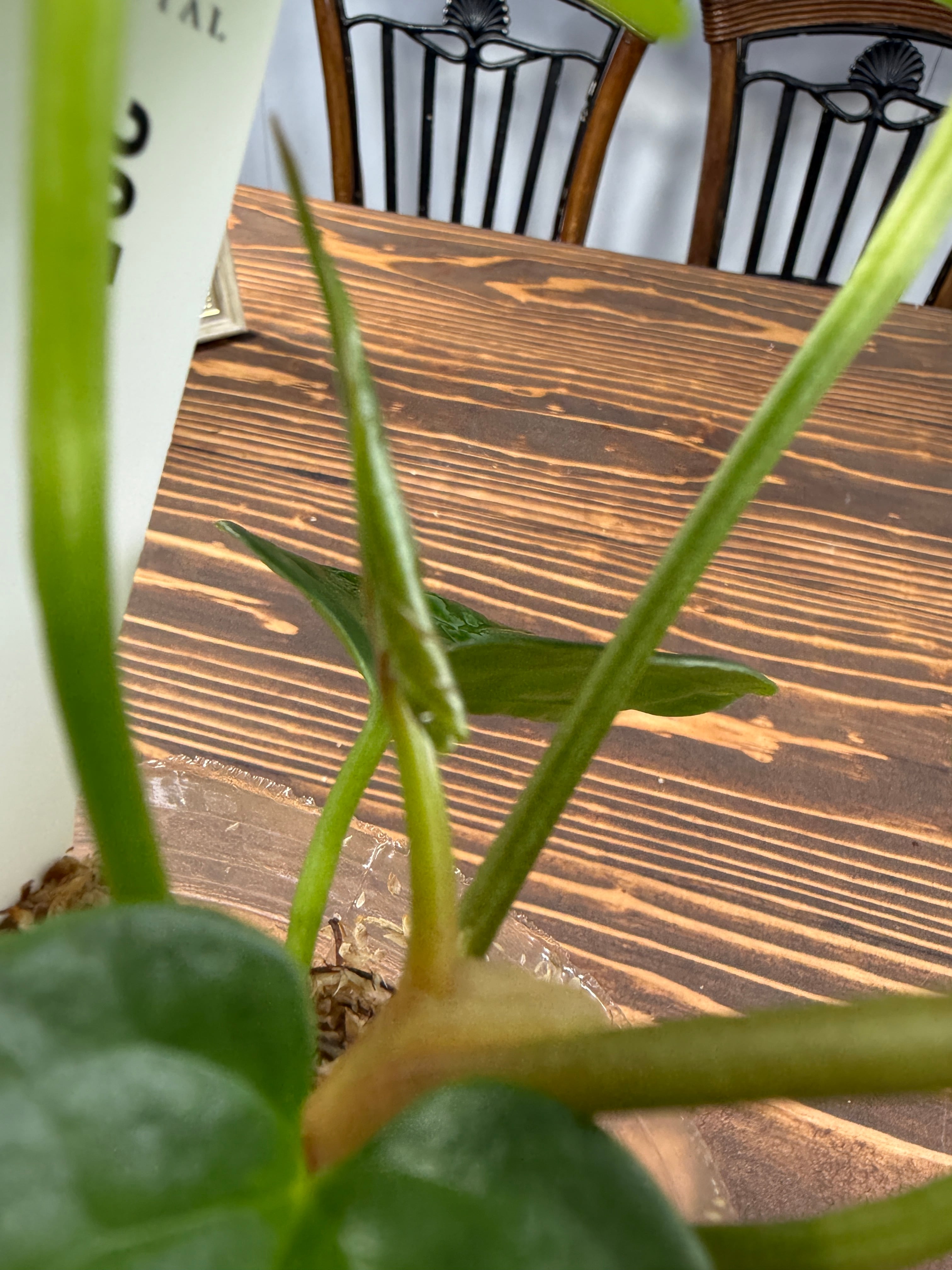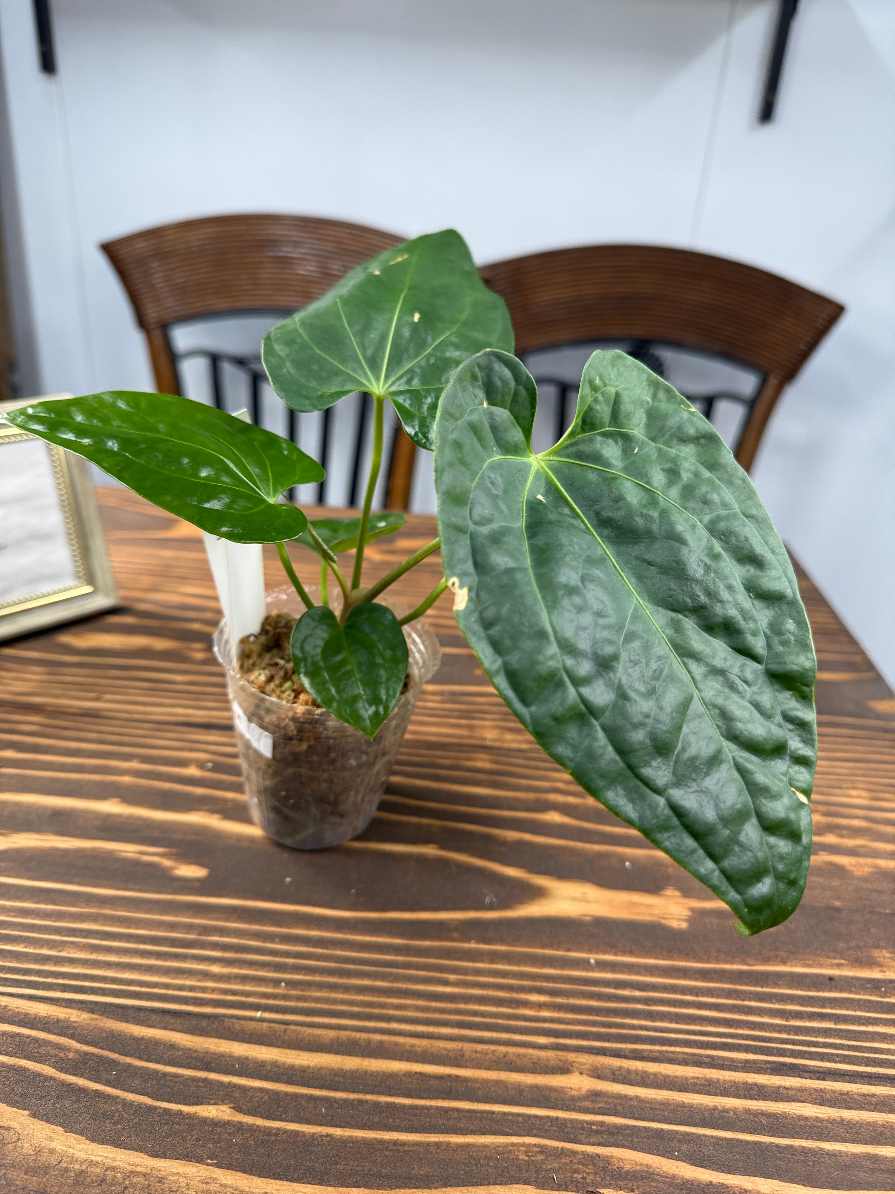 アンスリウム ベッセアエの出荷時サイズは約8㎝(8cm口径ポット)です。インテリアにアクセントを与える美しい葉は、どんな空間にもマッチします。