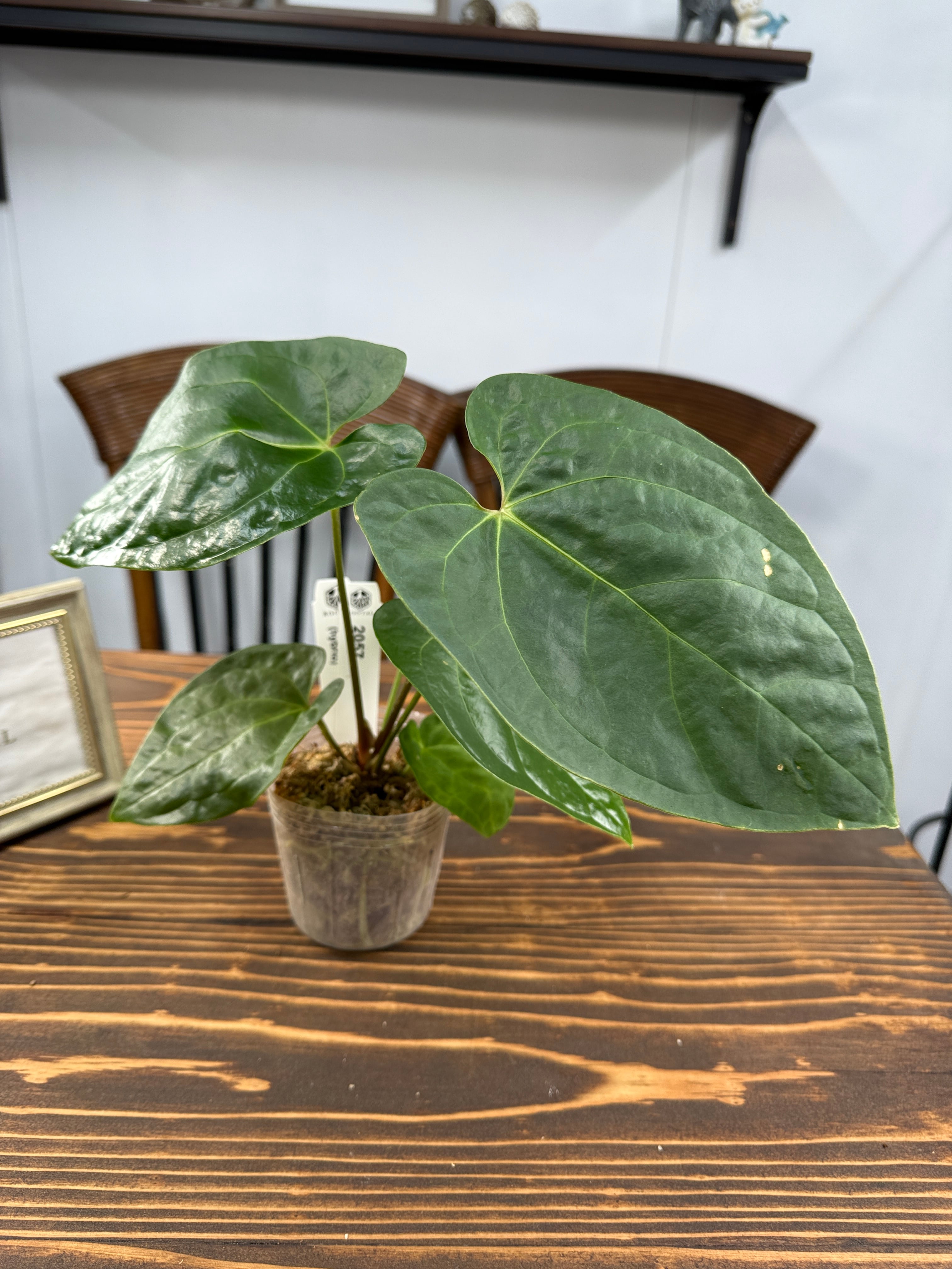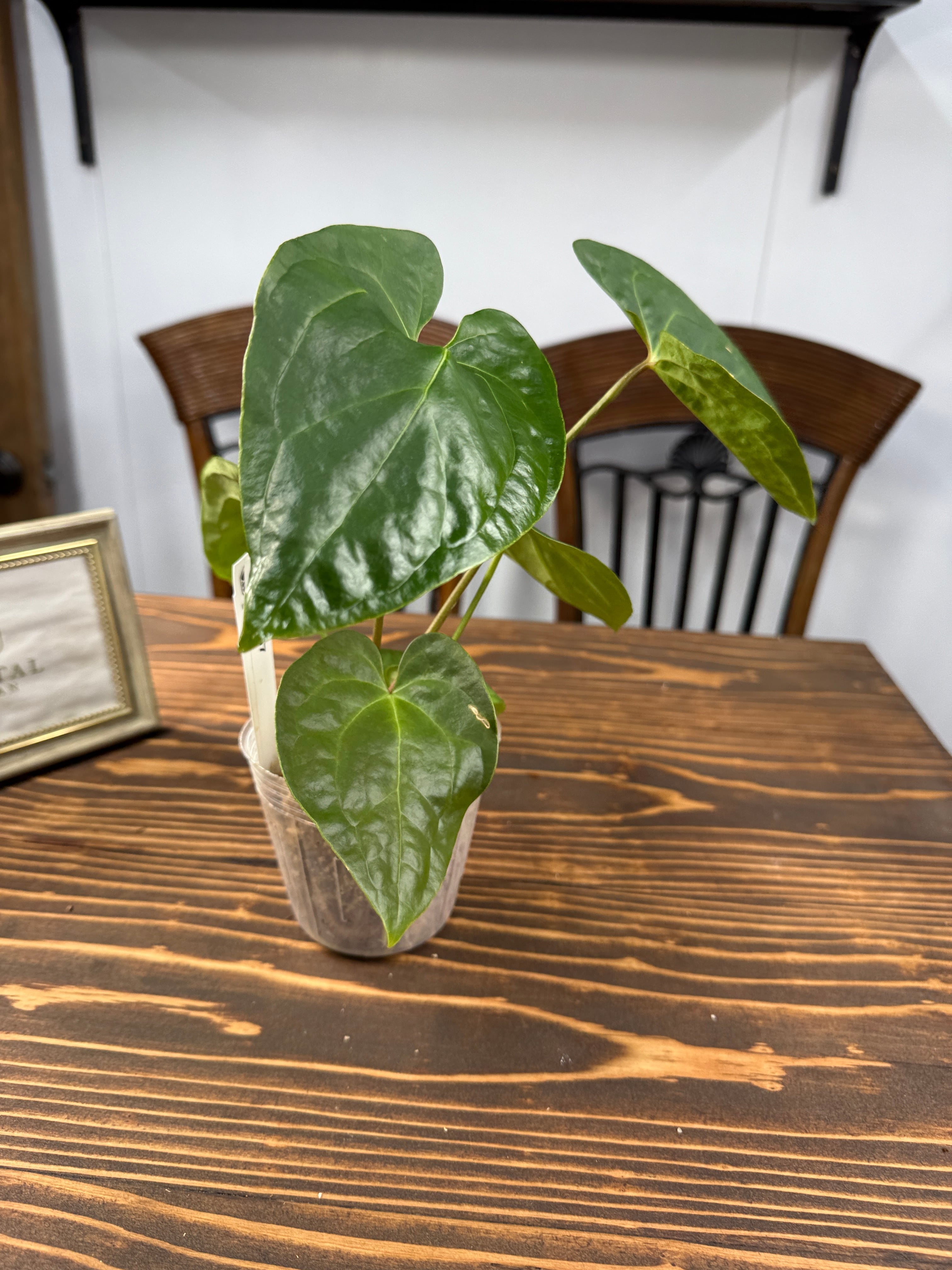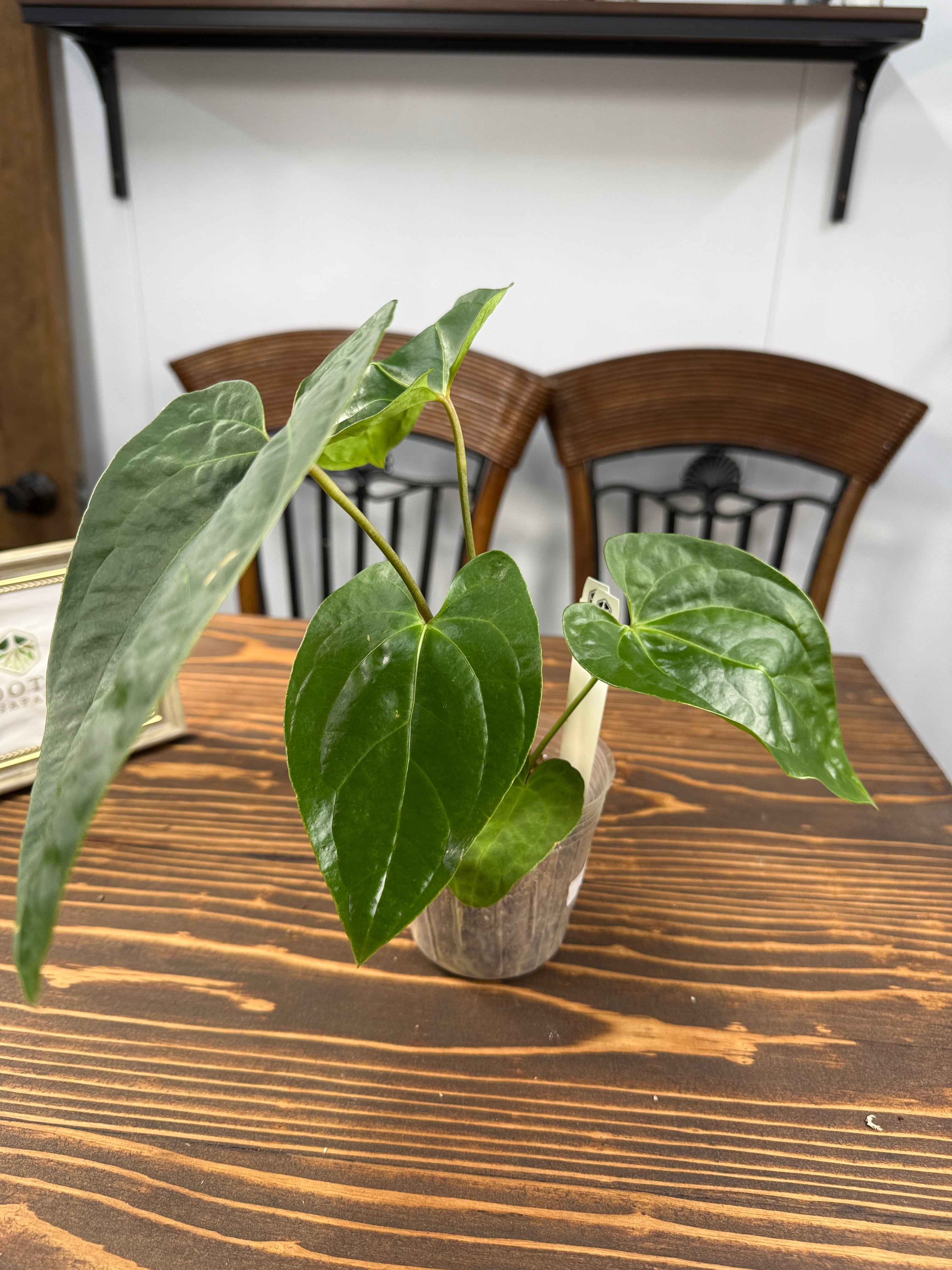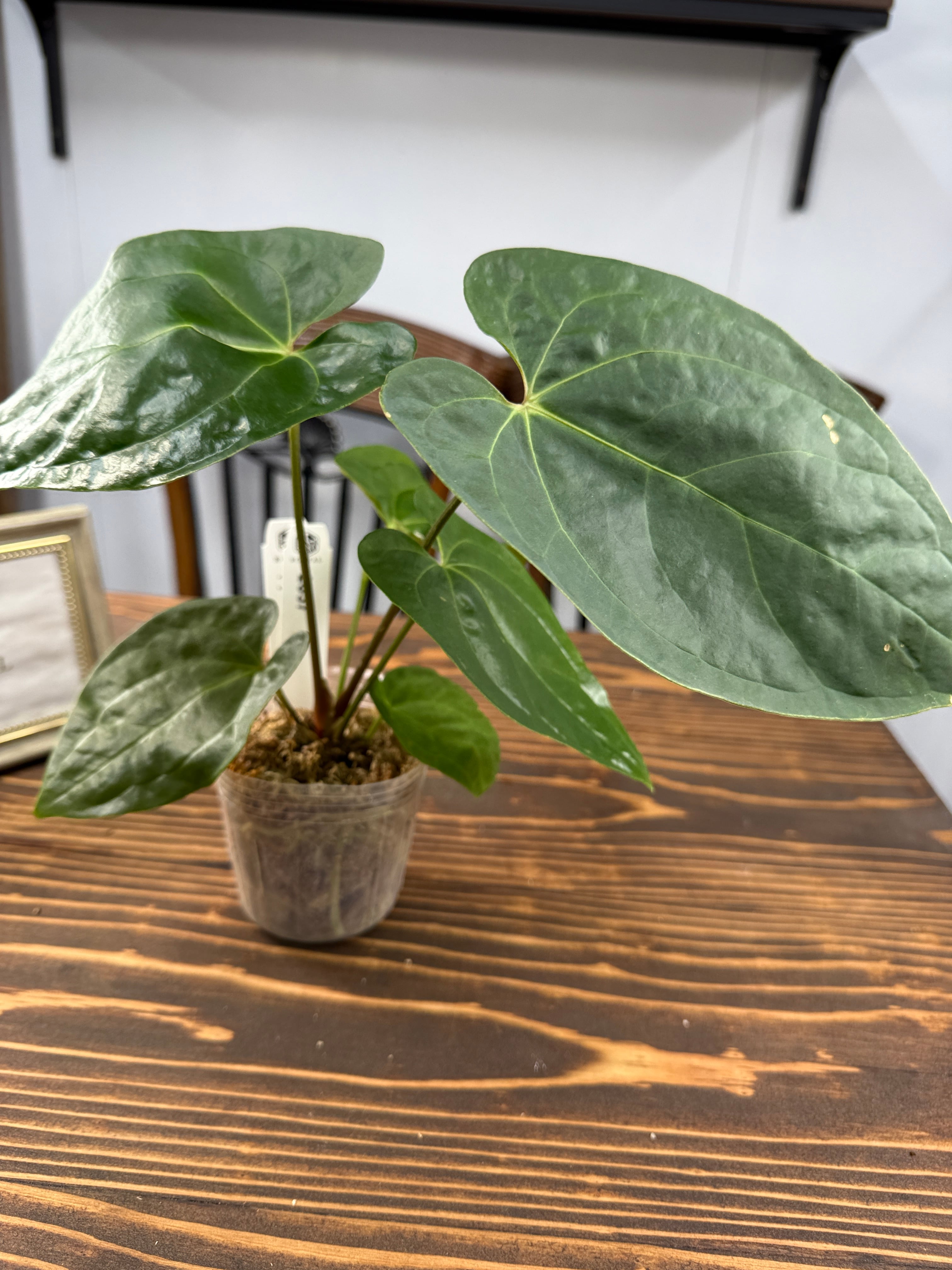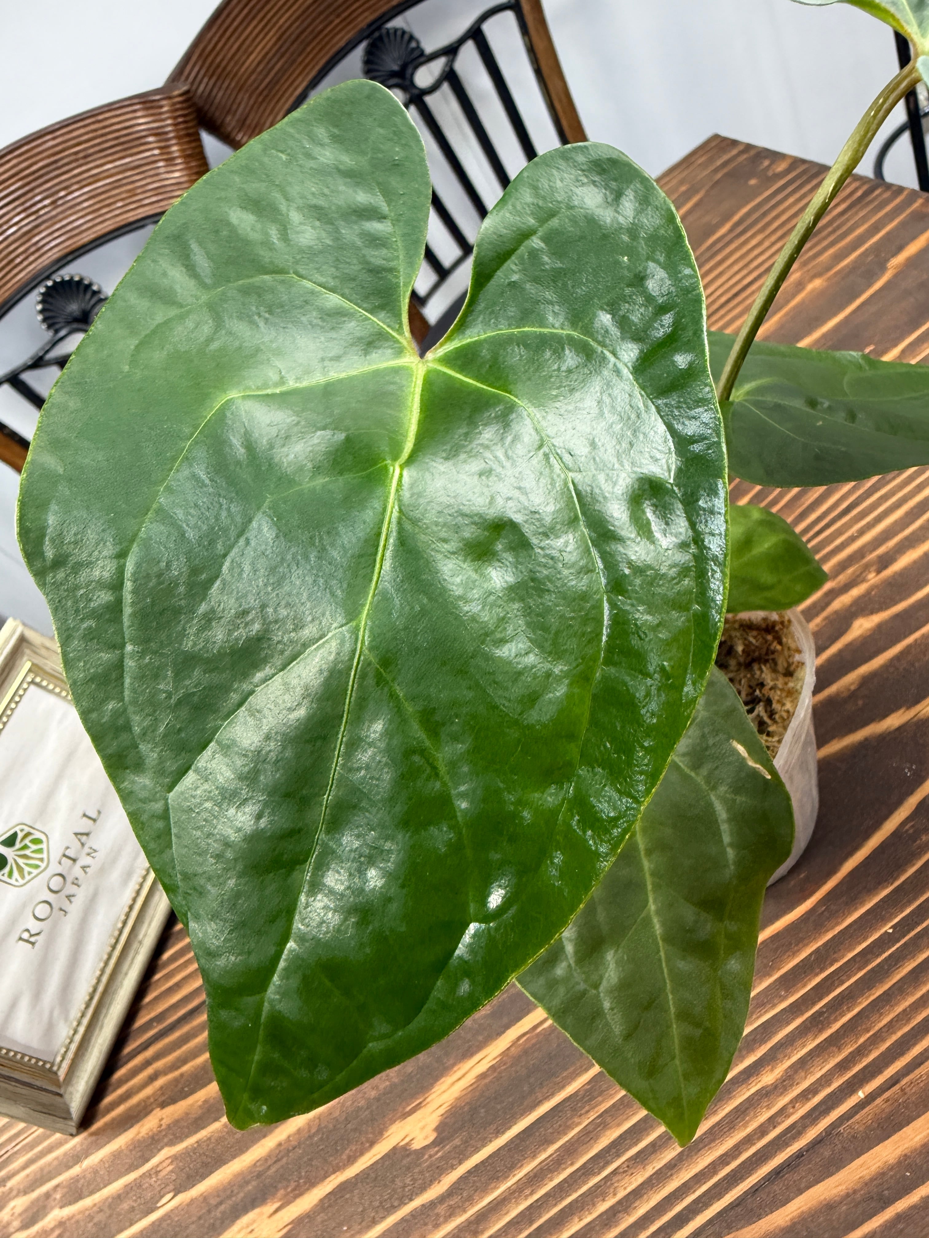 アンスリウム ベッセアエ(ハイブリッド)は、美しいハート型の葉が特徴の観葉植物です。独特なフォルムと豊かな色彩は、インテリアに生き生きとした雰囲気をもたらしてくれます。明るい場所で育てることで、その美しさが際立ち、お部屋をよりスタイリッシュで華やかに演出します!