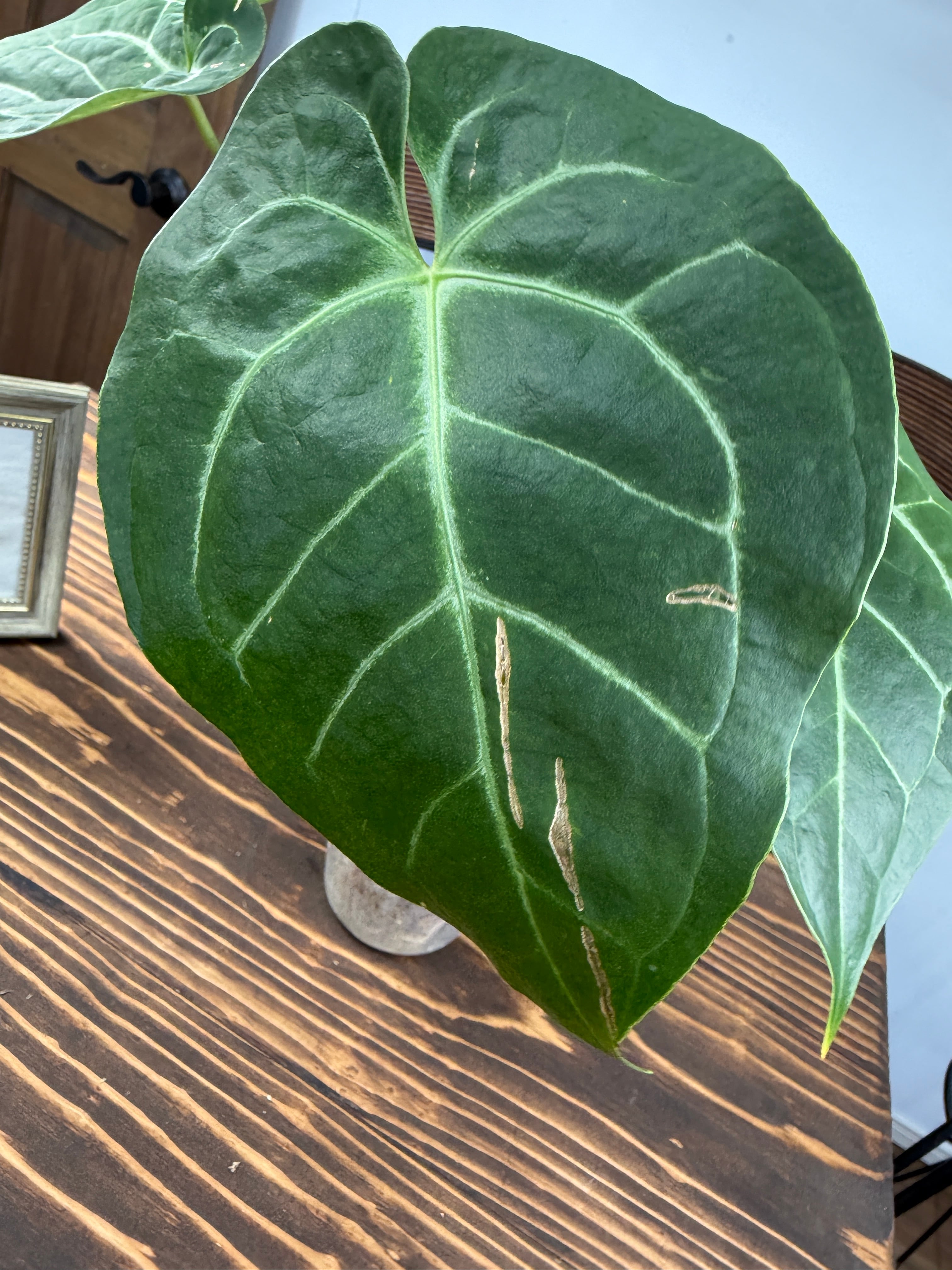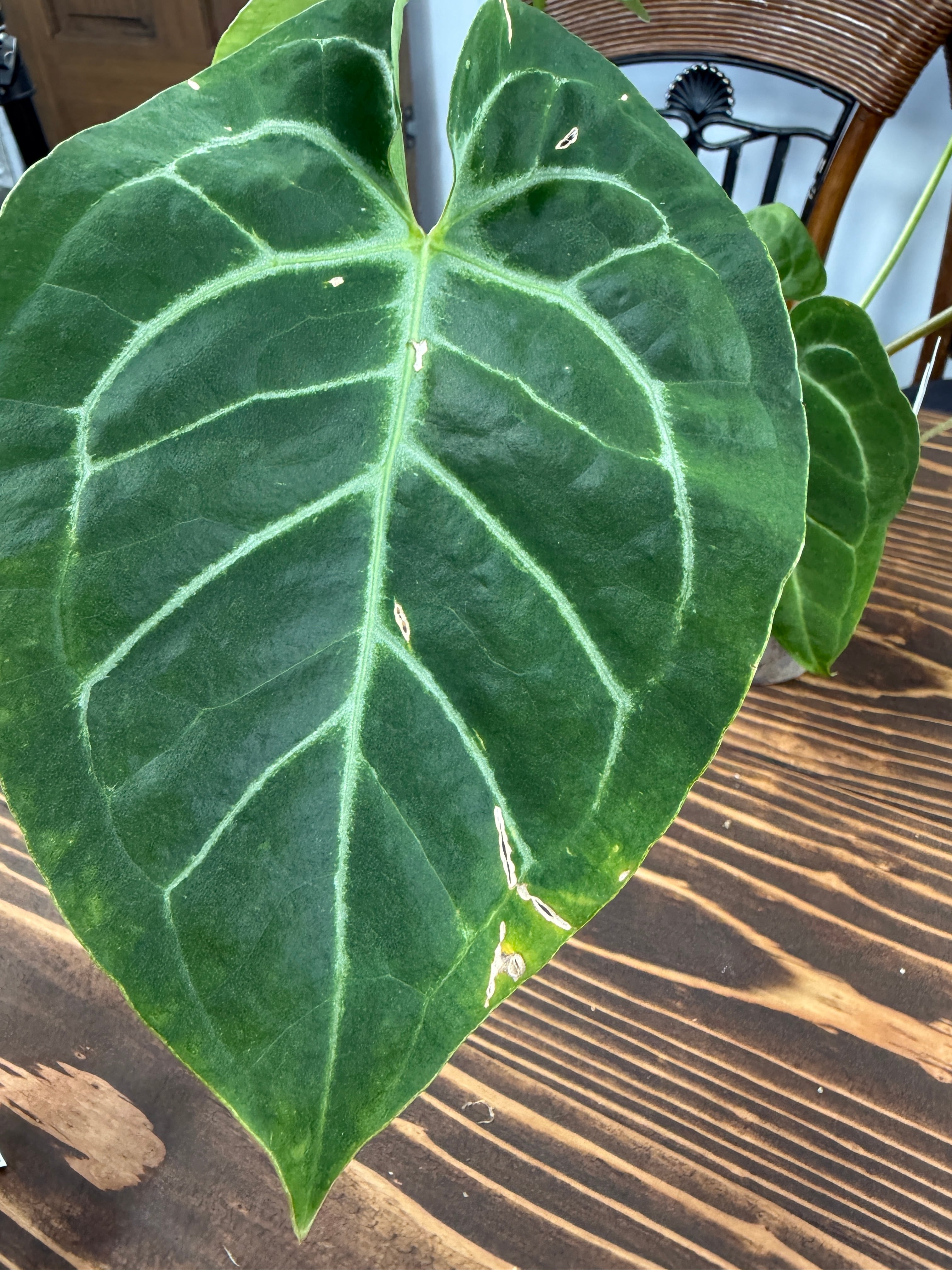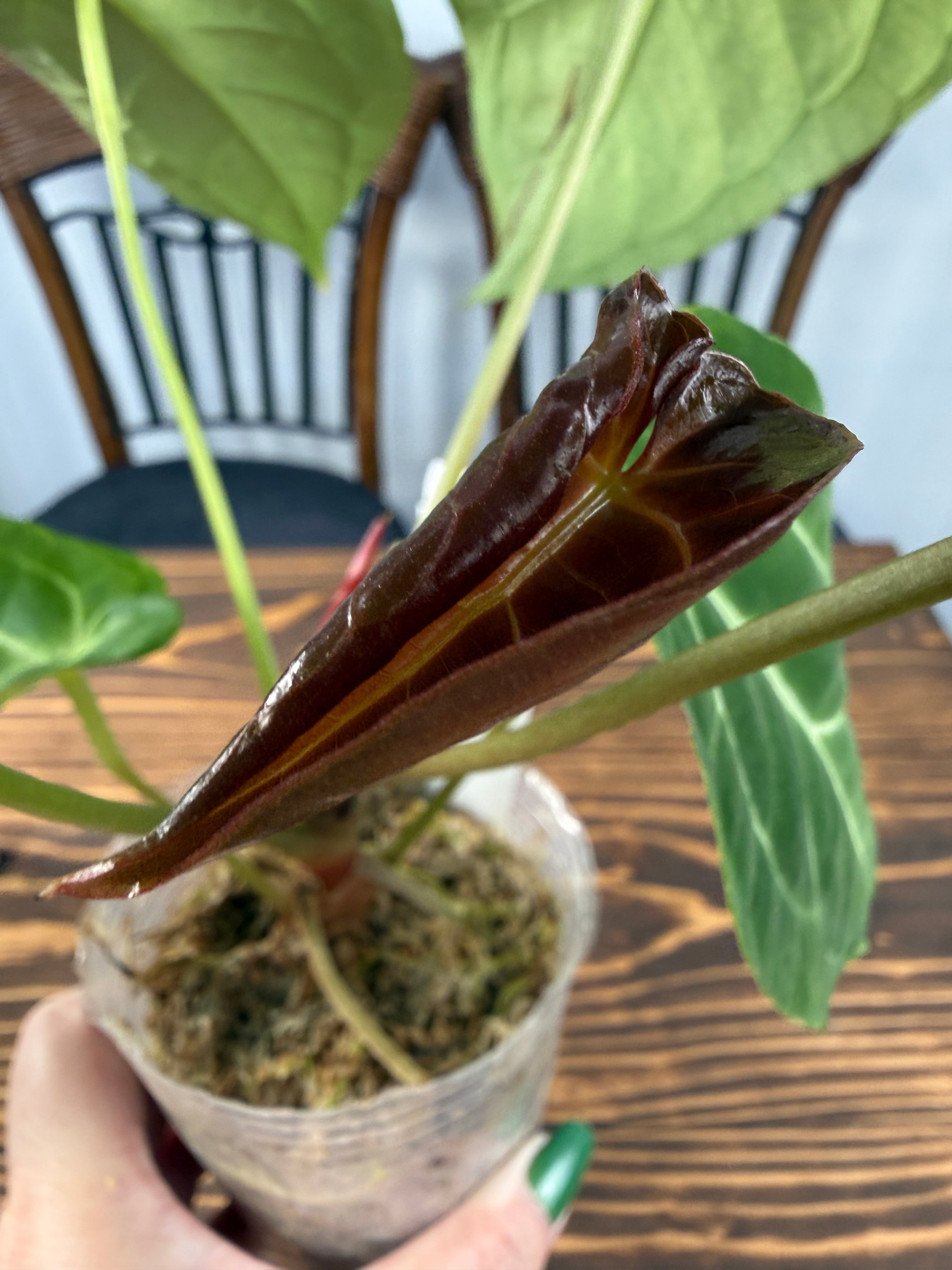 アンスリウム(RC×KOS)×ベッセアエは、美しいハート型の葉が特徴の観葉植物です。濃厚な色合いと個性的なデザインは、インテリアに生き生きとした雰囲気をもたらします。明るい場所で育てることで、その美しさが際立ち、お部屋をスタイリッシュで華やかに演出します!
