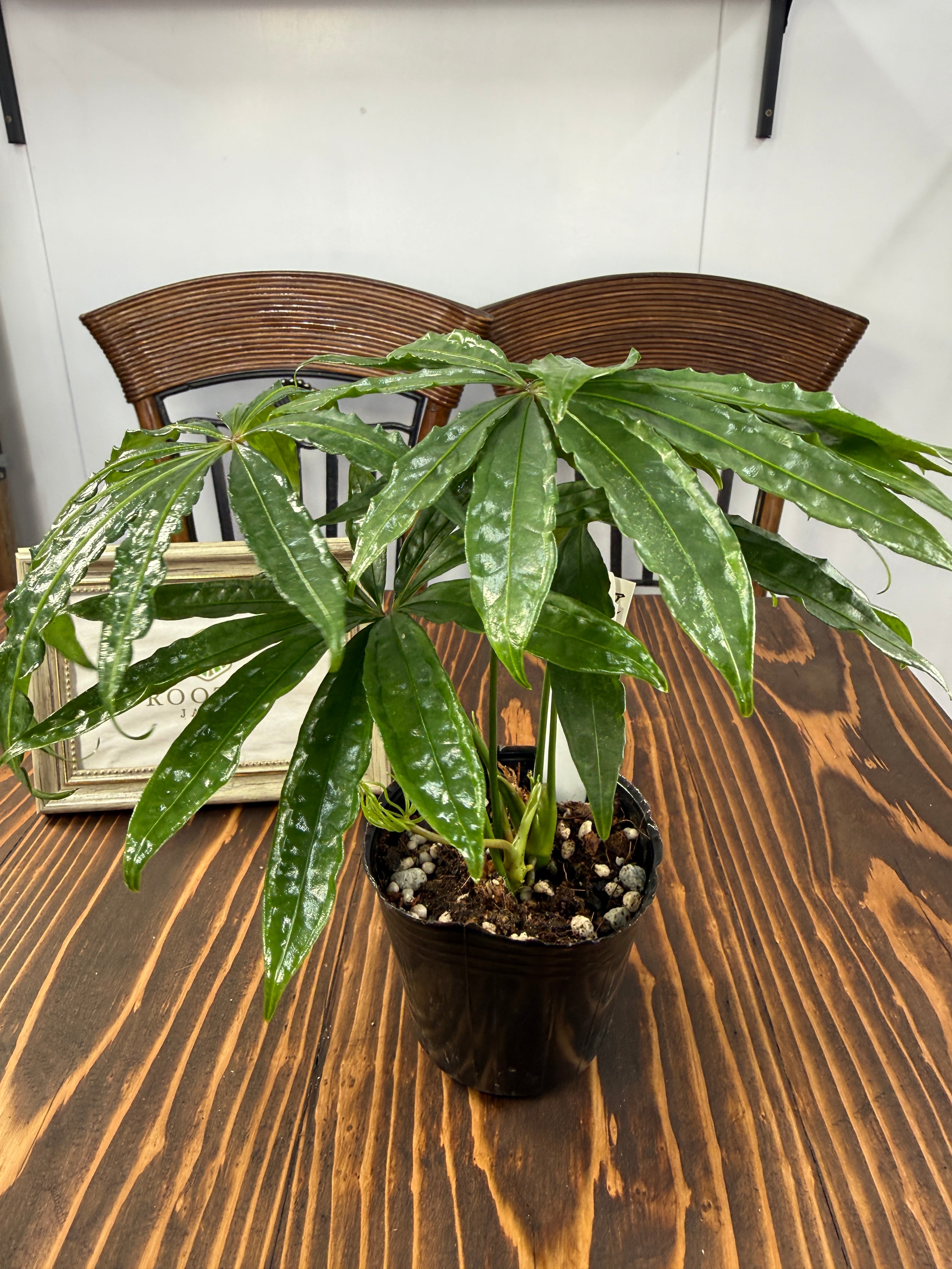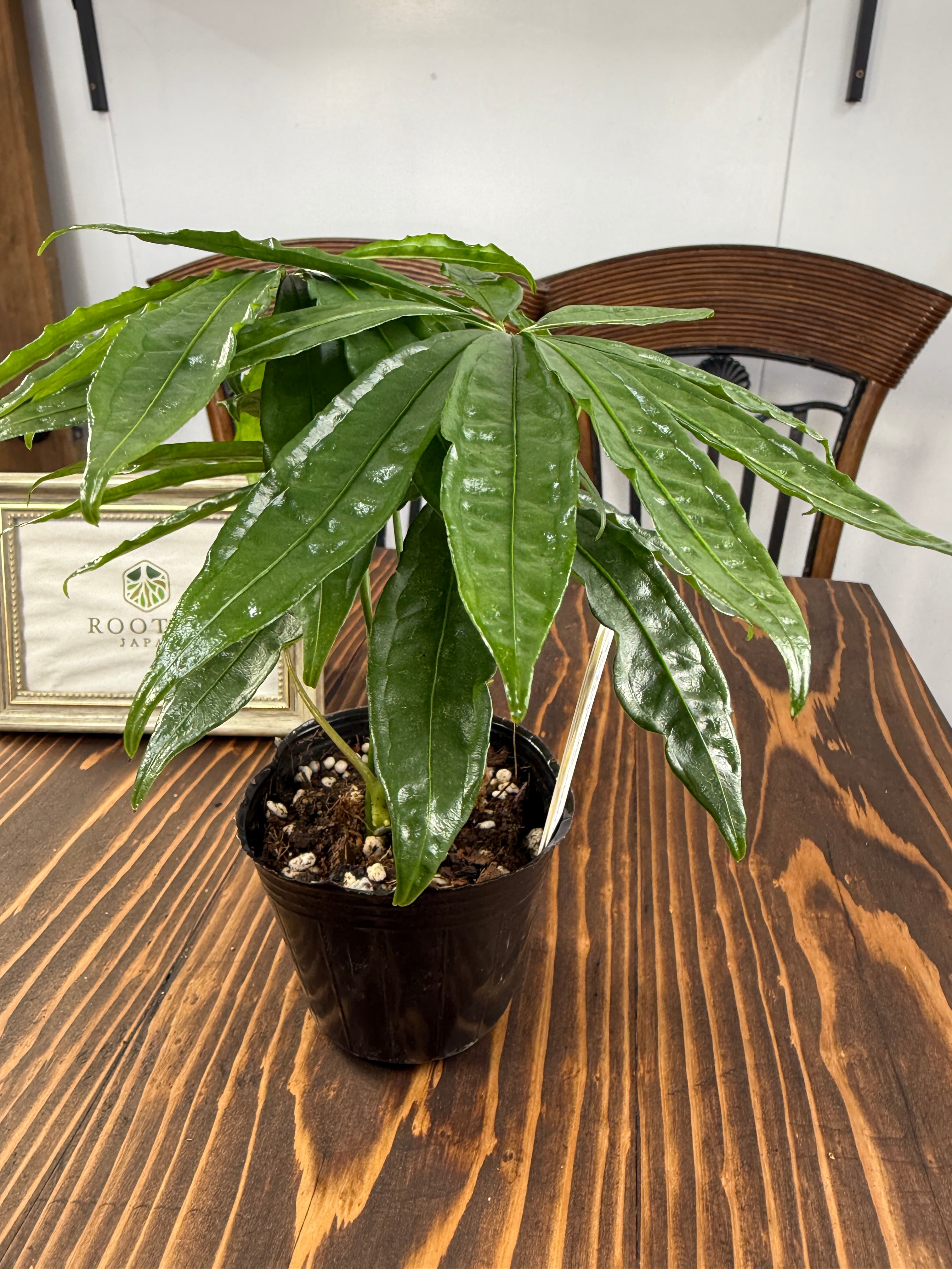 【美しい】アンスリウム ポリスキスツム(3号ポット)は、個性的な葉の形・フォルムが魅力的な観葉植物です!お部屋に華やかさを添え、心地よい癒しの空間をつくり出します。観葉植物初心者の方にも育てやすい特性を持っていますので、ぜひこの機会にお迎えください。