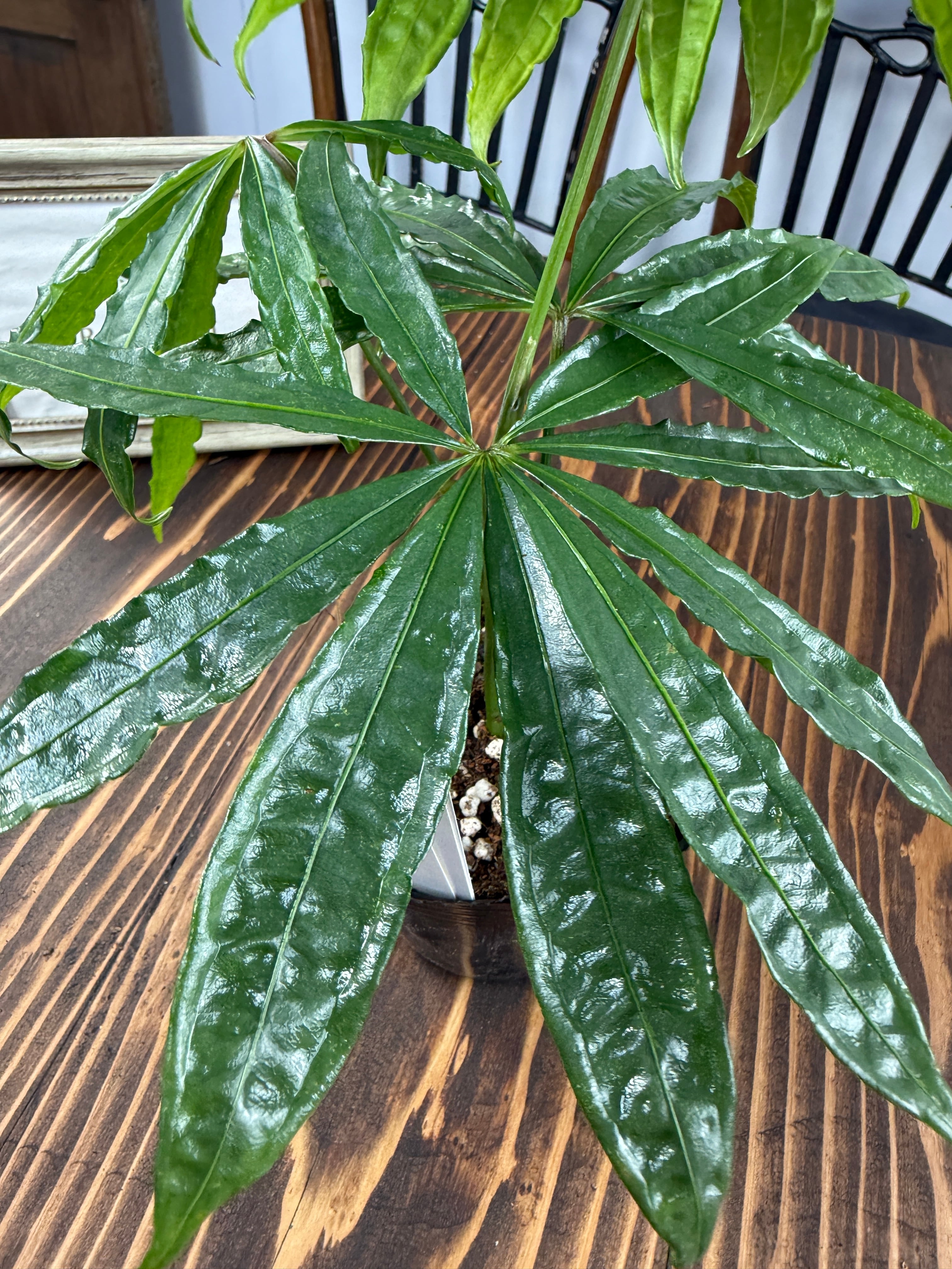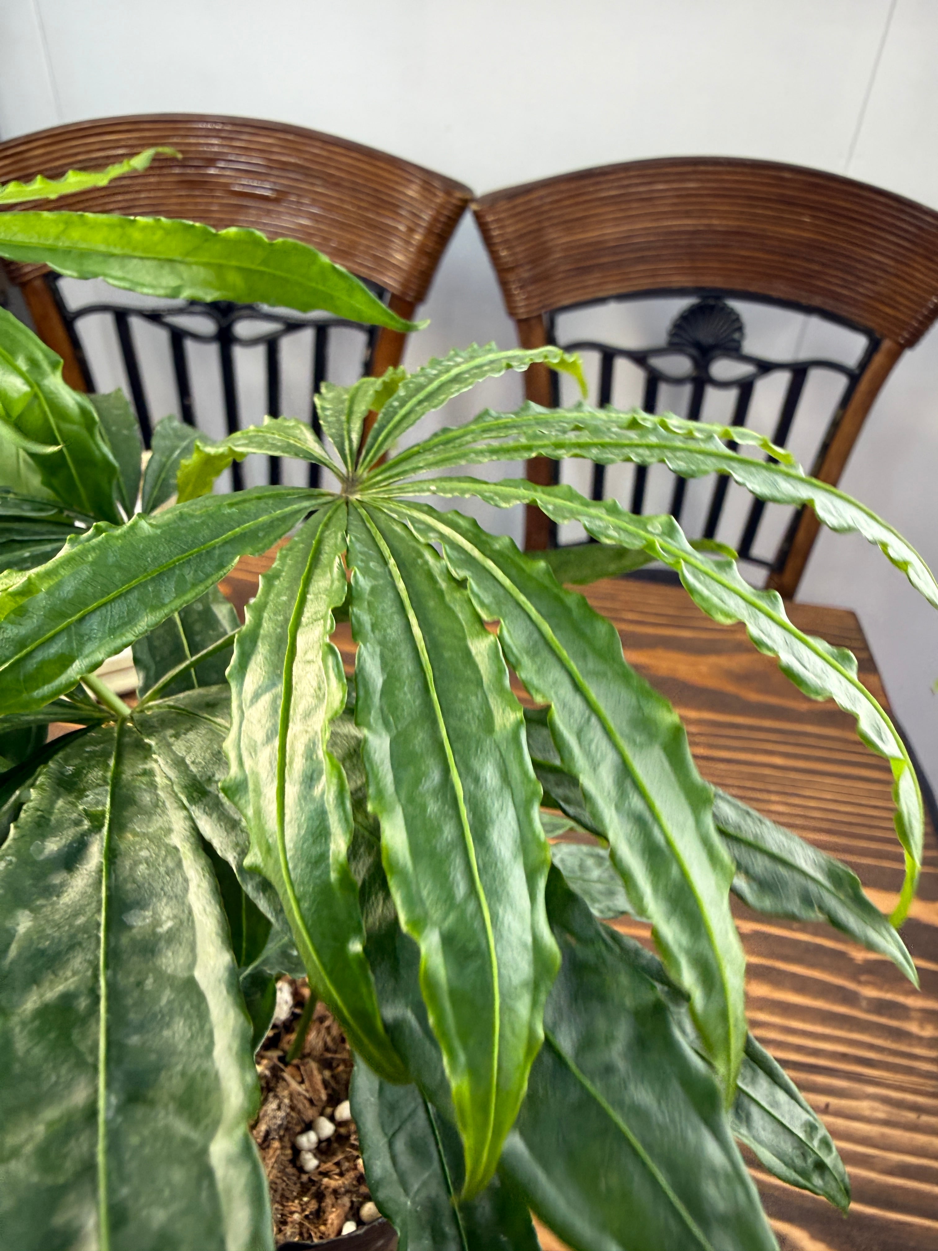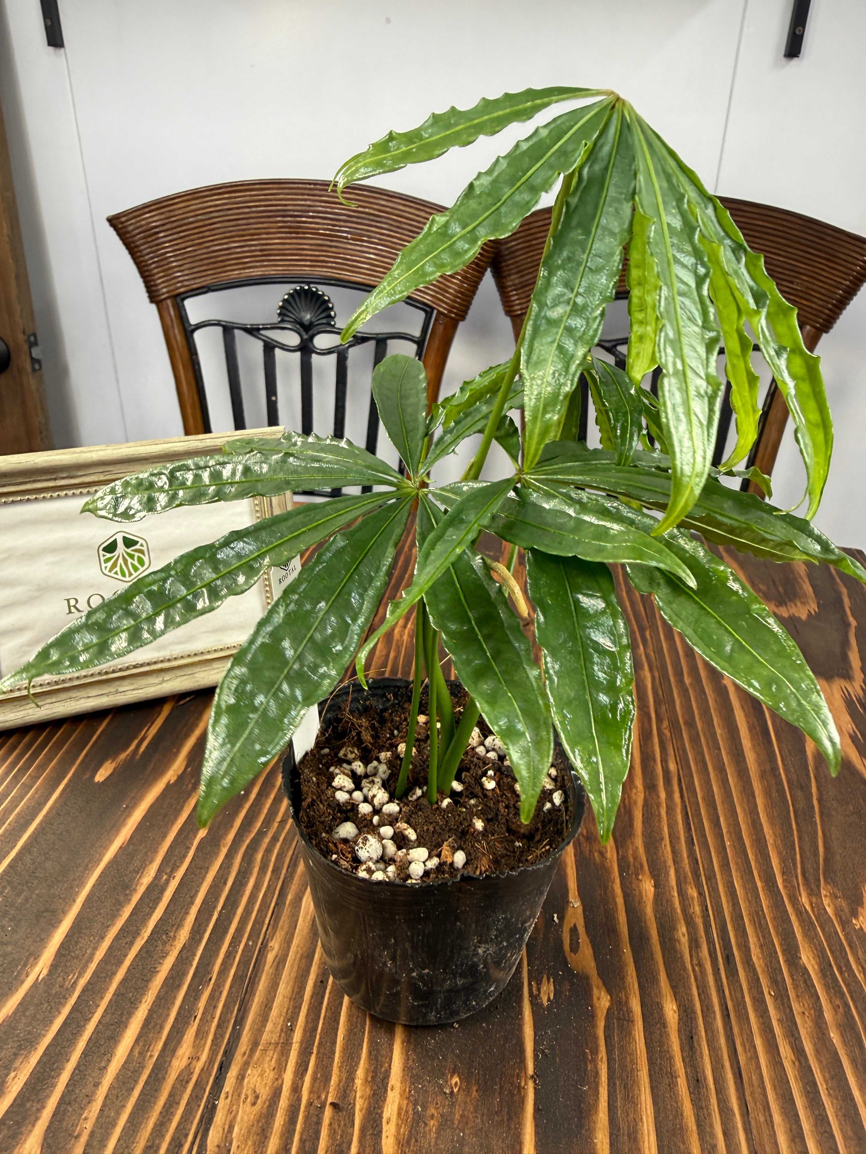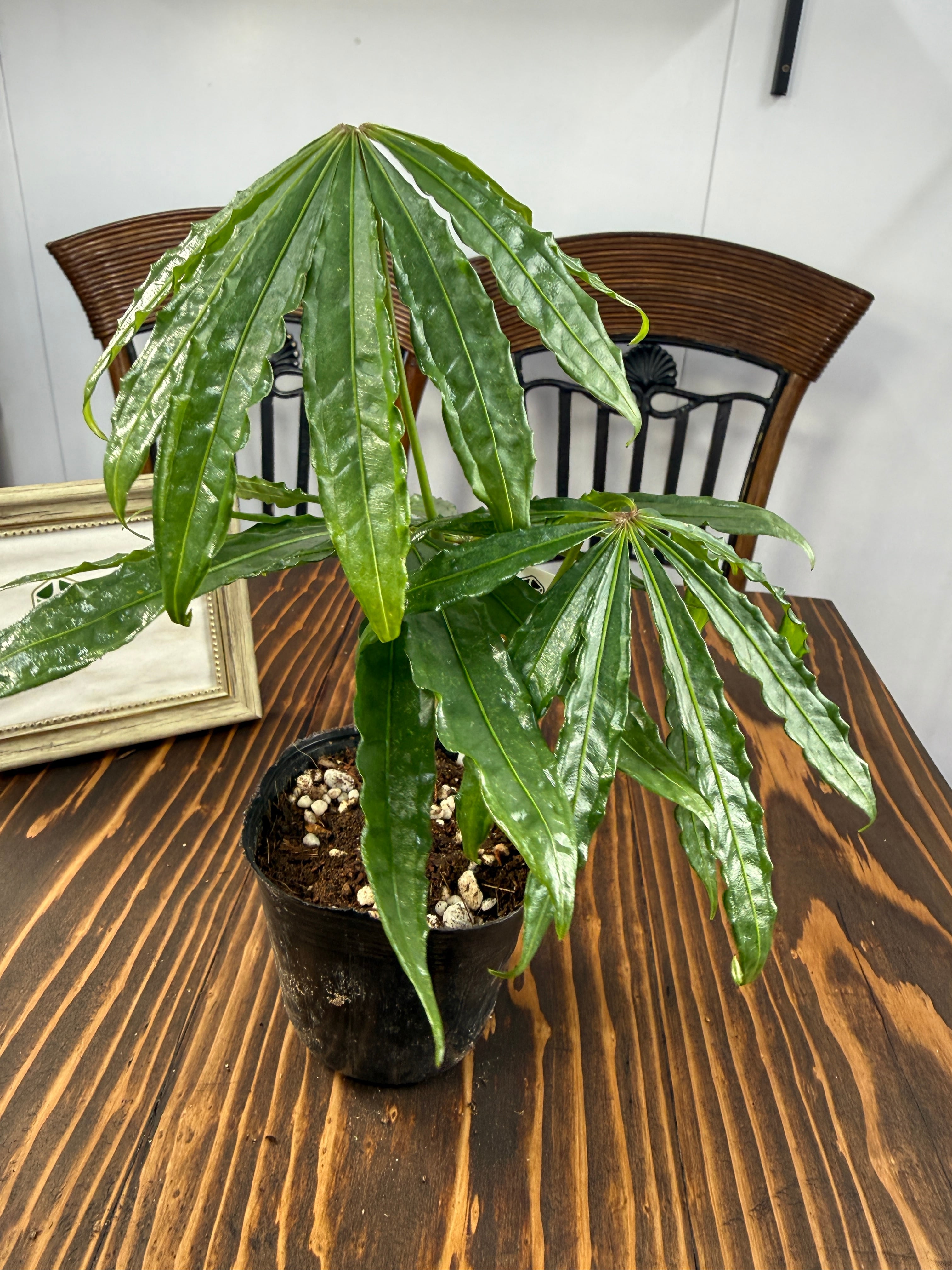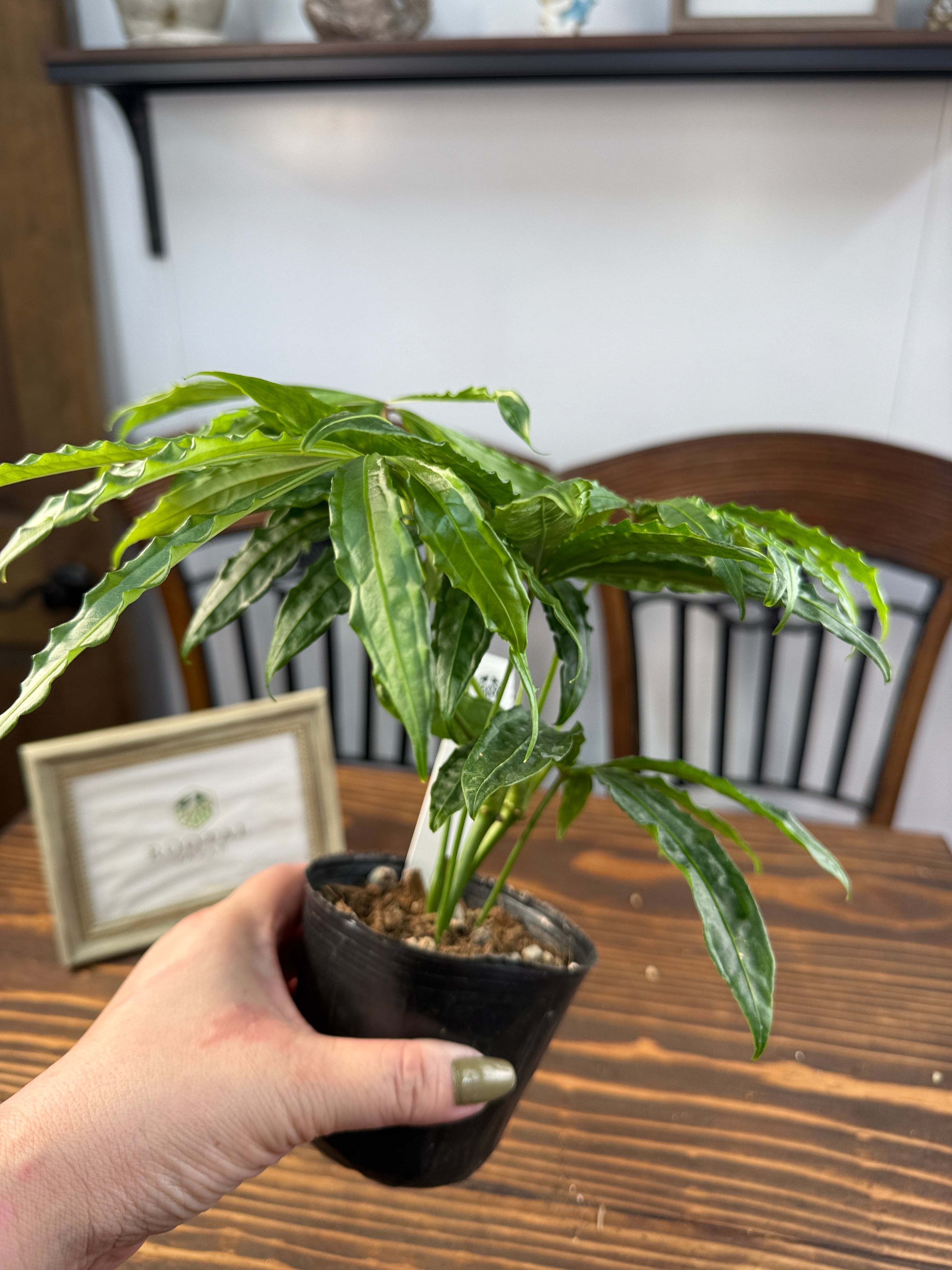 【美しい】アンスリウム ポリスキスツム(3号ポット)は、個性的な葉の形・フォルムが魅力的な観葉植物です!お部屋に華やかさを添え、心地よい癒しの空間をつくり出します。観葉植物初心者の方にも育てやすい特性を持っていますので、ぜひこの機会にお迎えください。