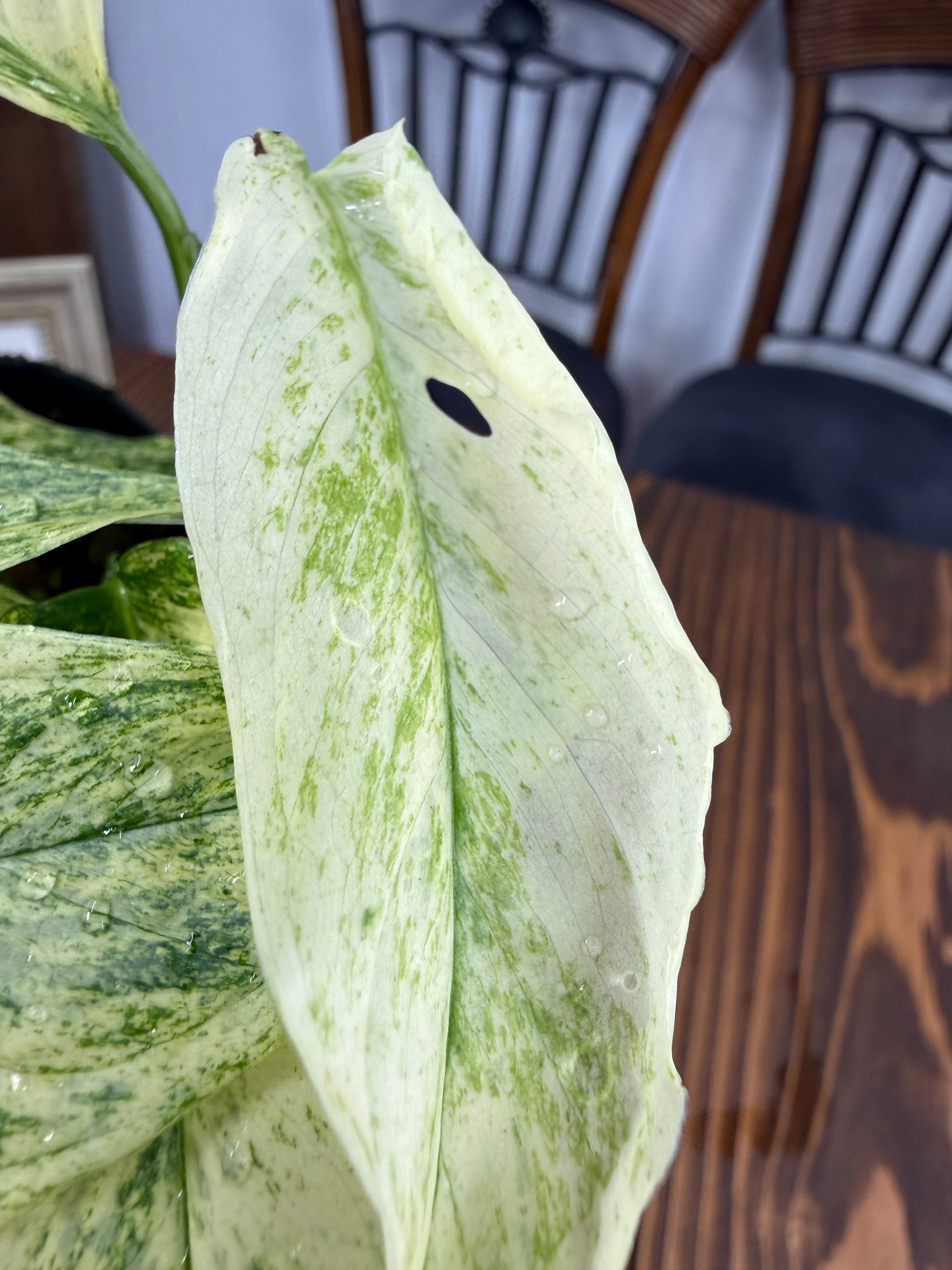 【モンステラ】ラニアータ バリエガータ その美しい斑入りの葉が特徴の観葉植物です!お部屋にトロピカルな雰囲気を与え、心地よくリラックスできる空間を演出します。観葉植物初心者の方にも育てやすい特性を持っていますので、ぜひこの機会にお迎えください。