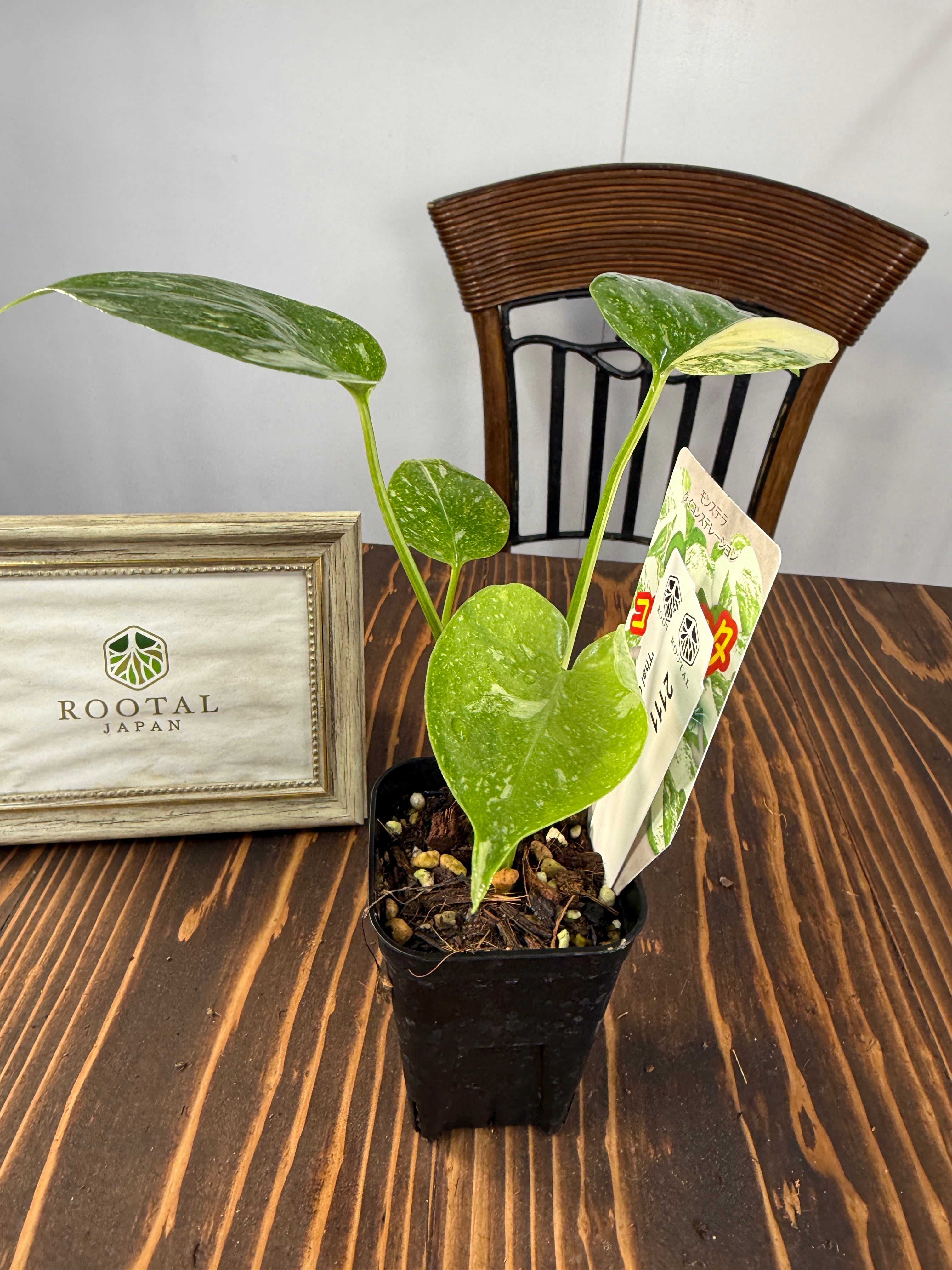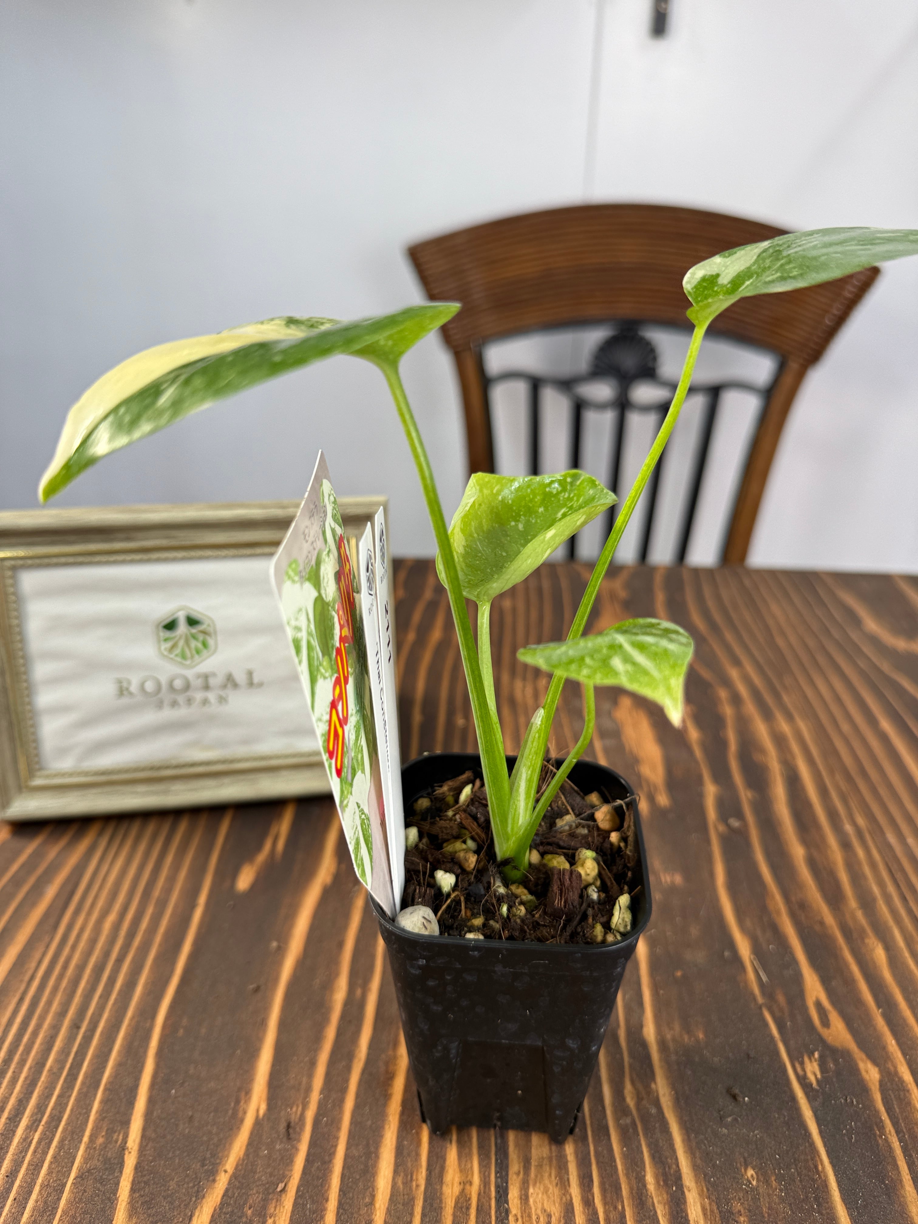 魅力的なバリエガータのかわいいベビー苗!モンステラ タイコンステレーション コンパクタは、その美しい斑入り模様と可愛らしいサイズ感が魅力の観葉植物です。非常に成長はゆっくりでコンパクトです。インテリアにグリーンをプラスするだけでなく、心を癒してくれる一品です。手軽に育てられるので、初心者の方にもおすすめです。