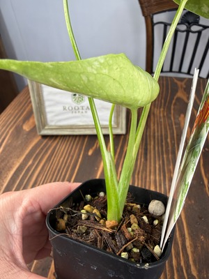 モンステラ タイコンステレーション コンパクタの葉は、ユニークなバリエガータが印象的で、成長段階によってその美しさが変わります。出荷時のサイズはおおよそ20㎝程度で、かわいらしいベビー苗をお届けいたします。