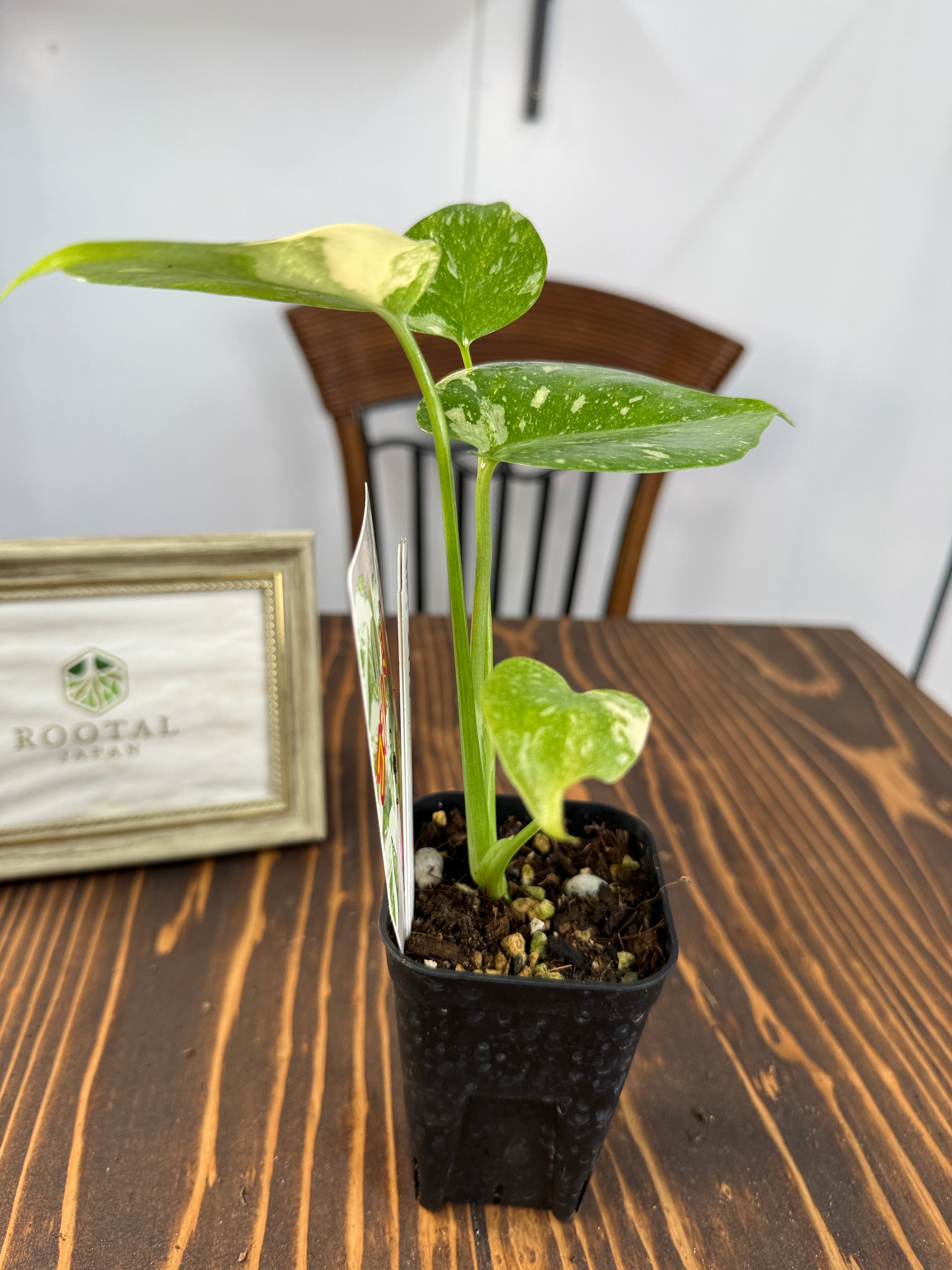 魅力的なバリエガータのかわいいベビー苗!モンステラ タイコンステレーション コンパクタは、その美しい斑入り模様と可愛らしいサイズ感が魅力の観葉植物です。非常に成長はゆっくりでコンパクトです。インテリアにグリーンをプラスするだけでなく、心を癒してくれる一品です。手軽に育てられるので、初心者の方にもおすすめです。