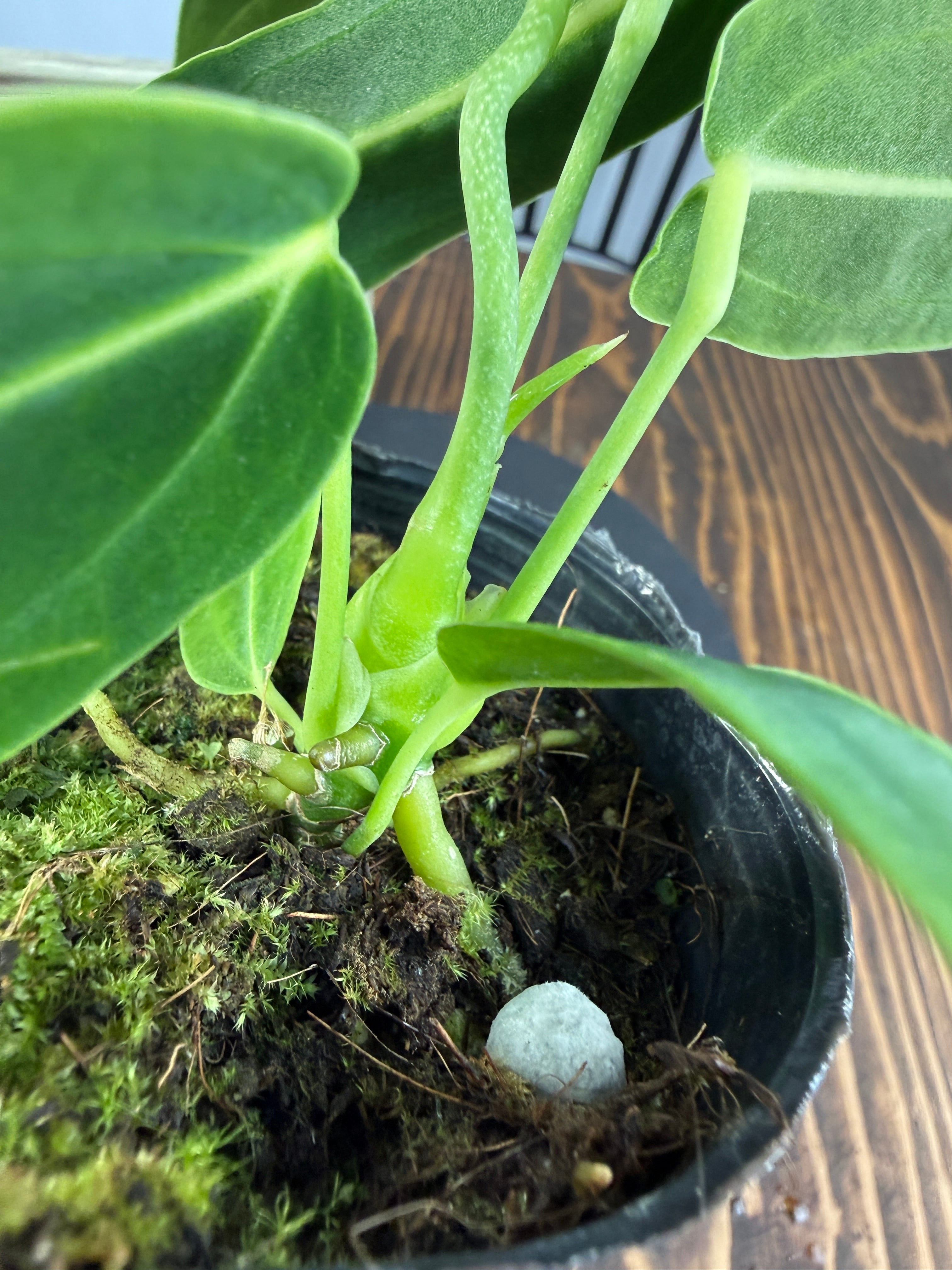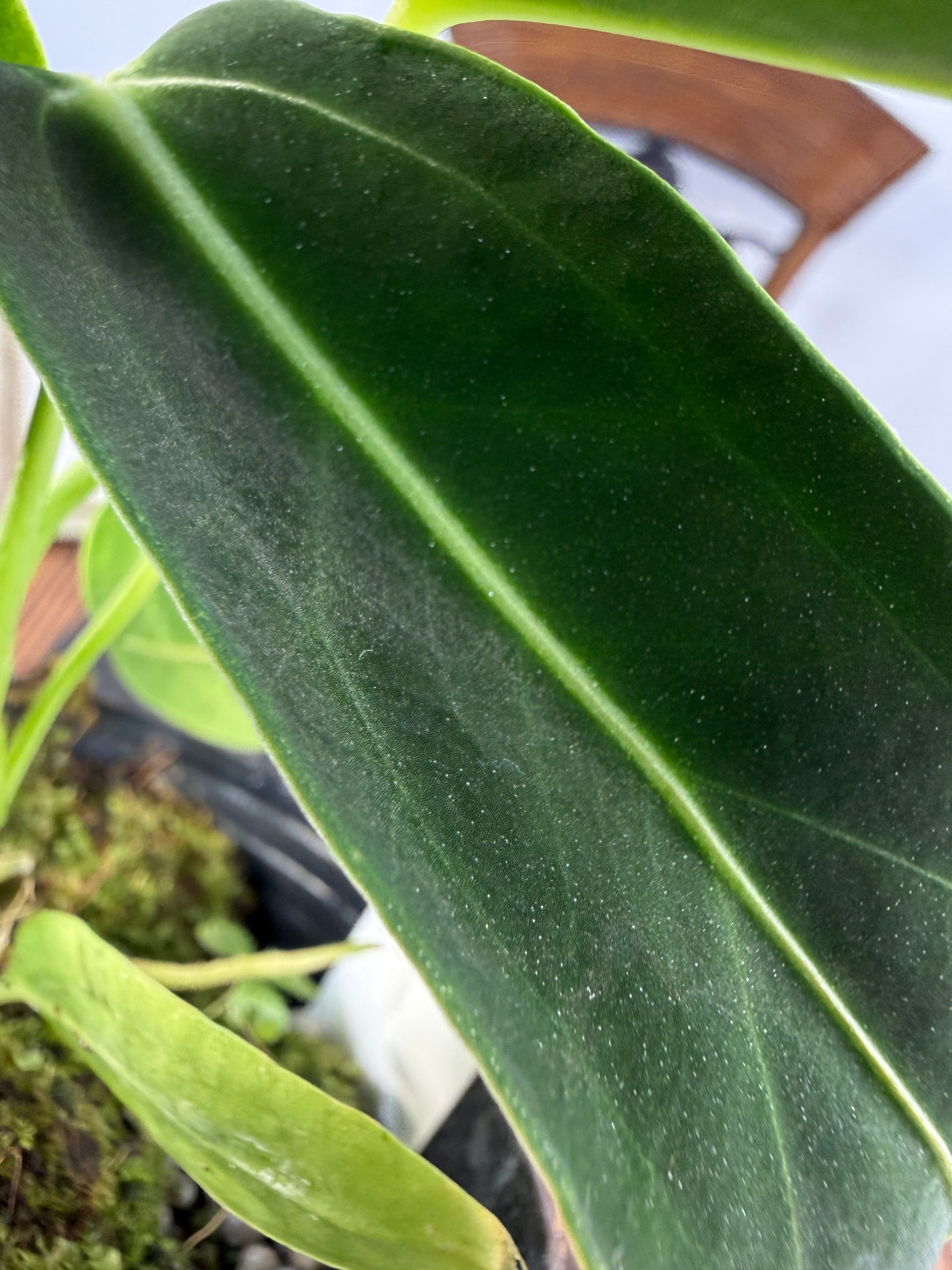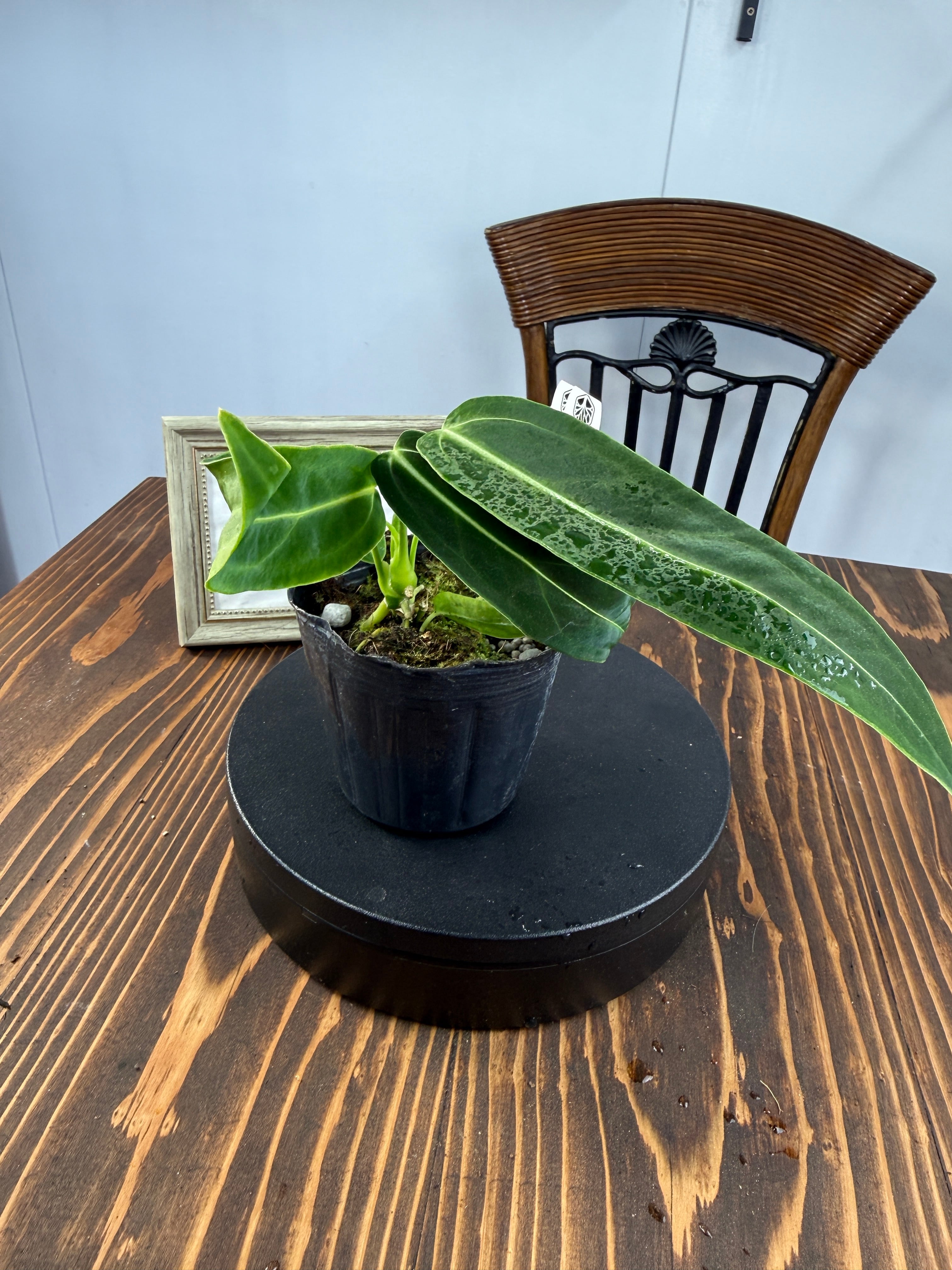アンスリウム ワロクアナムの葉は濃い緑色をしており、美しい光沢が魅力的です。出荷時のサイズは3号ポットで、コンパクトながらも元気いっぱいな個体をお届けいたします。