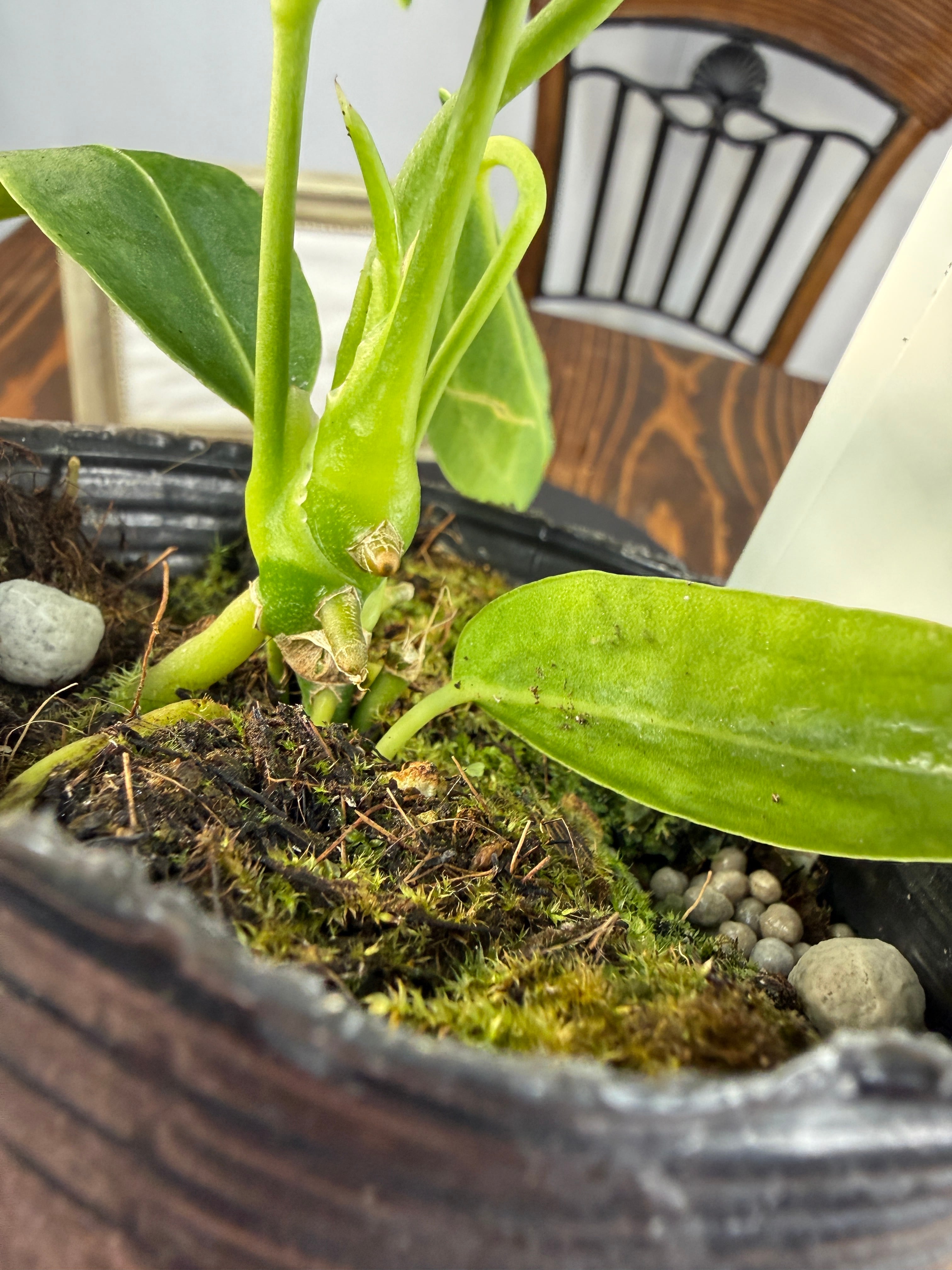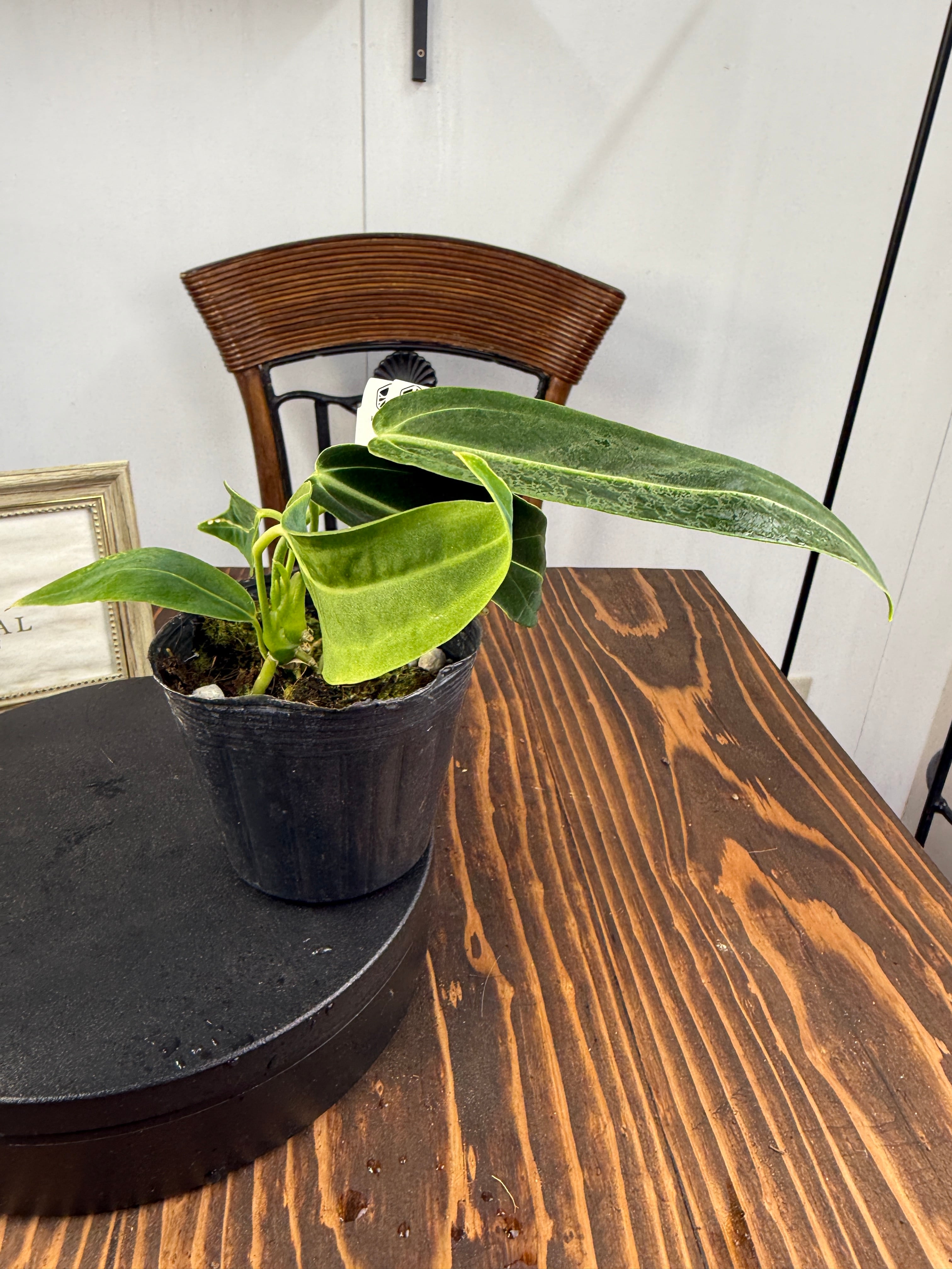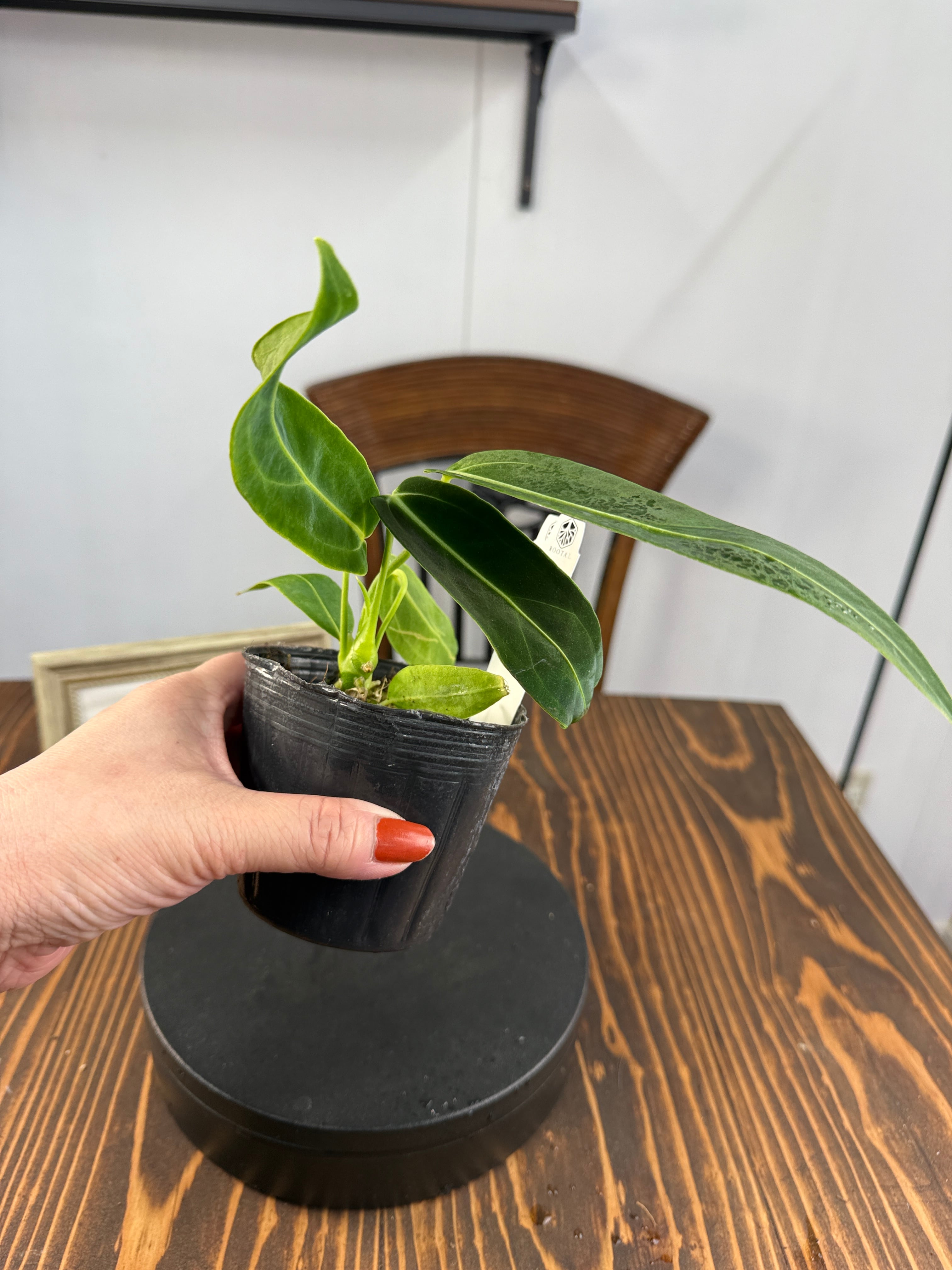 アンスリウム ワロクアナムの葉は濃い緑色をしており、美しい光沢が魅力的です。出荷時のサイズは3号ポットで、コンパクトながらも元気いっぱいな個体をお届けいたします。