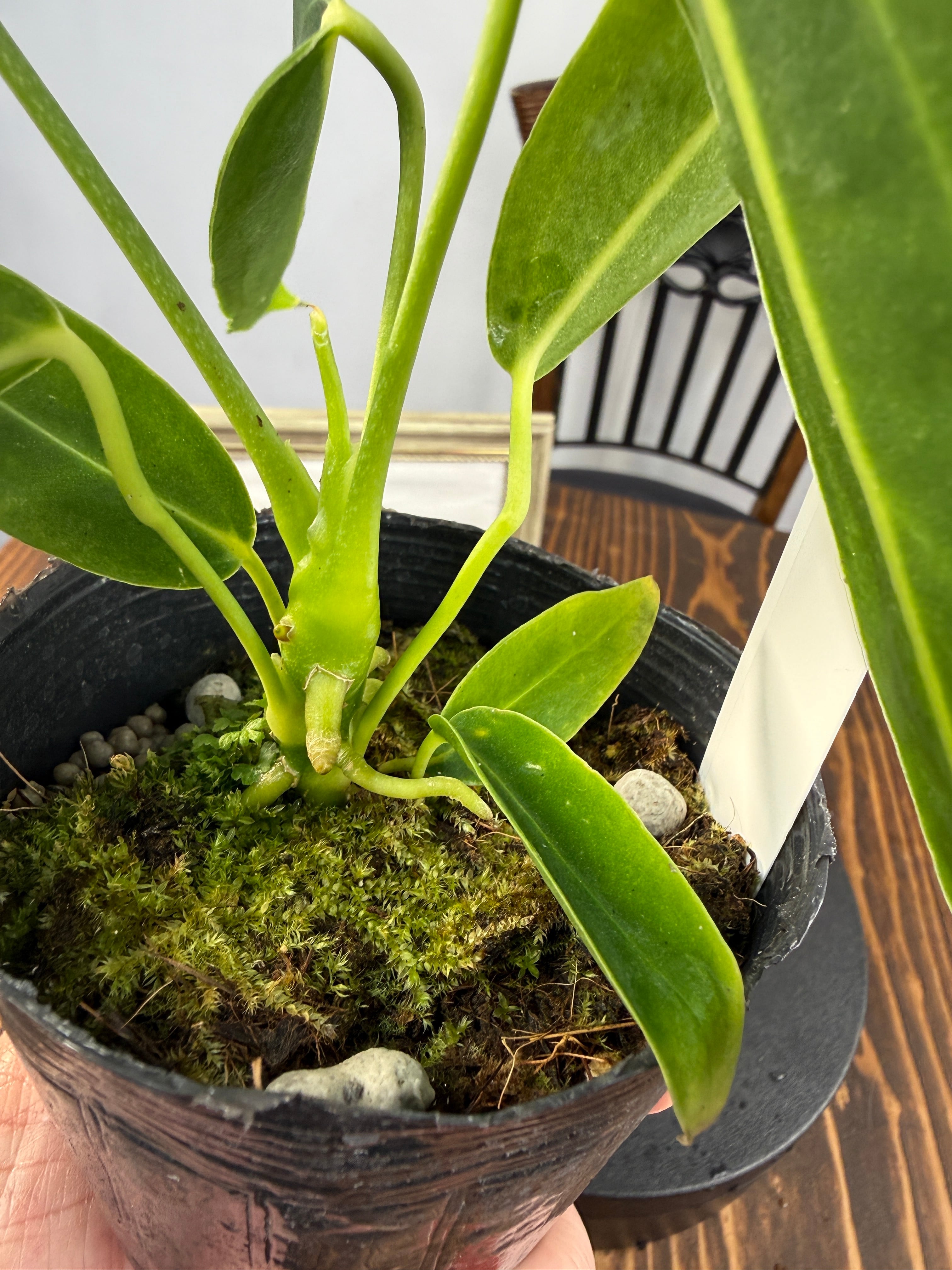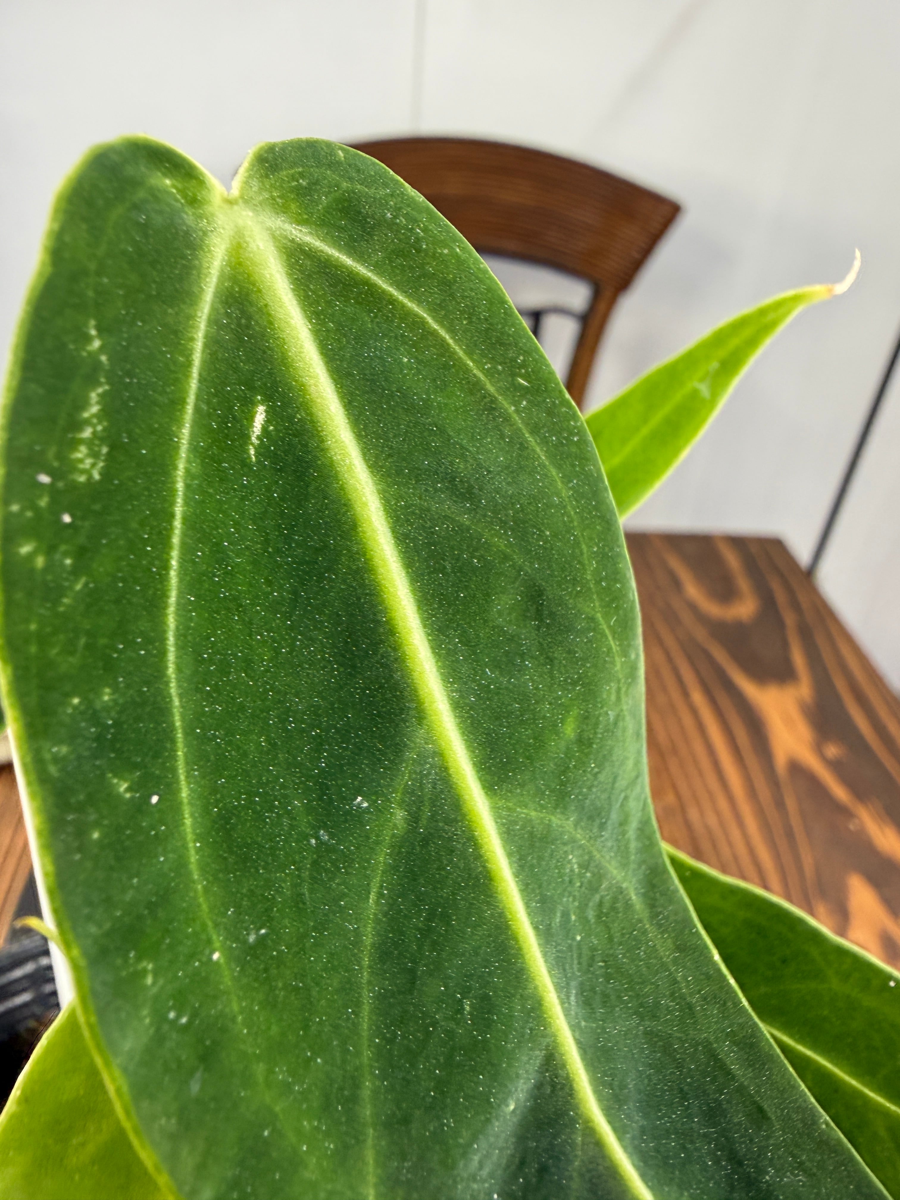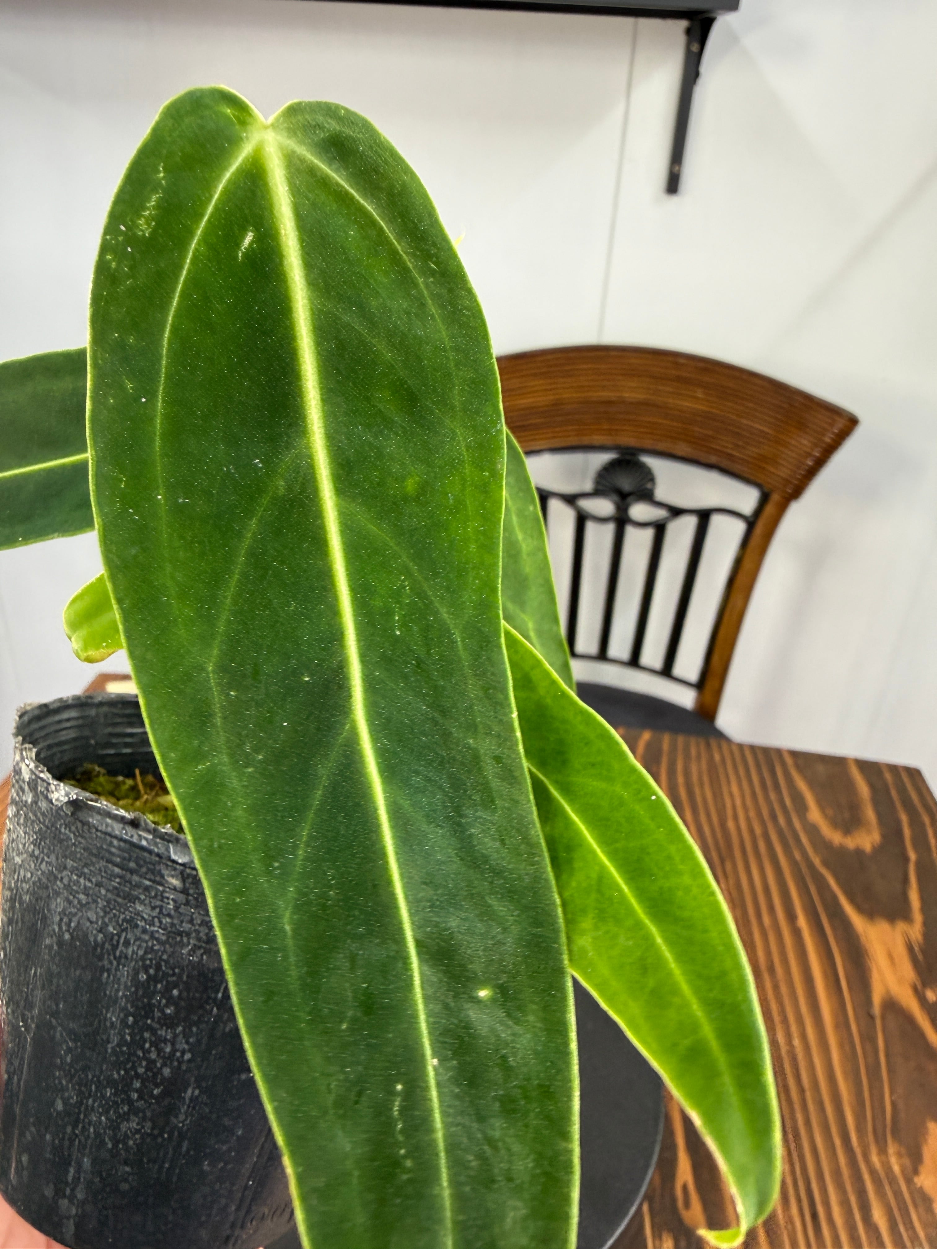 アンスリウム ワロクアナムの葉は濃い緑色をしており、美しい光沢が魅力的です。出荷時のサイズは3号ポットで、コンパクトながらも元気いっぱいな個体をお届けいたします。