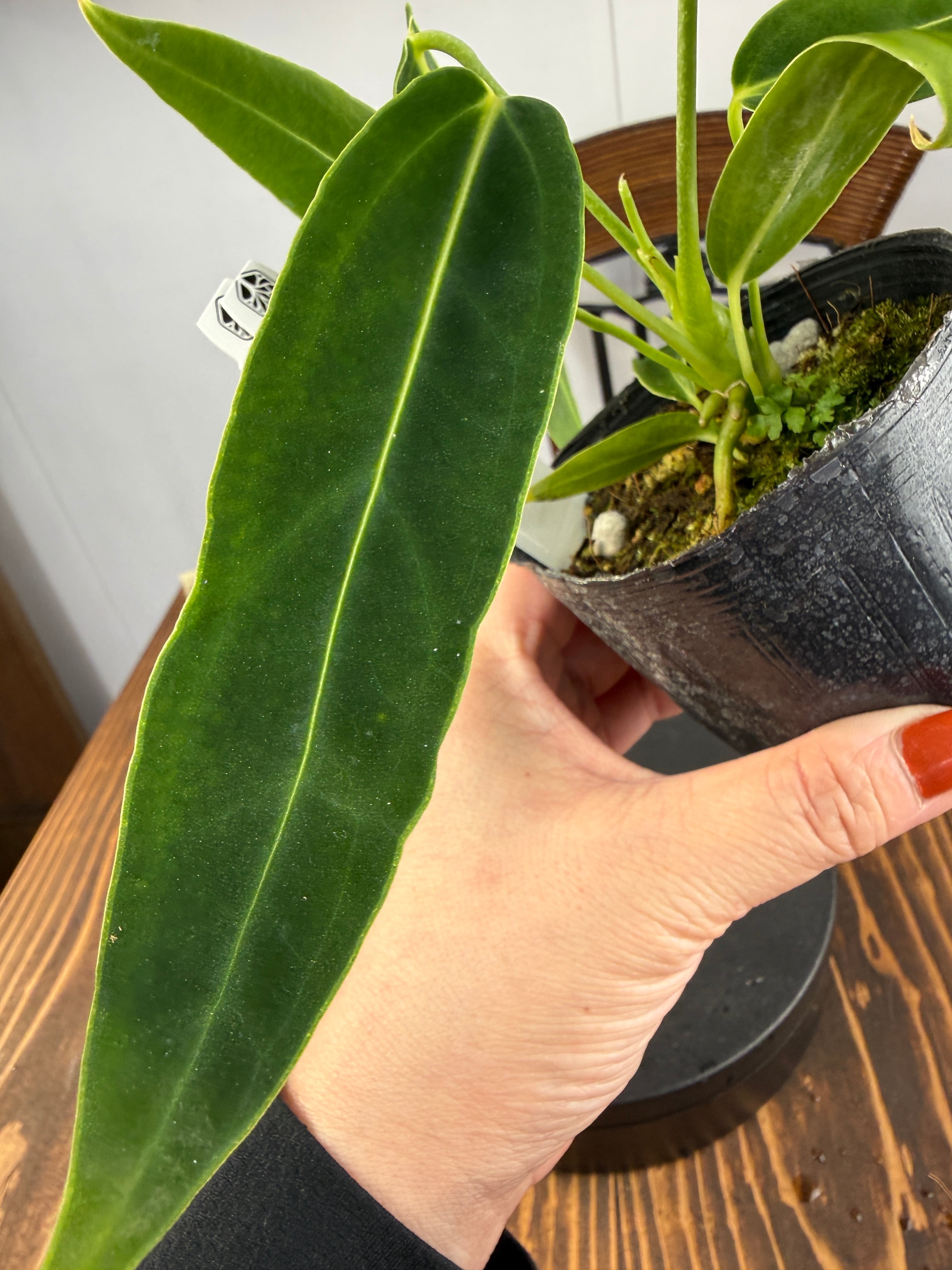 艶やかな葉が心を癒やすアンスリウム ワロクアナム!その個性的なフォルムと深い色合いが、あなたの生活空間に華やかさをプラスします。日本国内で丁寧に育てられたこの貴重な品種は、インテリアに自然の美しさを添え、新たな息吹を吹き込む存在です。