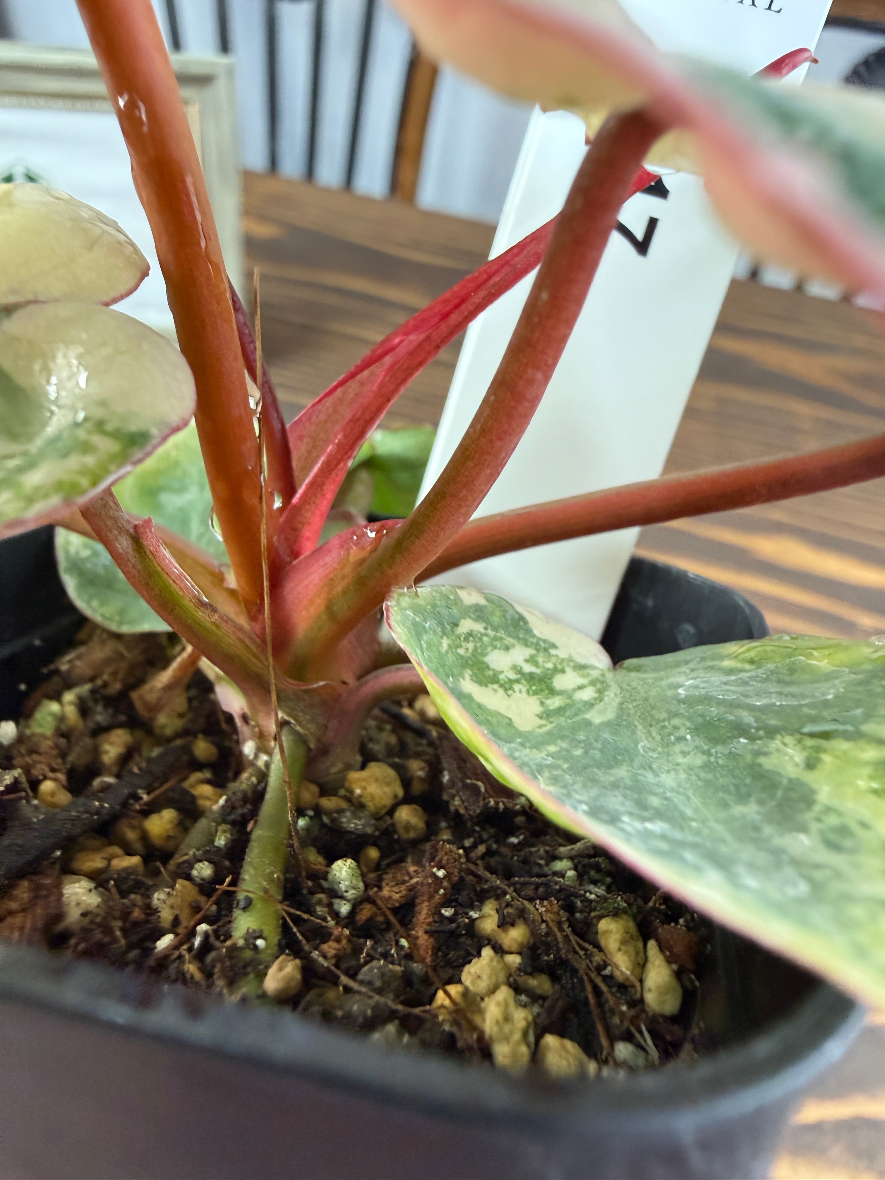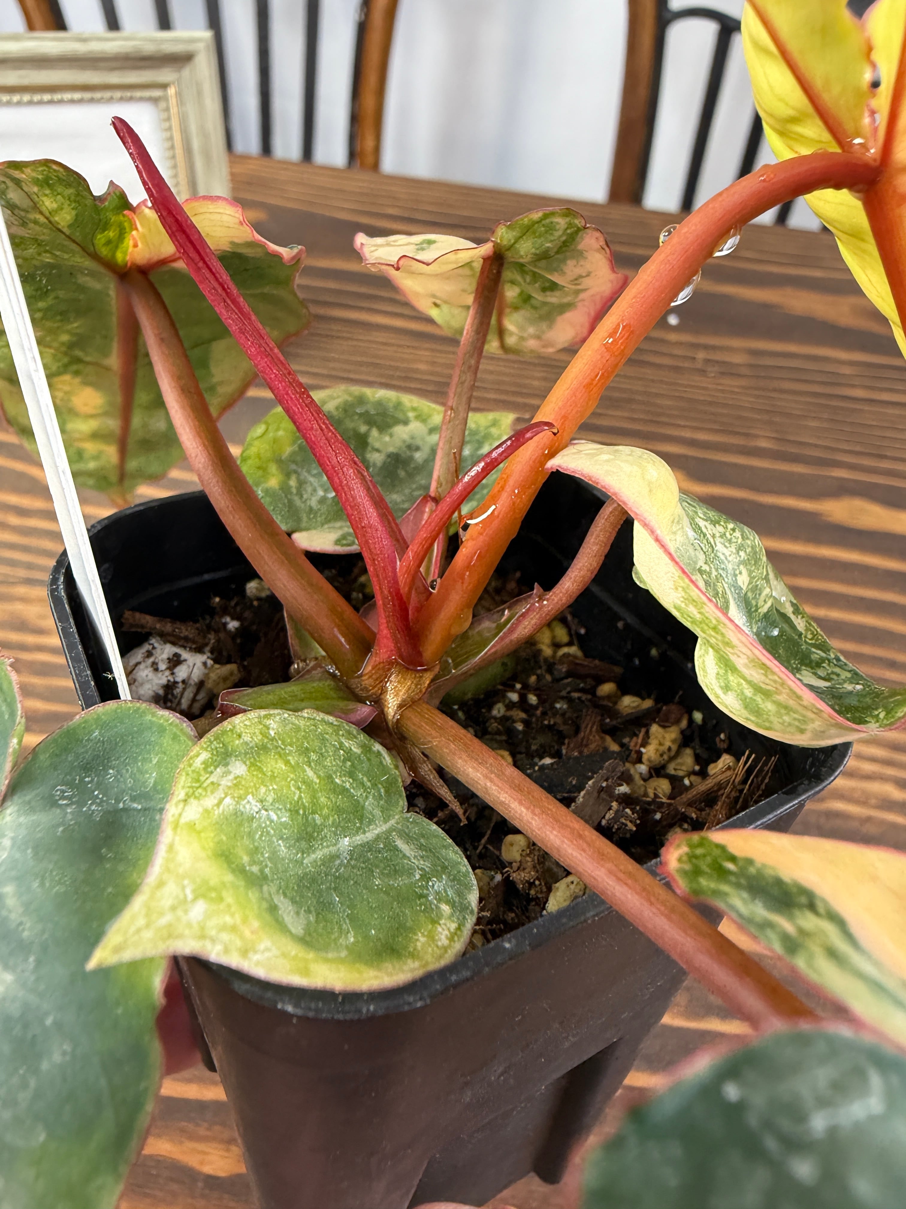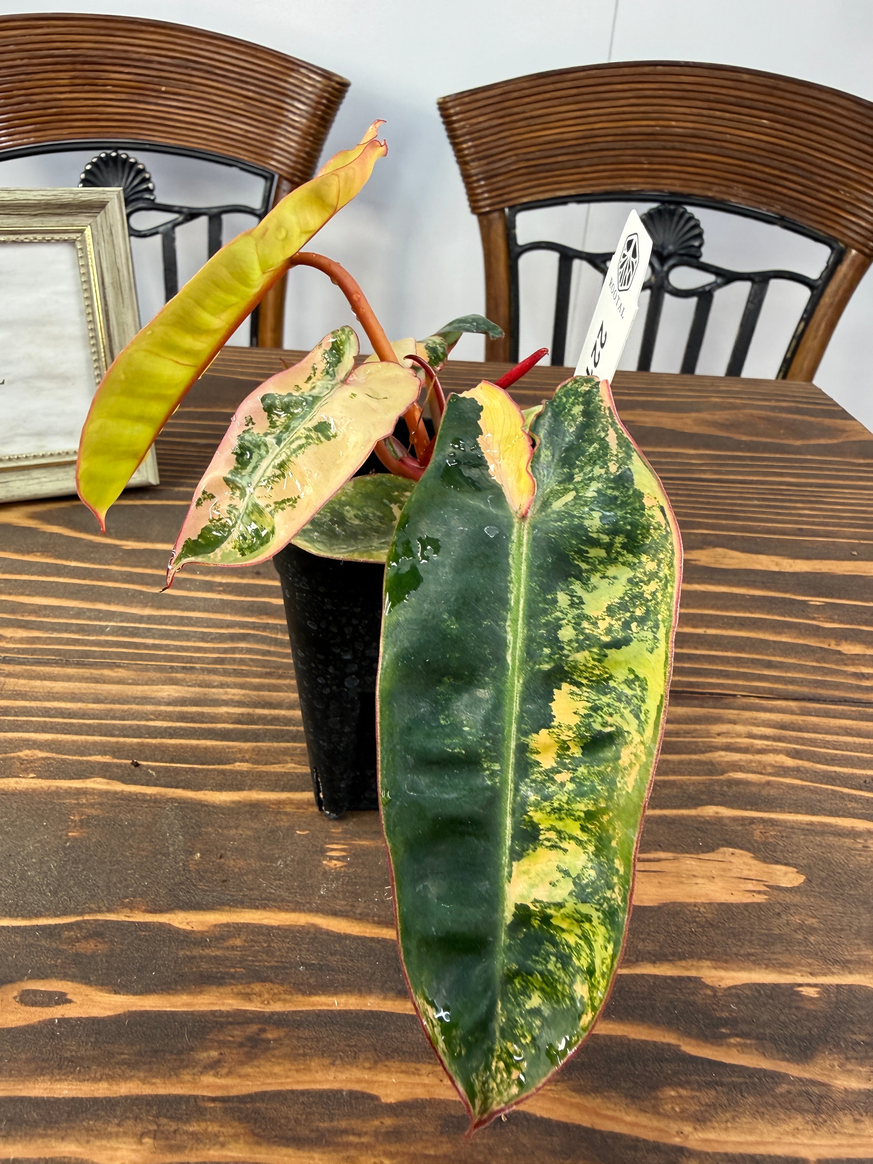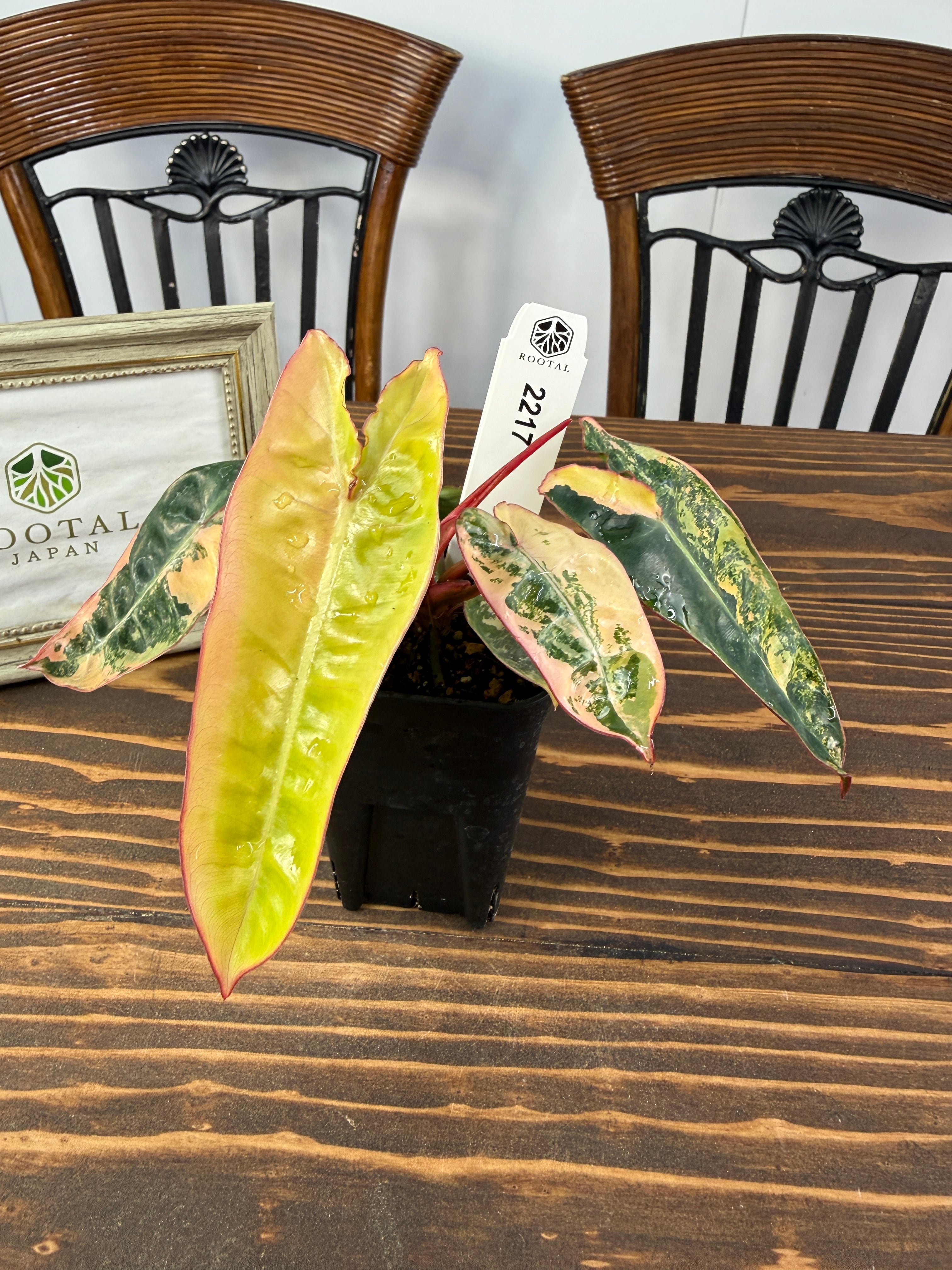 ★2217【赤茎映えの黄金斑】フィロデンドロン ビレッティア バリエガータ(2.5号ロング硬質ポット)