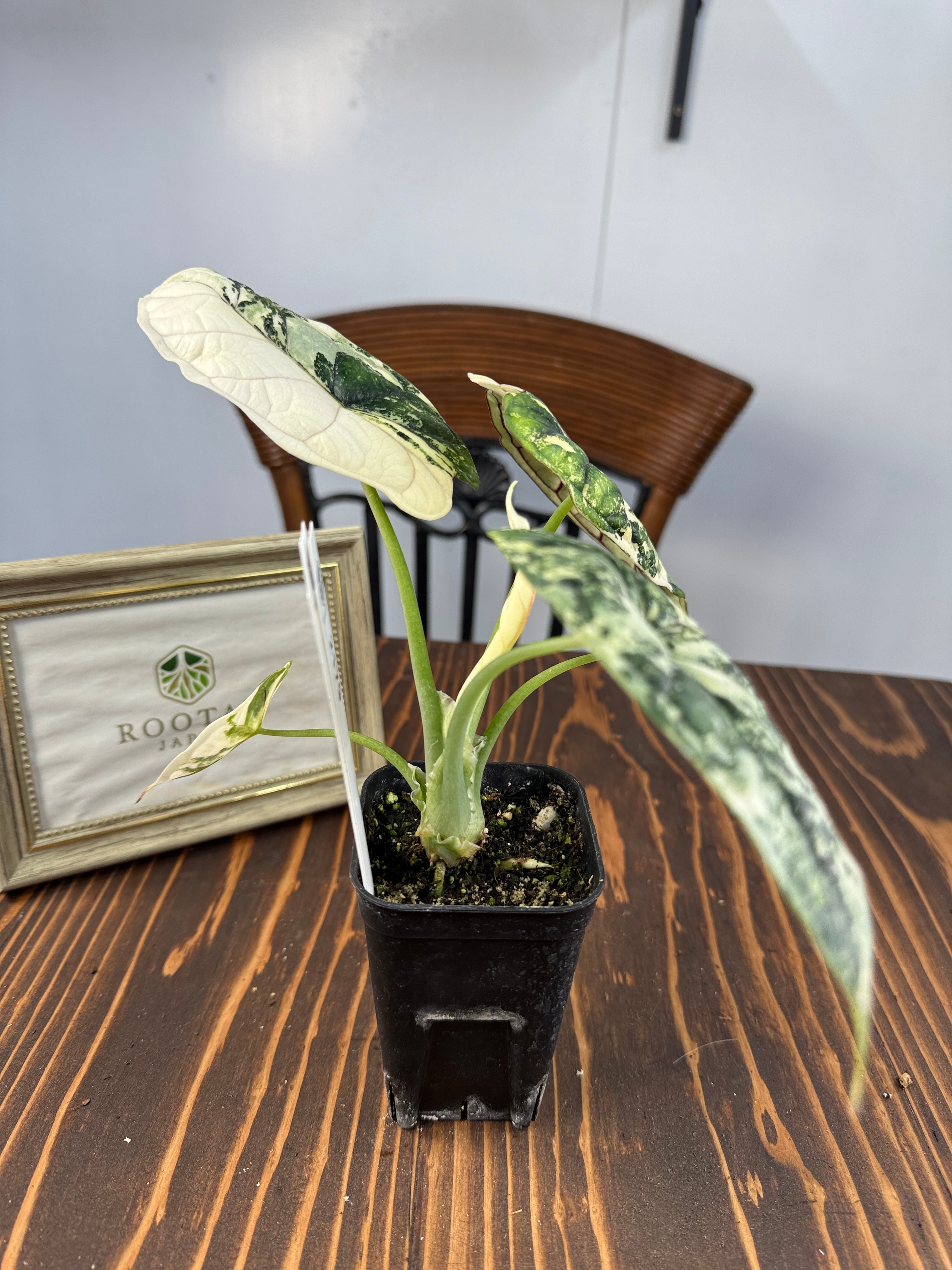 【超レア】アロカシア ドラゴンスケール ホワイトバリエガータは、そのユニークなドラゴンのような模様が特徴の観葉植物です!お部屋にエキゾチックな雰囲気を与え、心を豊かにすること間違いなしです。初心者の方でも育てやすい特性を持つので、ぜひこの貴重な植物をお迎えください。