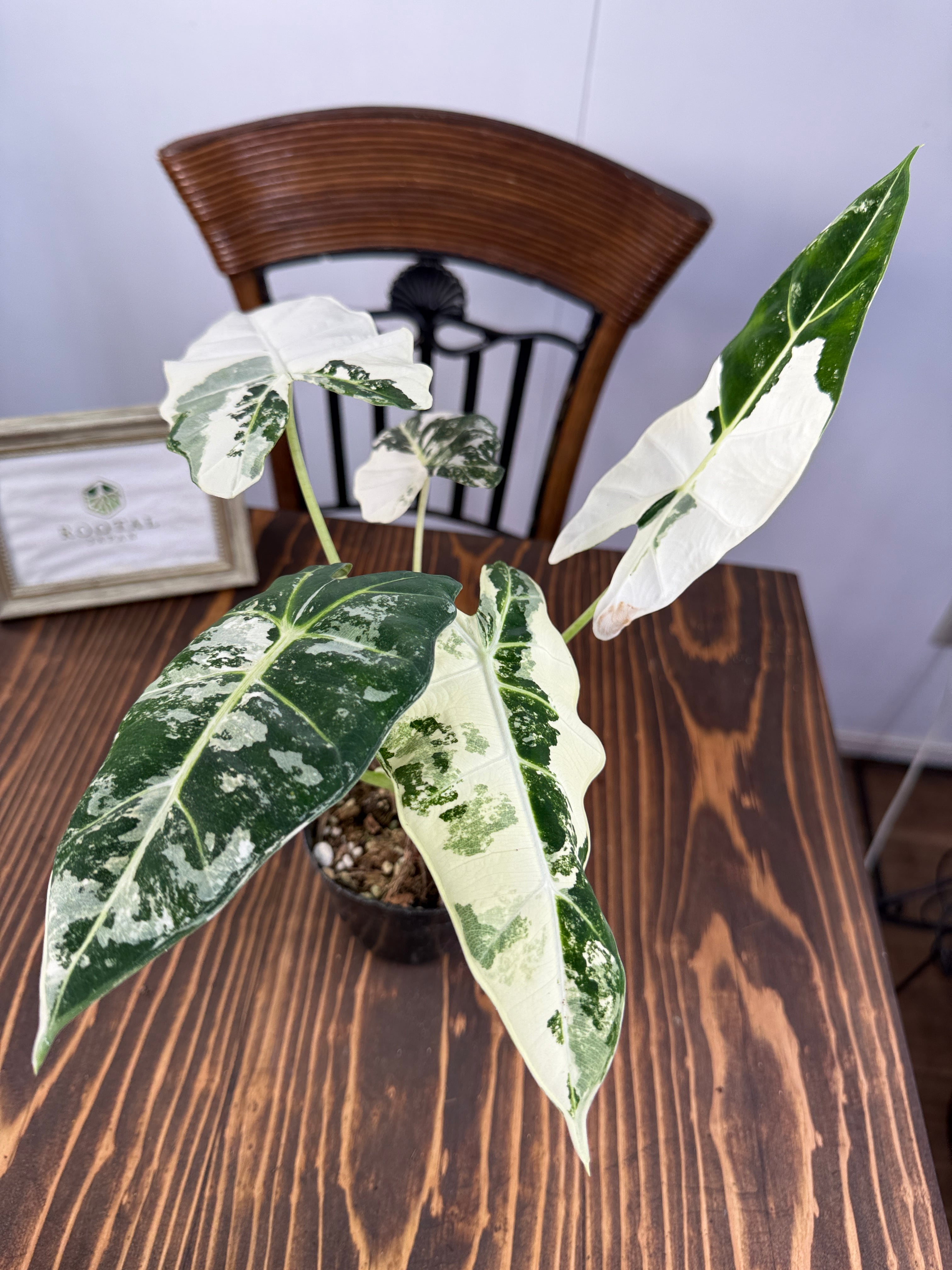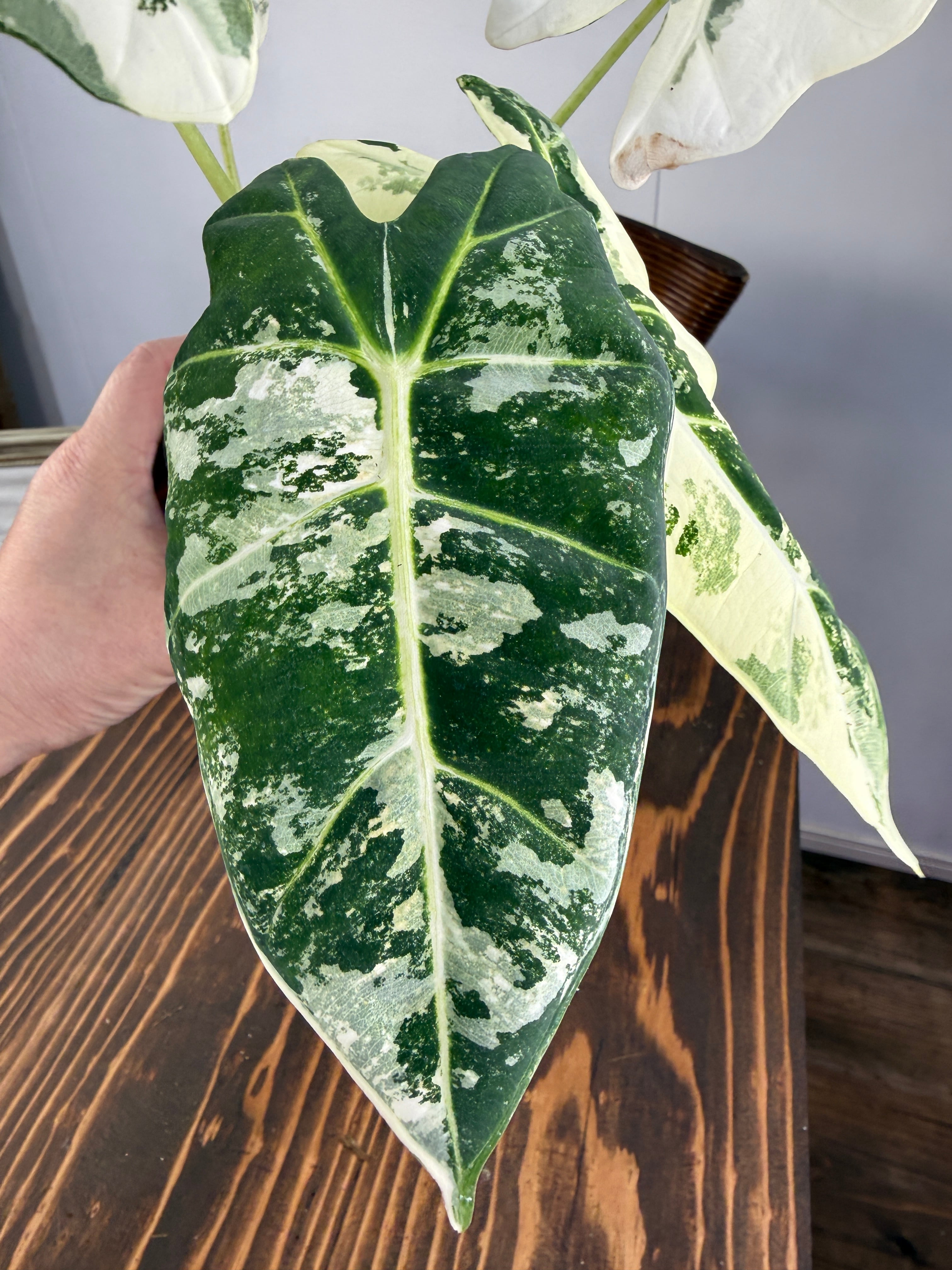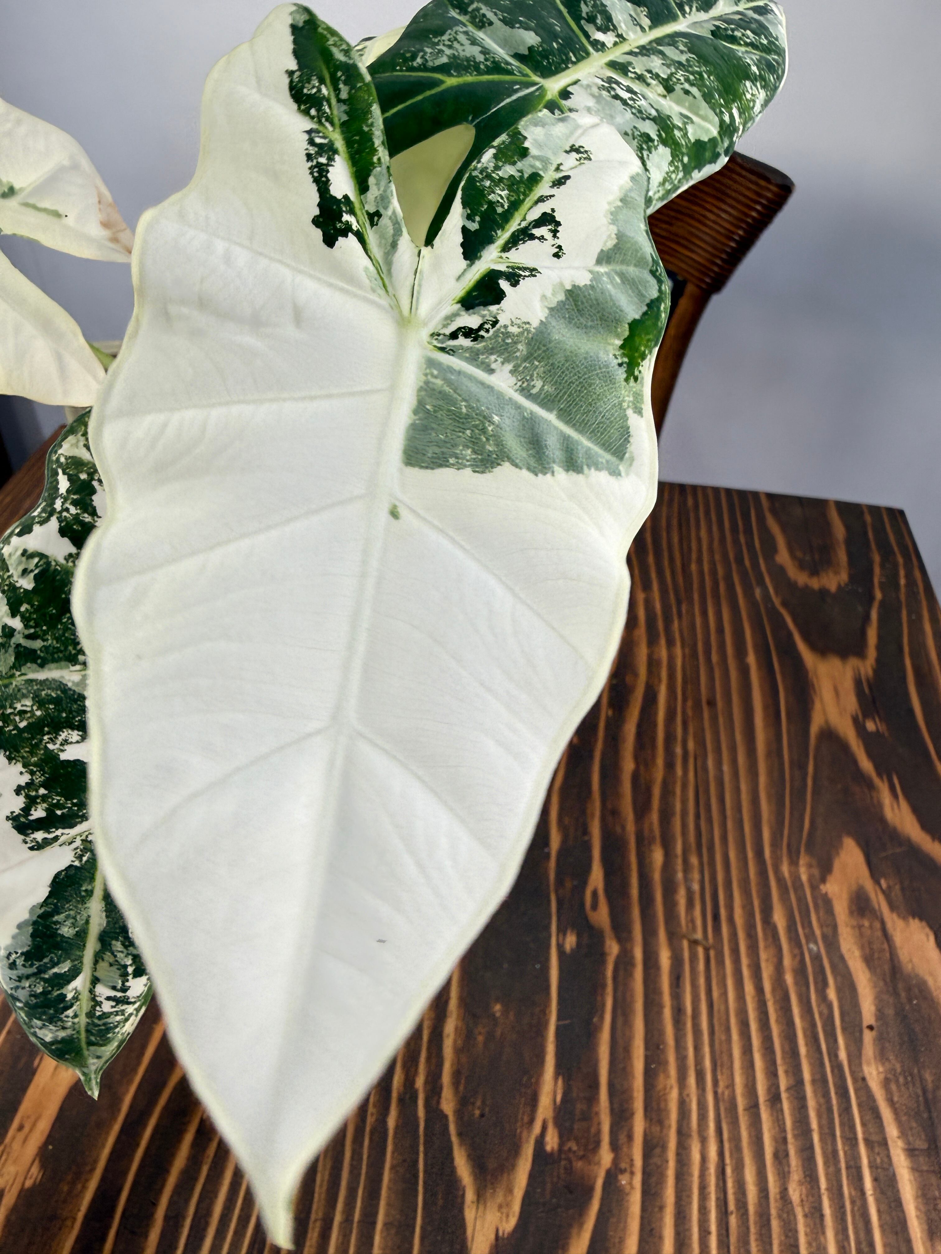 華やかで魅力的なアロカシア グリーンベルベット バリエガータ!!その美しいバリエーションが、インテリアを一層引き立て、心に安らぎをもたらします。日本国内で丁寧に育てられた特別な株は、自宅で簡単に葉の美しさを楽しむことができる素晴らしい選択です。