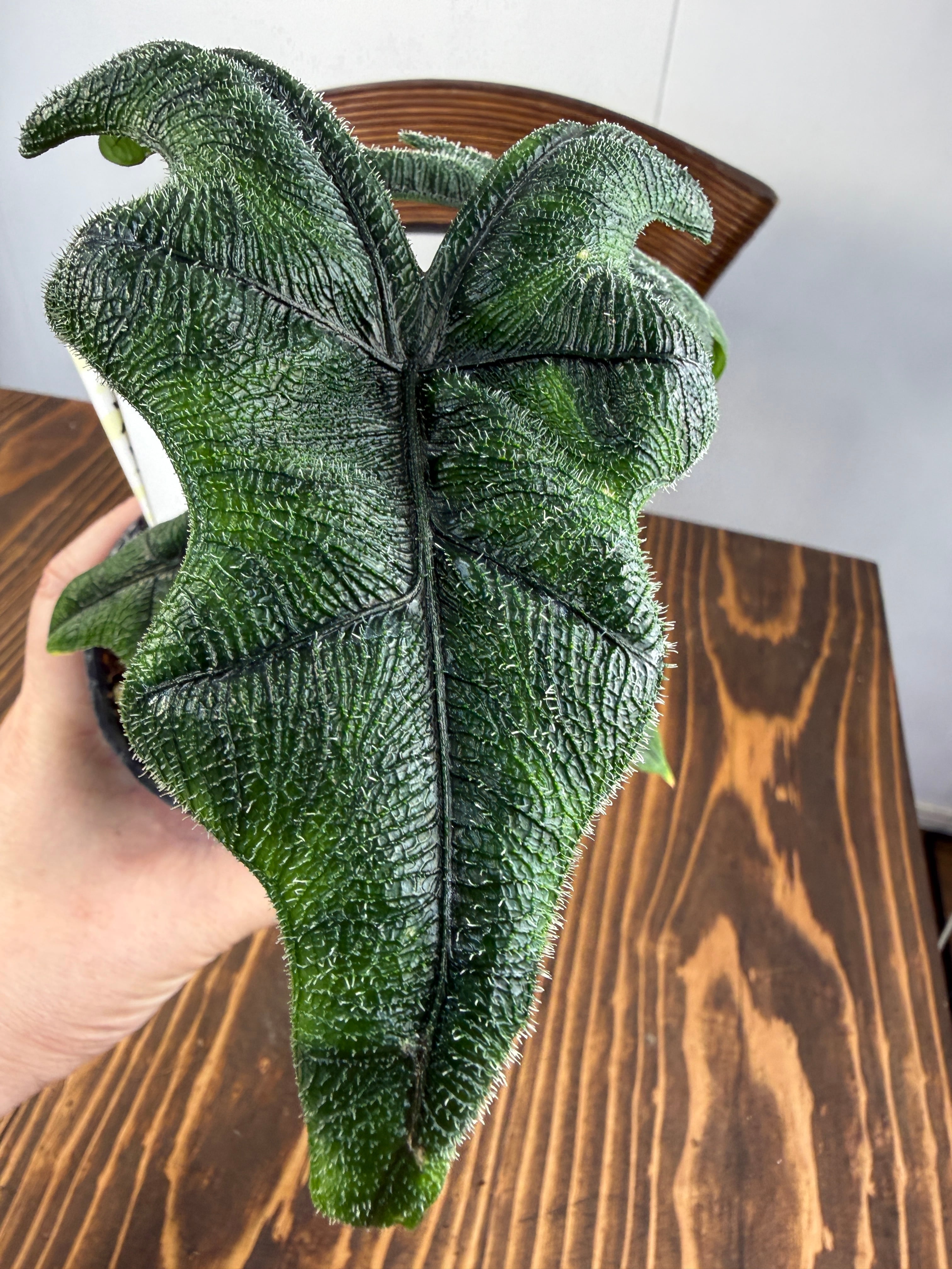 アロカシア ジャックリンの出荷時 背丈は約25~30㎝程です。成長に伴い、その美しさはさらに増し、毎日その姿を楽しむことができるでしょう。ユニークな葉のデザインは、どんなスタイルのインテリアとも相性が良く、エレガンスをプラスしてくれます。
