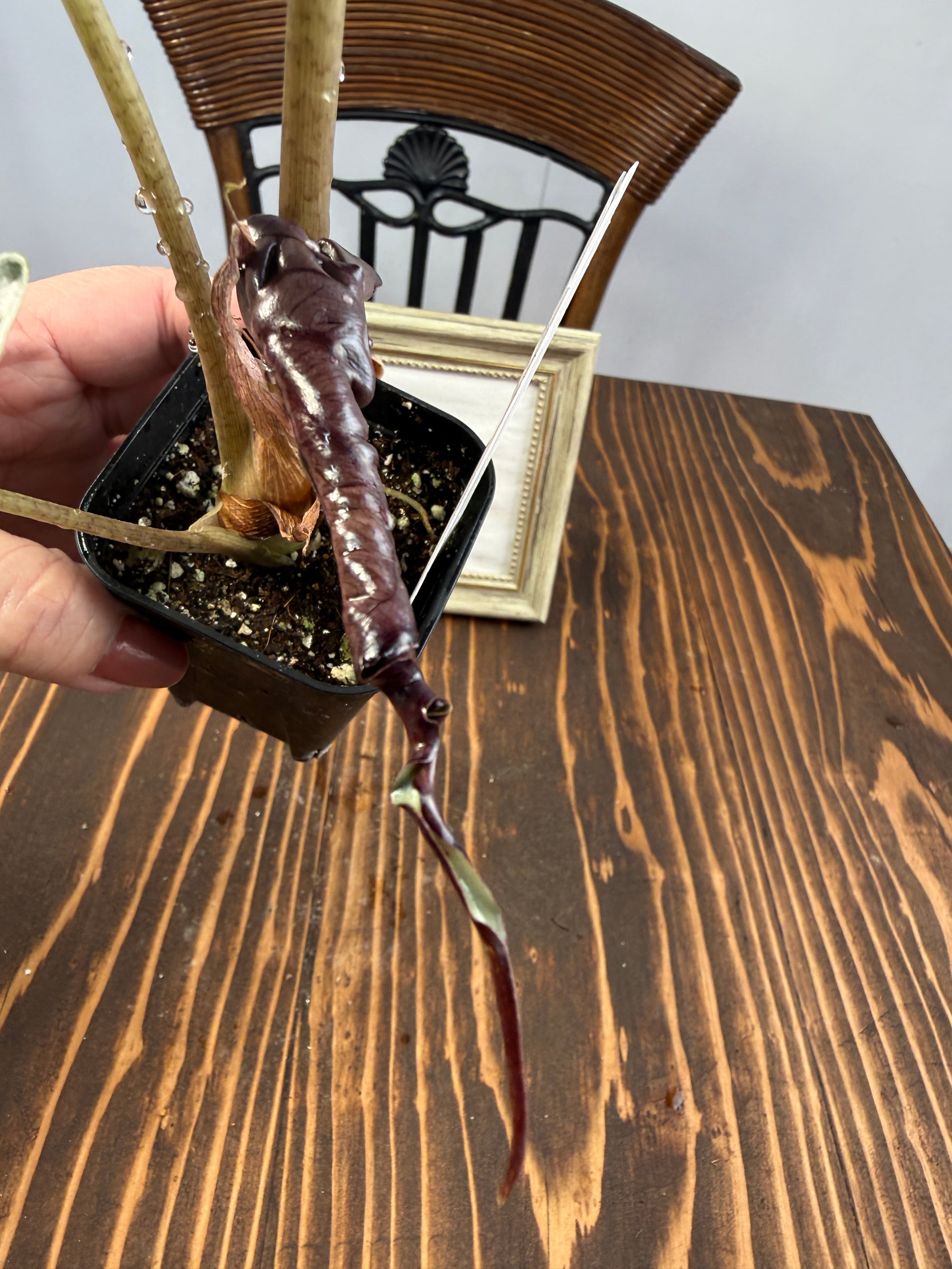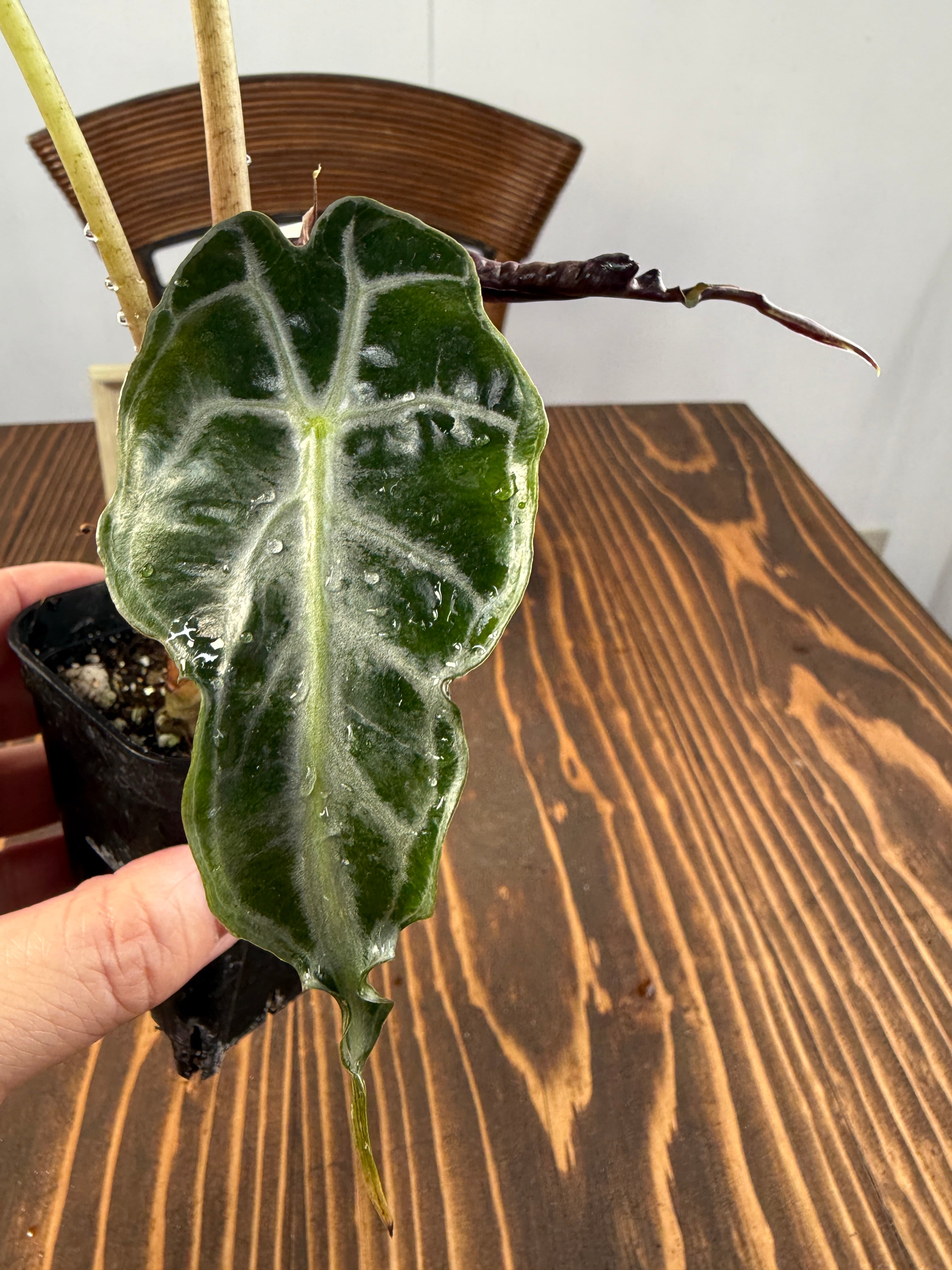 アロカシア ヴェノムは、そのユニークな葉の形状と美しい色彩が特徴の観葉植物です。この希少種は、お部屋に特別なアクセントを与え、見る人を魅了する存在です!明るい間接光で育てると、その美しさがさらに引き立ち、インテリアに華やかな雰囲気を添えます。