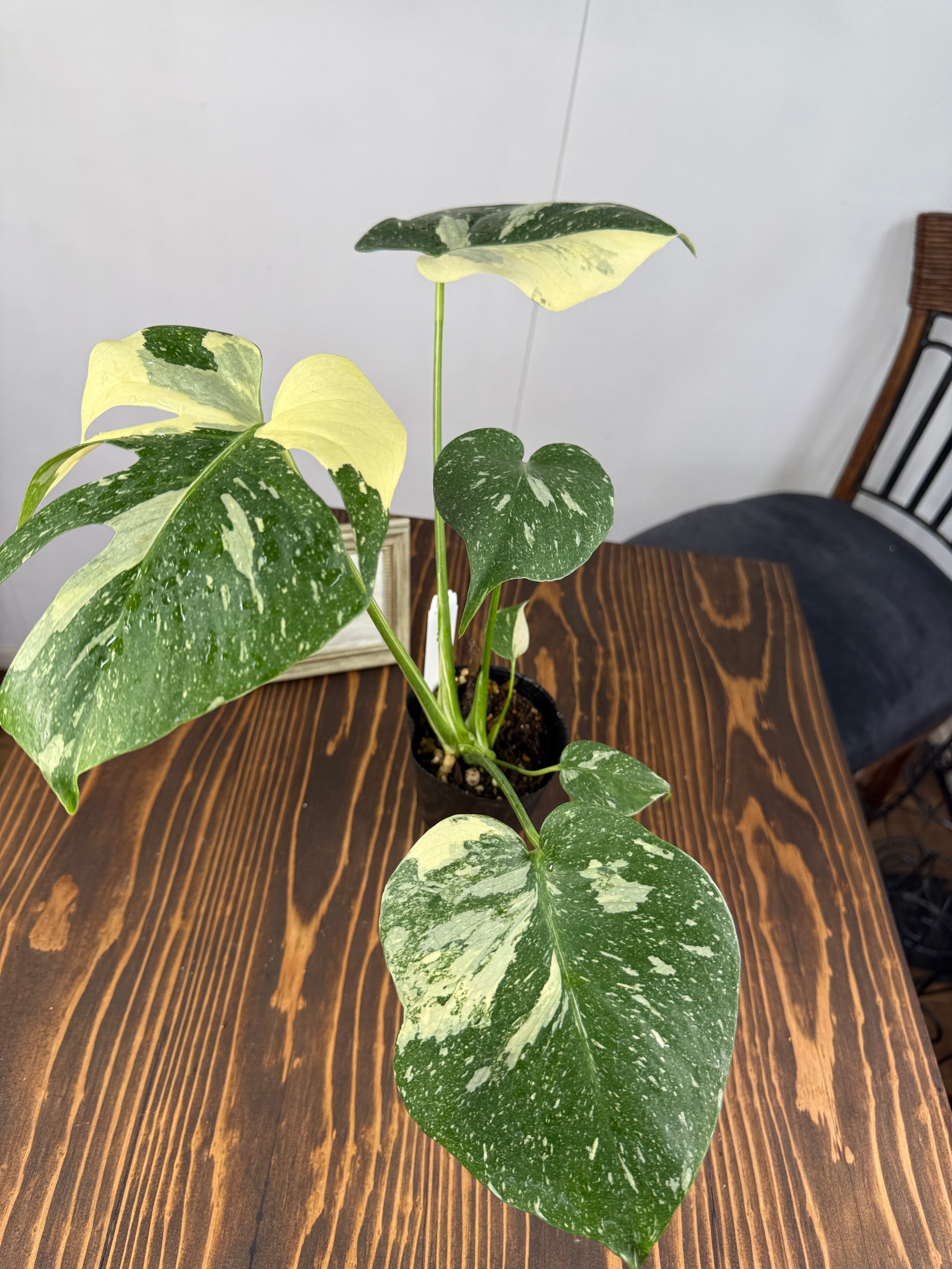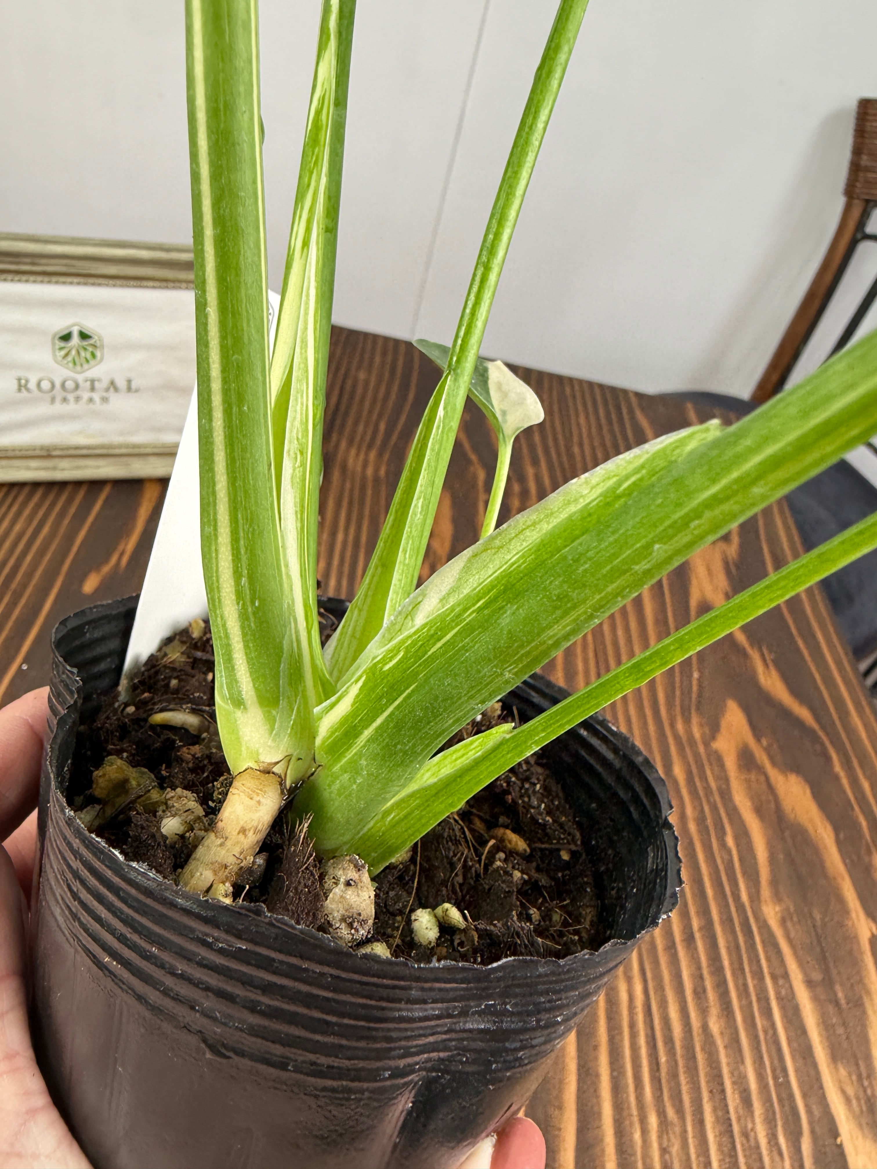 魅力的なバリエガータのかわいいベビー苗!モンステラ デリシオーサ タイコンステレーションは、その美しい斑入り模様と可愛らしいサイズ感が魅力の観葉植物です。インテリアにグリーンをプラスするだけでなく、心を癒してくれる一品です。手軽に育てられるので、初心者の方にもおすすめです。